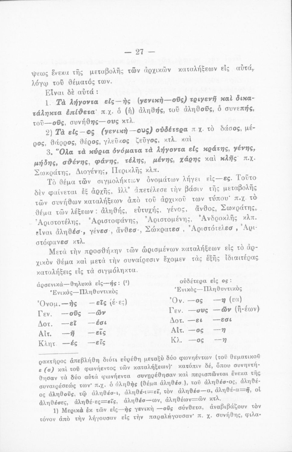Σχολικό εγχειρίδιο Αρχαίων Ελληνικών για τις Α΄, Β΄ και Γ΄ Λυκείου που εξετάζει τα μέρη του λόγου και την σύνταξή τους.