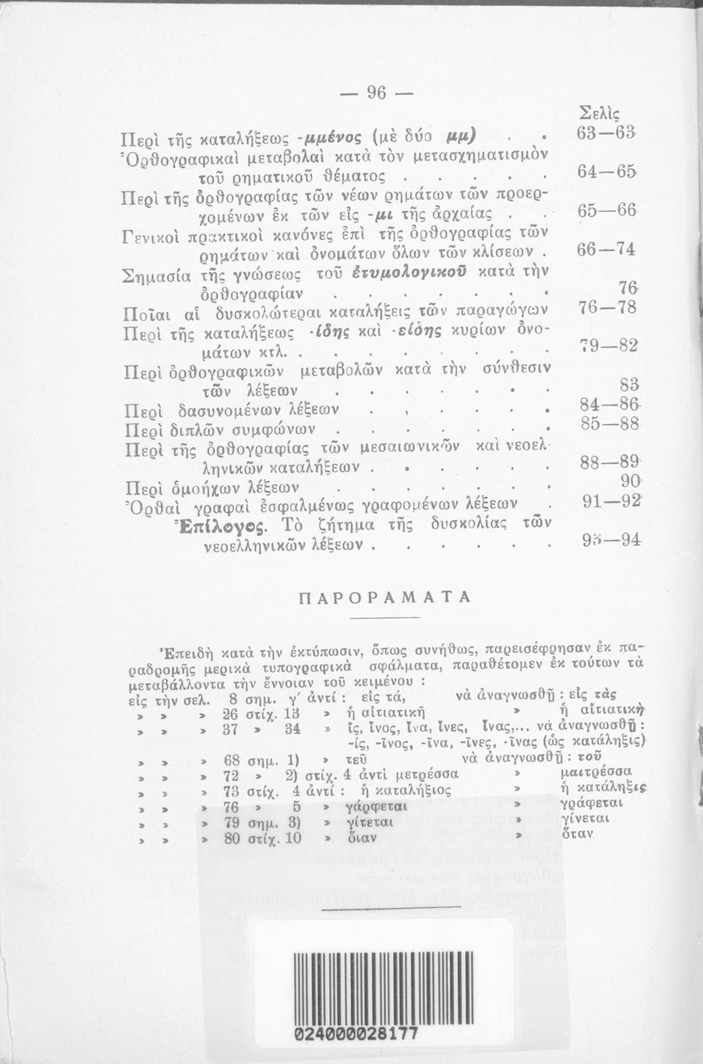 LDR 00990 2200205 4500 035 ## _a01-18839 040 ## _aΙνστιτούτο Εκπαιδευτικής Πολιτικής 041 ## _ael 100 ## _aΞενοφών Στεφ. Δάντης 110 ## _a18839 245 0# _aΠρακτικόν Σύστημα Ορθογραφίας της ελληνικής γλώσσης 250 ## _a3η Έκδοση 260 ## _aΑθήνα _bΓ. Η. Καλλέργης και Σία _c1939 300 ## _a96 _c20 520 ## _aΜαθητικό βοήθημα Νέων Ελληνικών Γυμνασίου που περιέχει πρακτικό σύστημα ορθογραφικών κανόνων ως βοήθημα για όσους θέλουν να ορθογραφούν. 521 ## _aΓυμνάσιο 522 ## _aΕλλάδα 546 ## _aΚαθαρεύουσα 563 ## _aΣκληρό Εξώφυλλο 650 #4 _aΚαταλήξεις _aΟρθογραφία _aΠαράγωγα _aΡήματα