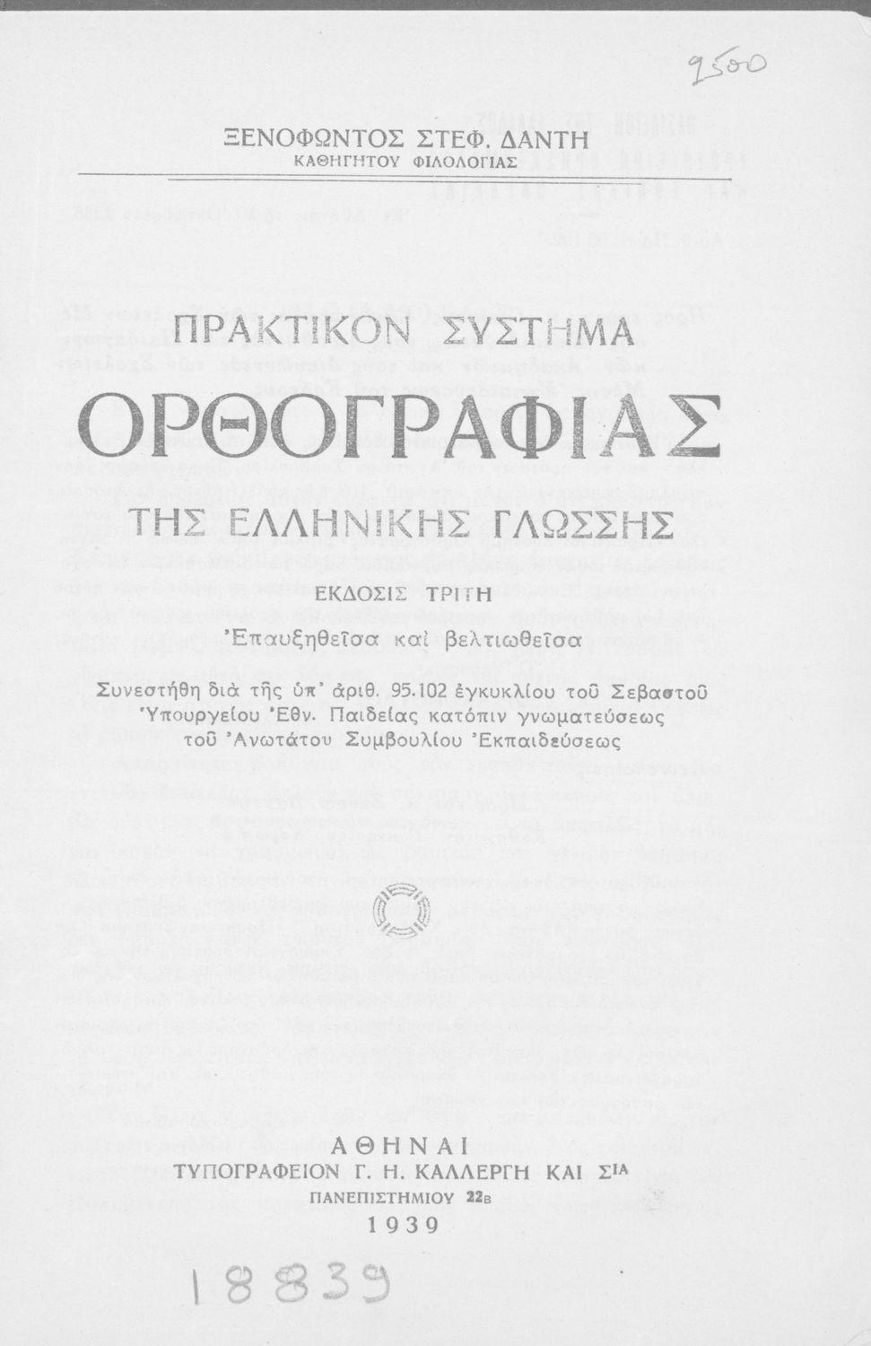 Εκδότης: Γ. Η. Καλλέργης και Σία Έτος έκδοσης: 1939 Τόπος έκδοσης: Αθήνα Έκδοση: 3η |