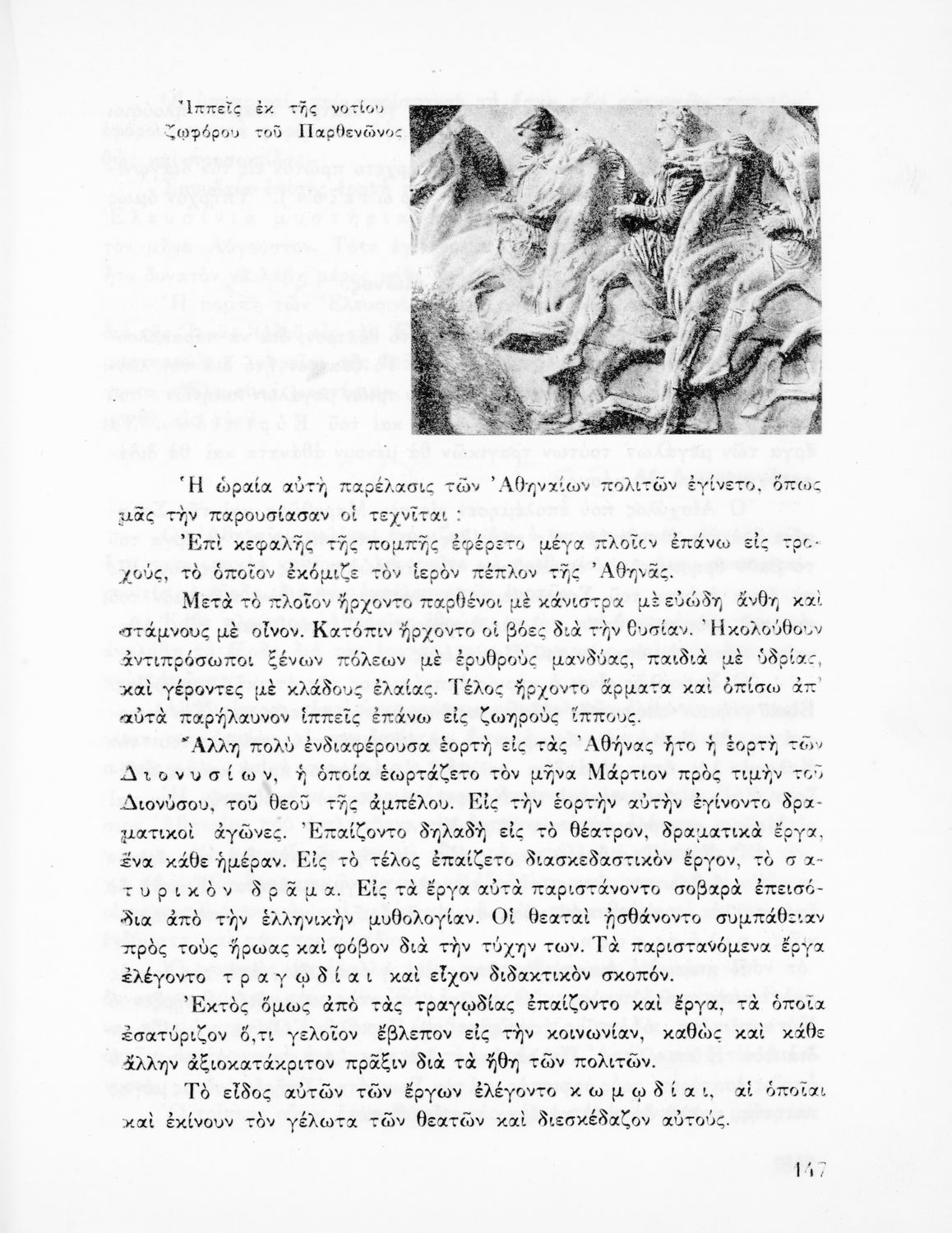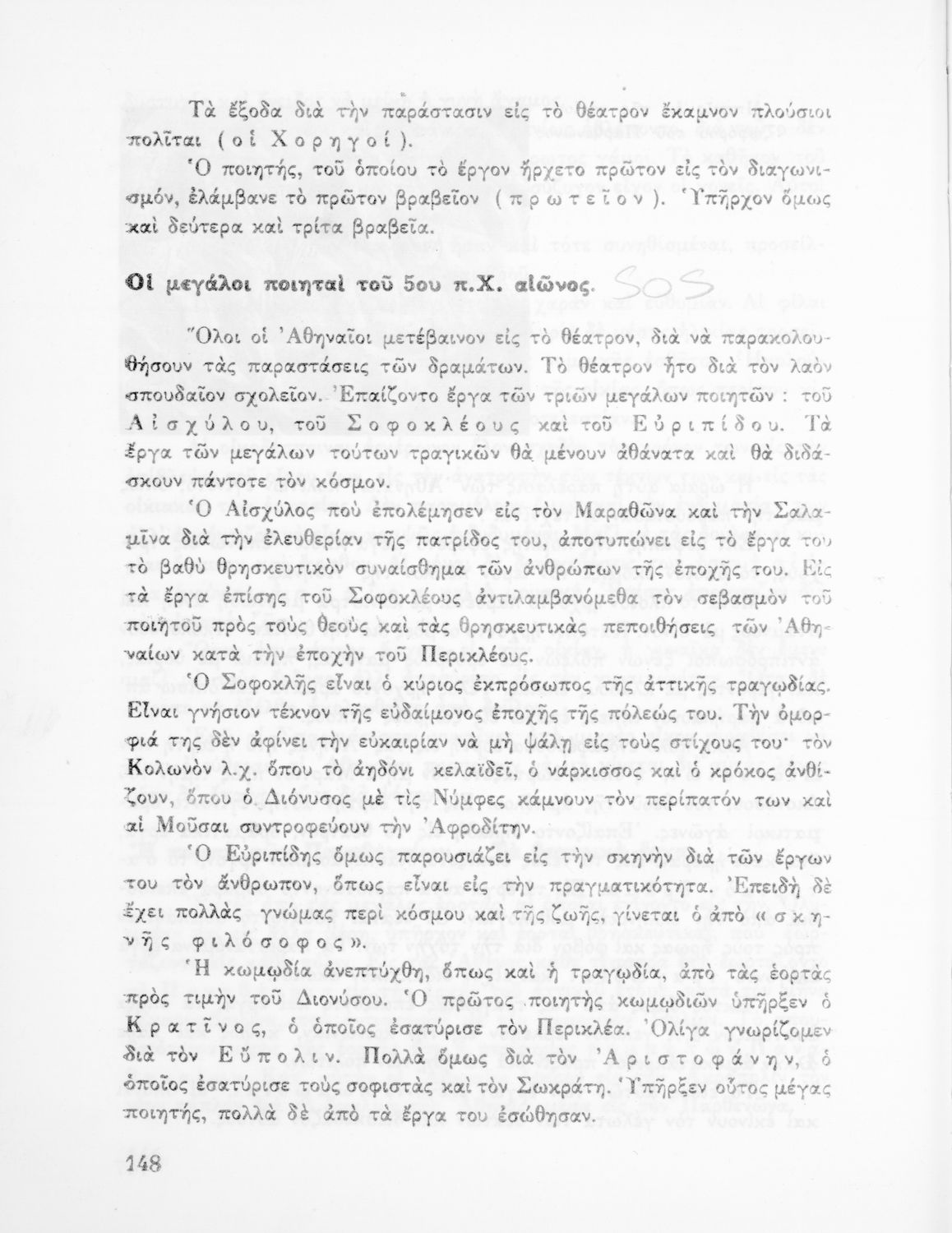 Σχολικό εγχειρίδιο Νέων Ελληνικών Γ΄ Γυμνασίου και Α' Αστικού Σχολείου που περιέχει πεζά και ποιήματα Ελλήνων συγγραφέων εμπνευσμένα από τη θρησκευτική και κοινωνική ζωή, την ελληνική μυθολογία, την αρχαία και