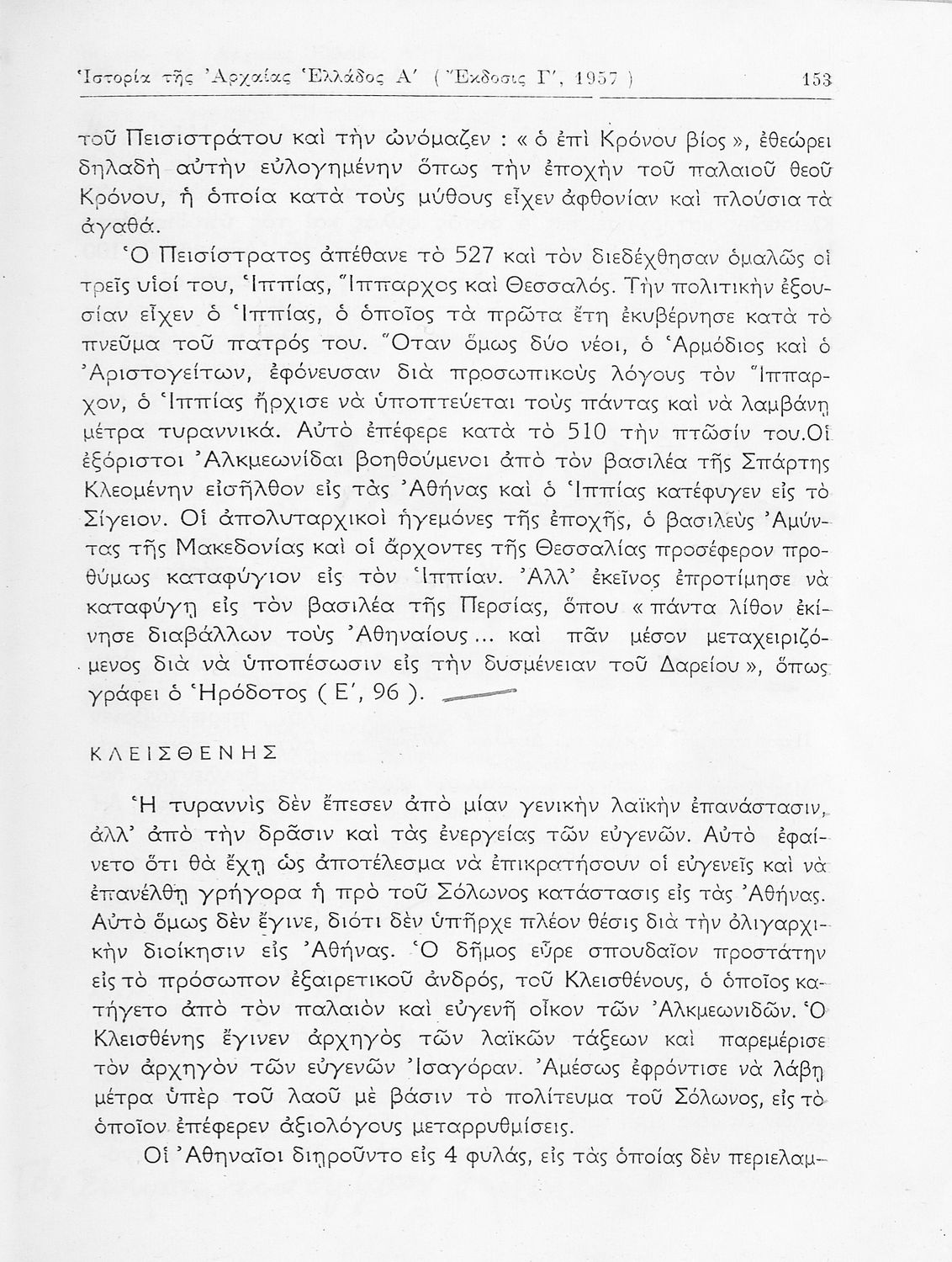 Σχολικό εγχειρίδιο Ιστορίας Α΄ Γυμνασίου που καλύπτει την περίοδο από τους προϊστορικούς χρόνους ως τις μεταρρυθμίσεις του Κλεισθένη. Περιέχει και εκτενή αναφορά στην ανάπτυξη των γραμμάτων, των τεχνών και του