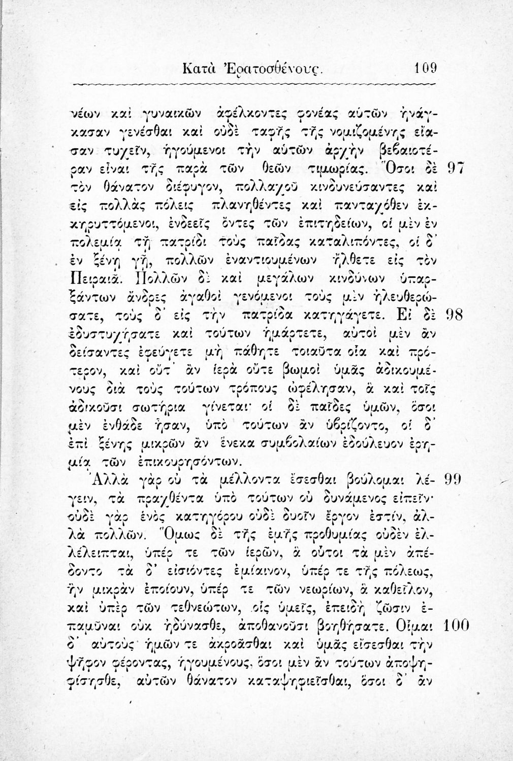Σχολικό εγχειρίδιο Αρχαίων Ελληνικών για τα Ιερατικά Σχολεία. Ο τόμος περιέχει: «Ξενοφώντος εκ των Ελληνικών Ιστοριών και εκ των Απομνημονευμάτων Σωκράτους, αποσπάσματα –Ισοκράτους, την προς Δημόνικον ...