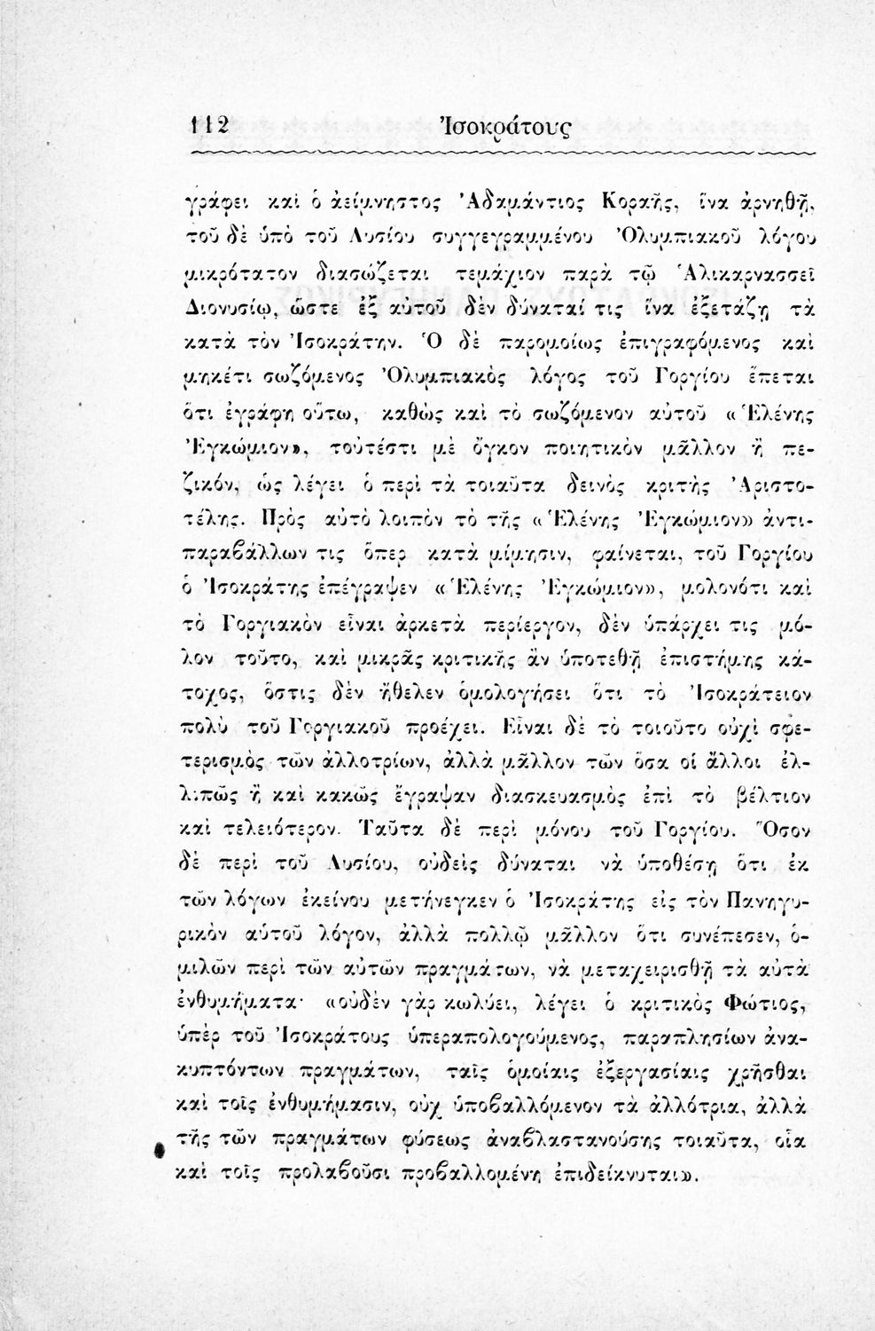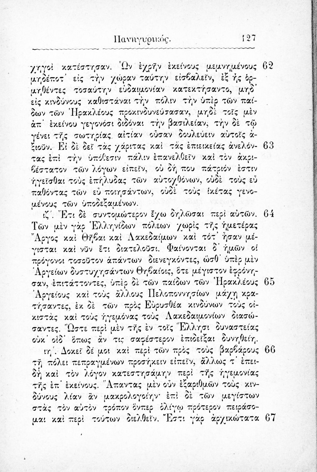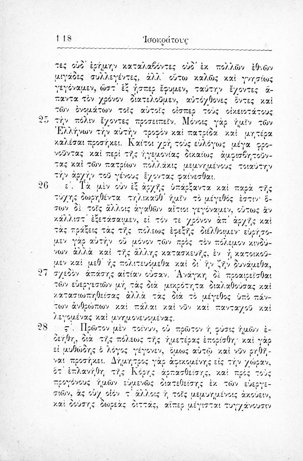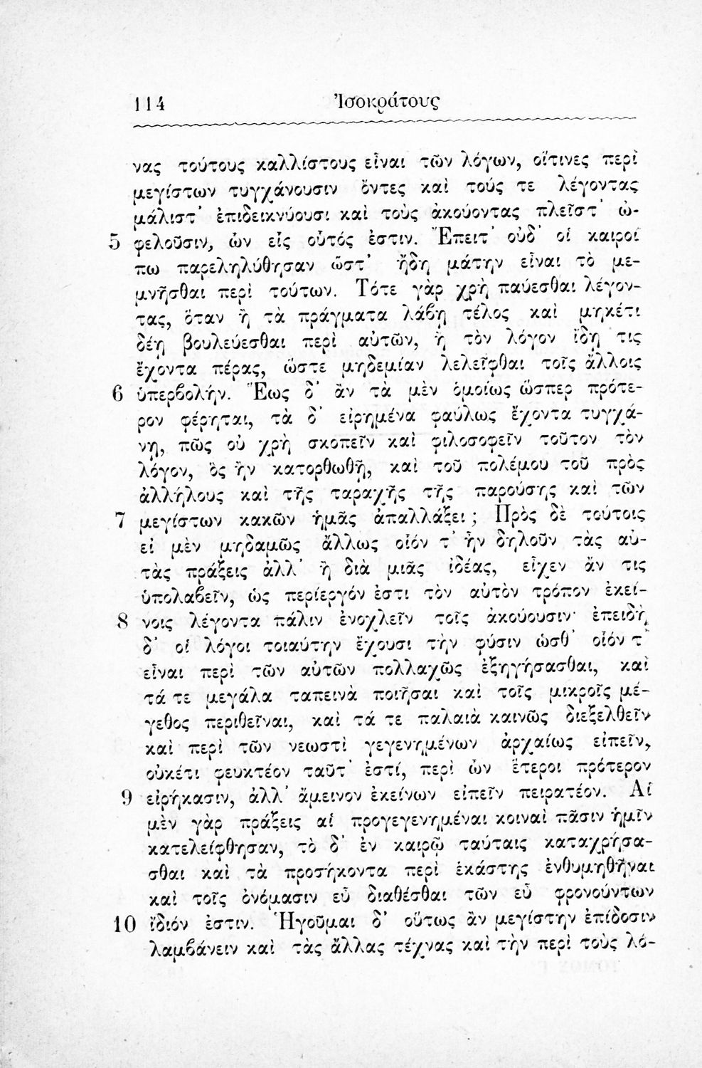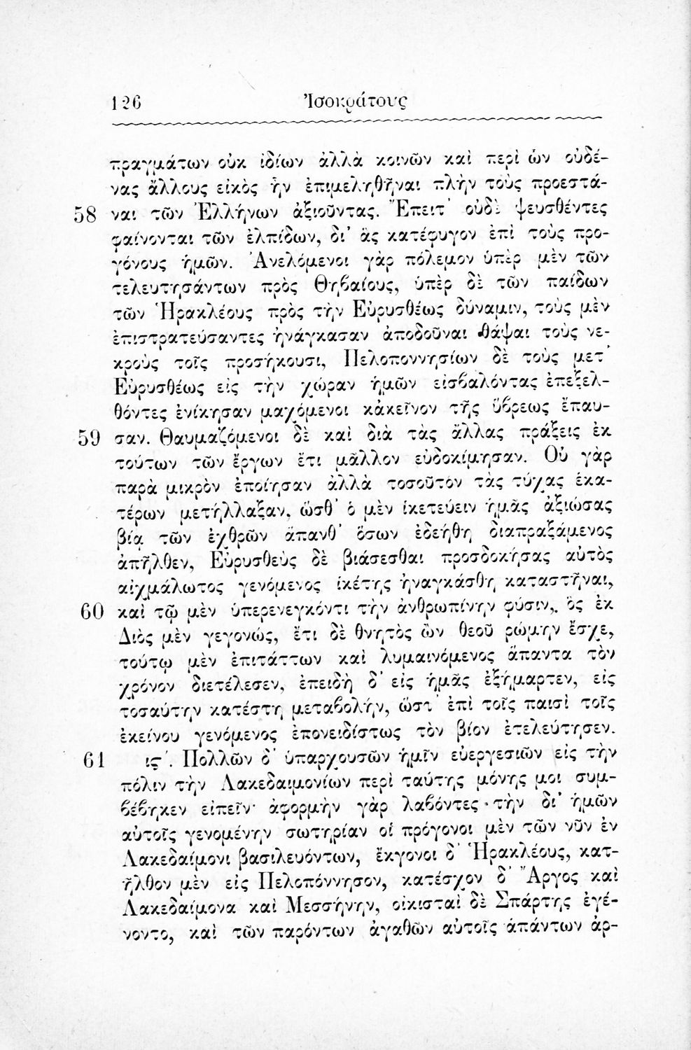 Σχολικό εγχειρίδιο Αρχαίων Ελληνικών για τα Ιερατικά Σχολεία. Ο τόμος περιέχει : «Ισοκράτους, το εις Ευαγόρα εγκώμιον, και τον Πανηγυρικόν- Πλουτάρχου, εκ των Παραλλήλων βίων τινάς- Ηροδότου, εκ των Ιστοριών ...