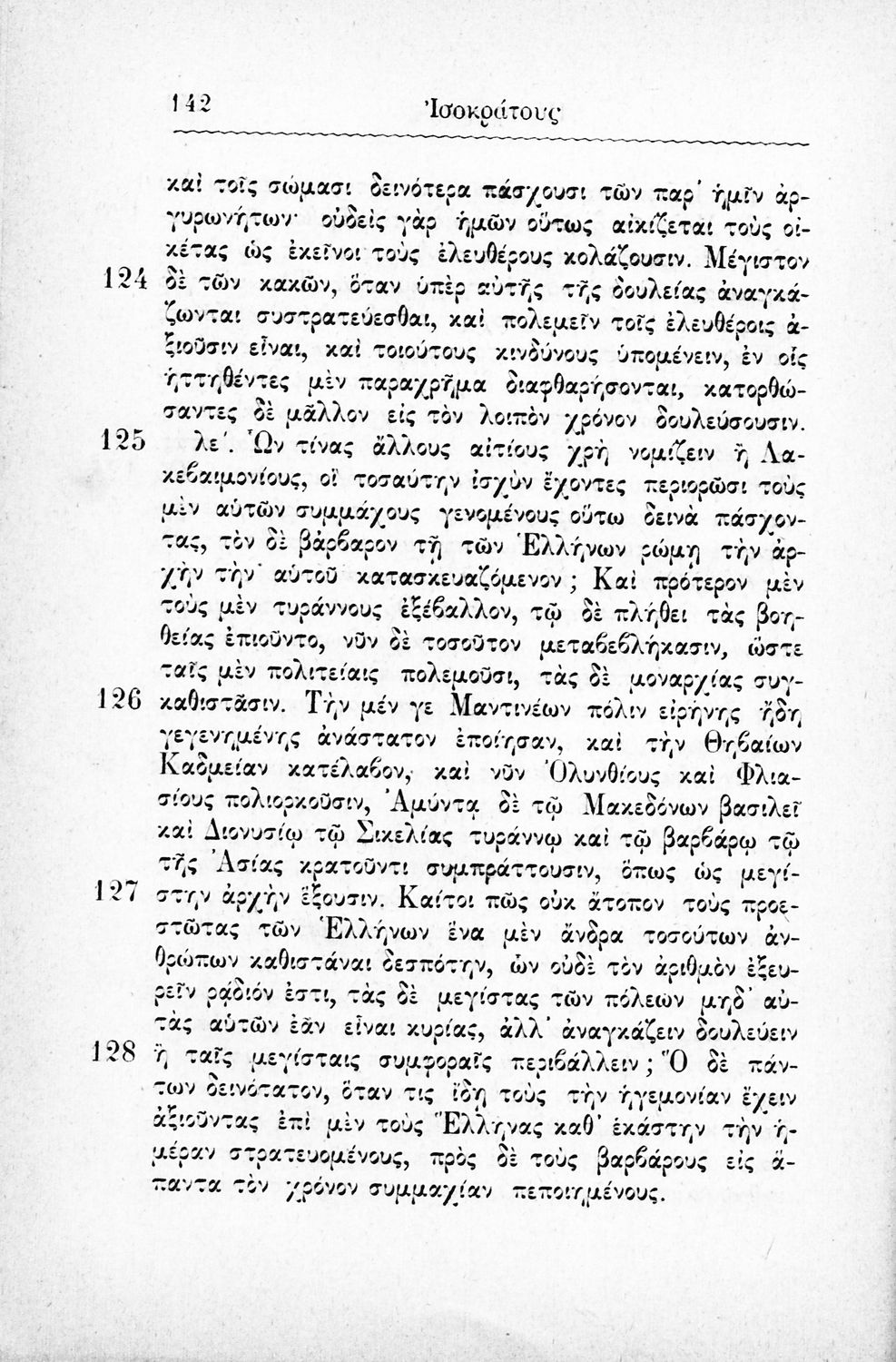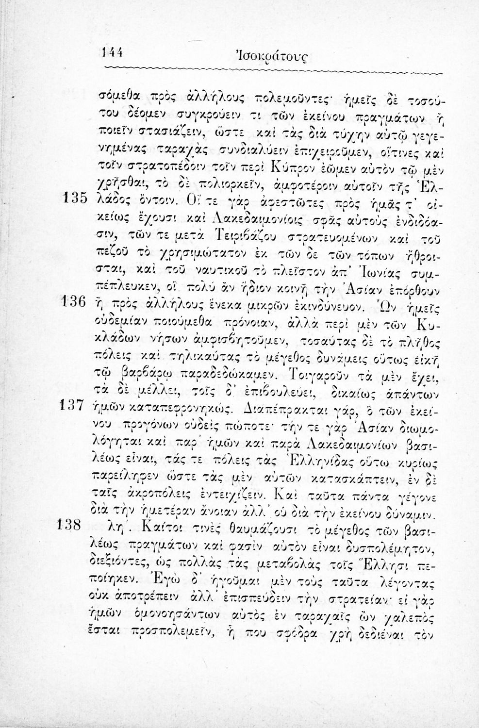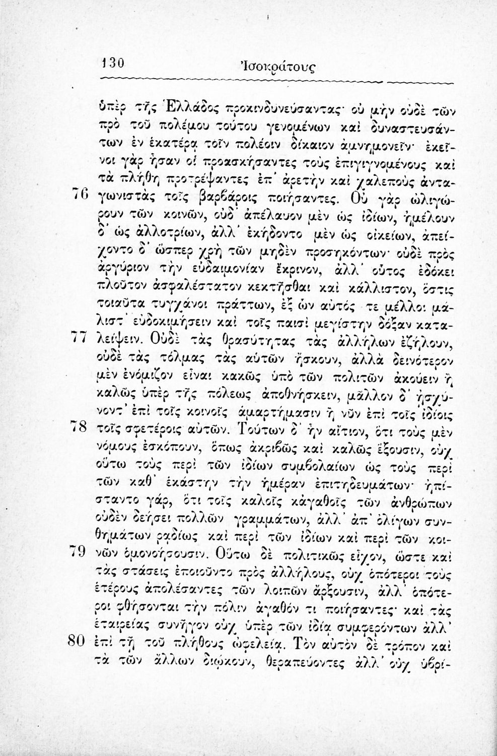 Σχολικό εγχειρίδιο Αρχαίων Ελληνικών για τα Ιερατικά Σχολεία. Ο τόμος περιέχει : «Ισοκράτους, το εις Ευαγόρα εγκώμιον, και τον Πανηγυρικόν- Πλουτάρχου, εκ των Παραλλήλων βίων τινάς- Ηροδότου, εκ των Ιστοριών ...