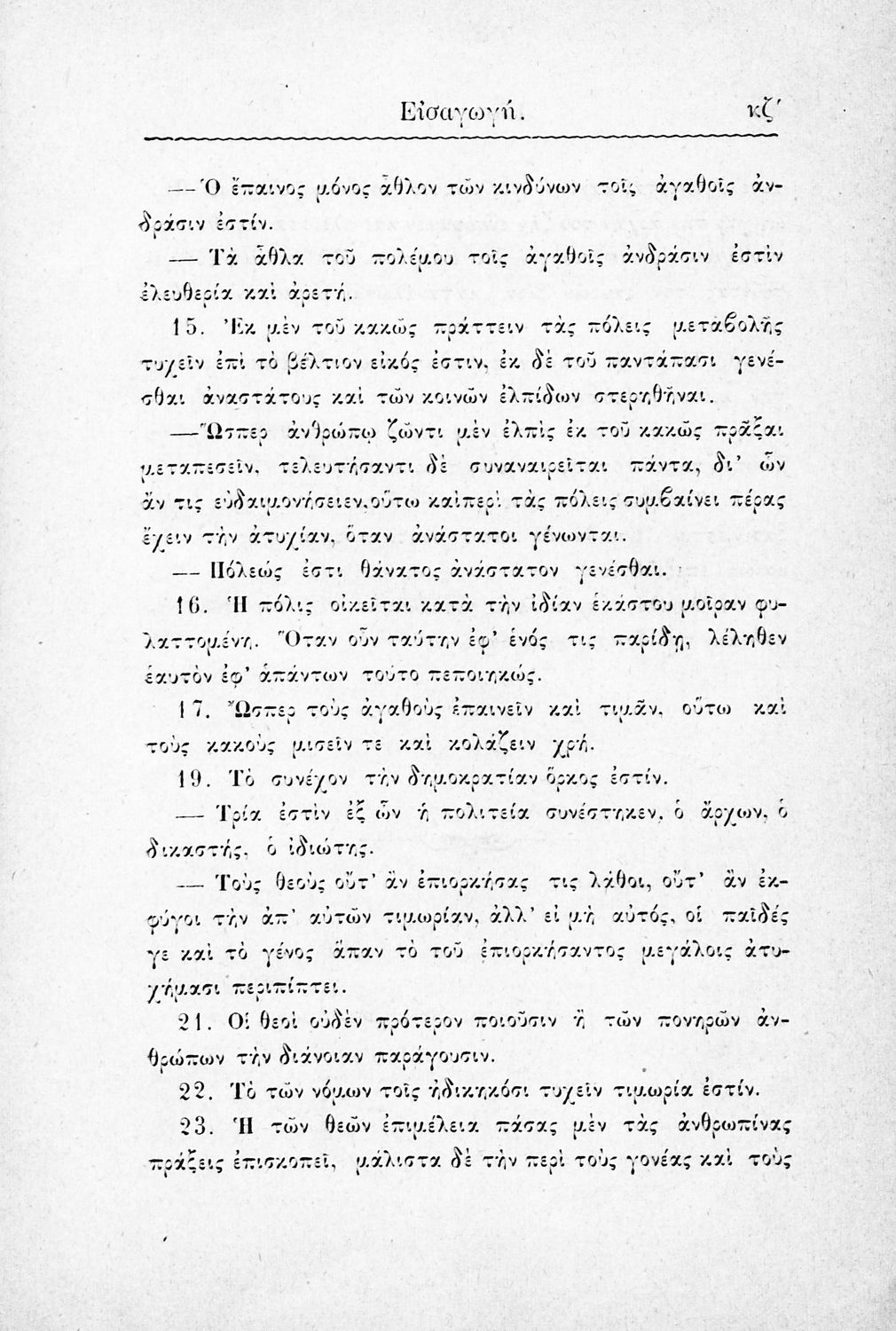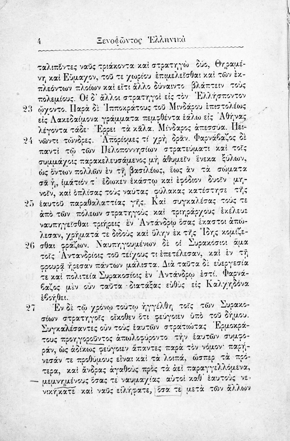 Σχολικό εγχειρίδιο Αρχαίων Ελληνικών για τα Ιερατικά Σχολεία. Ο τόμος περιέχει: «Ξενοφώντος εκ των Ελληνικών Ιστοριών και εκ των Απομνημονευμάτων Σωκράτους, αποσπάσματα –Ισοκράτους, την προς Δημόνικον ...