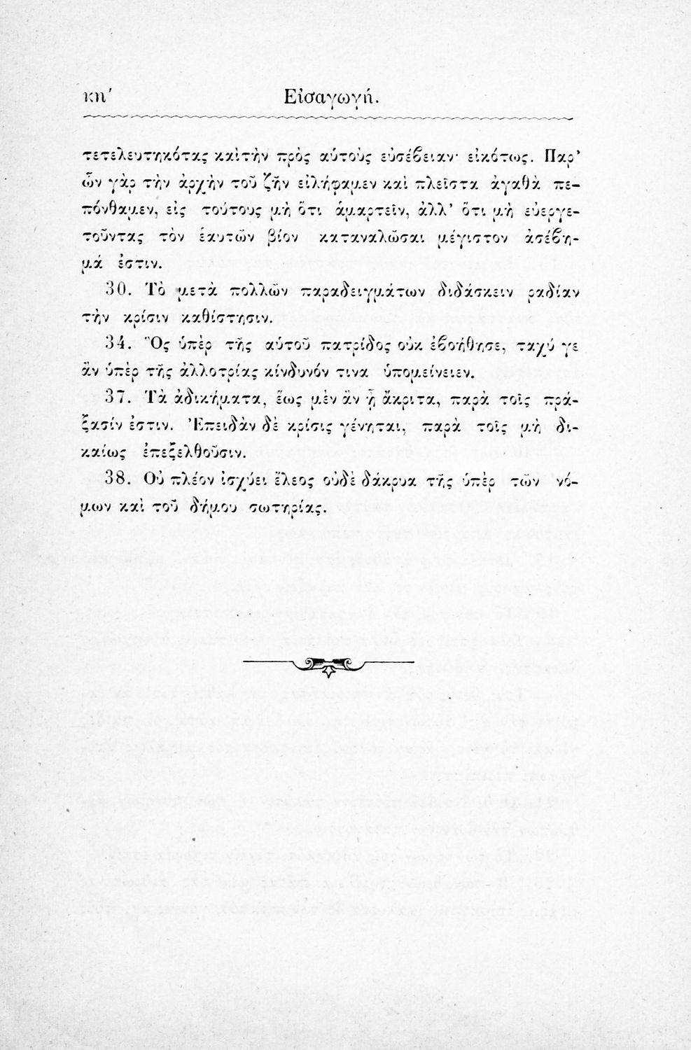 Σχολικό εγχειρίδιο Αρχαίων Ελληνικών για τα Ιερατικά Σχολεία. Ο τόμος περιέχει : «Ισοκράτους, το εις Ευαγόρα εγκώμιον, και τον Πανηγυρικόν- Πλουτάρχου, εκ των Παραλλήλων βίων τινάς- Ηροδότου, εκ των Ιστοριών ...