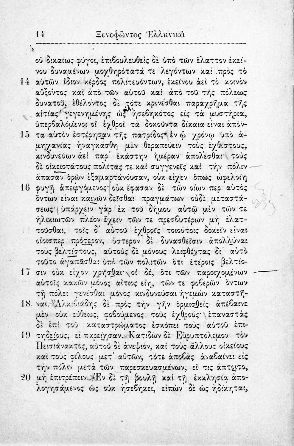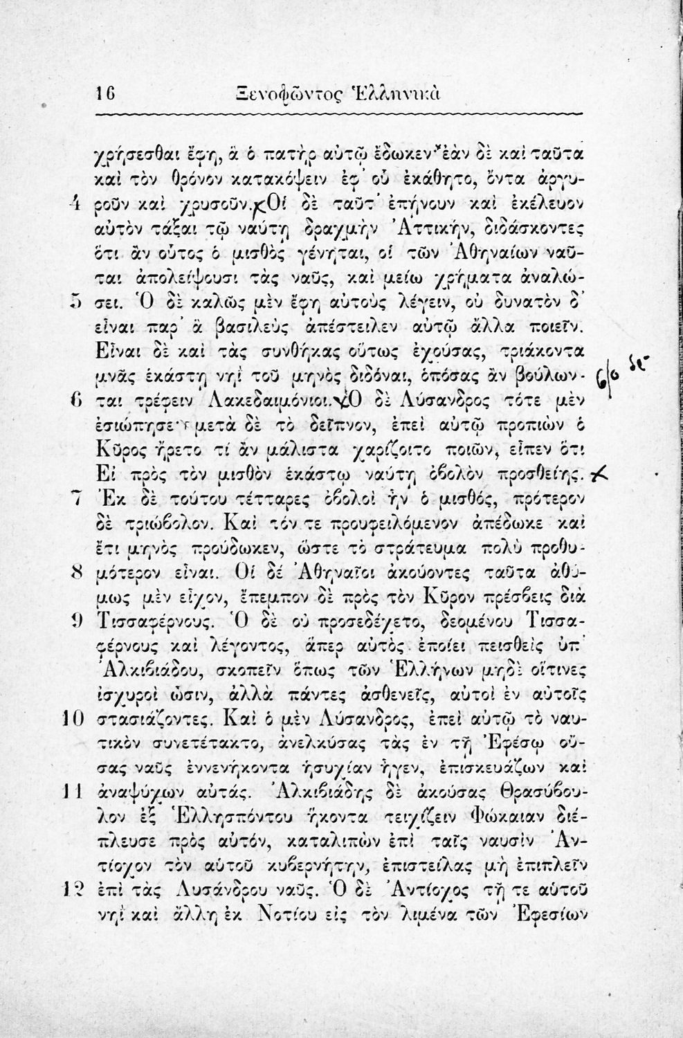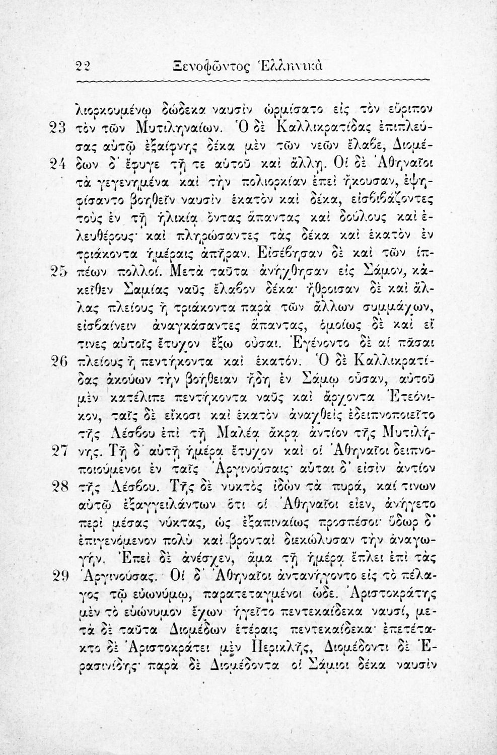 Σχολικό εγχειρίδιο Αρχαίων Ελληνικών για τα Ιερατικά Σχολεία. Ο τόμος περιέχει: «Ξενοφώντος εκ των Ελληνικών Ιστοριών και εκ των Απομνημονευμάτων Σωκράτους, αποσπάσματα –Ισοκράτους, την προς Δημόνικον ...