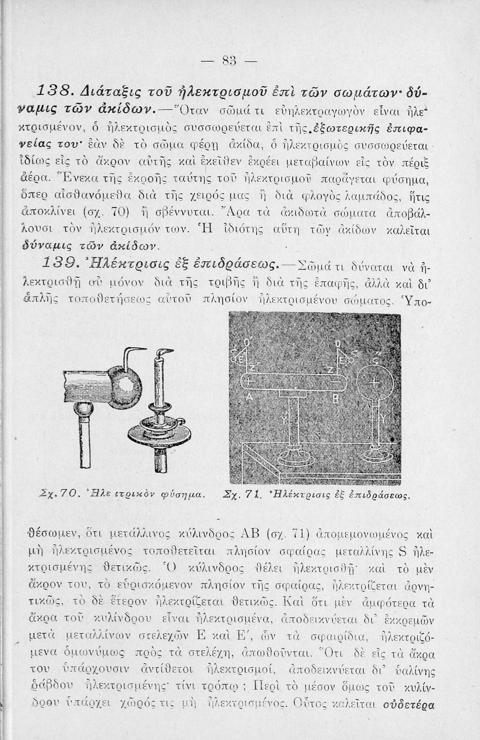 Παρουσίαση περιεχομένου: Το σύγγραμμα ήταν σχολικό εγχειρίδιο για το μάθημα της Φυσικής στο Γυμνάσιο . Παρέχει βασικές γνώσεις της φυσικής επιστήμης και της χημείας. Αναλύει τις ιδιότητες των σωμάτων, καθώς και της θερμότητας, του ηλεκτρισμού και του μαγνητισμού, την υδροστατική, την βαρύτητα και την αεροστατική. Αναφέρει πολλά από τα όργανα, που χρησιμοποιούνται στη φυσική, καθώς και τις πρακτικές εφαρμογές της επιστήμης στην καθημερινότητα. Περιέχει εικόνες και σχεδιαγράμματα τα οποία βοηθούν τη διδασκαλία.