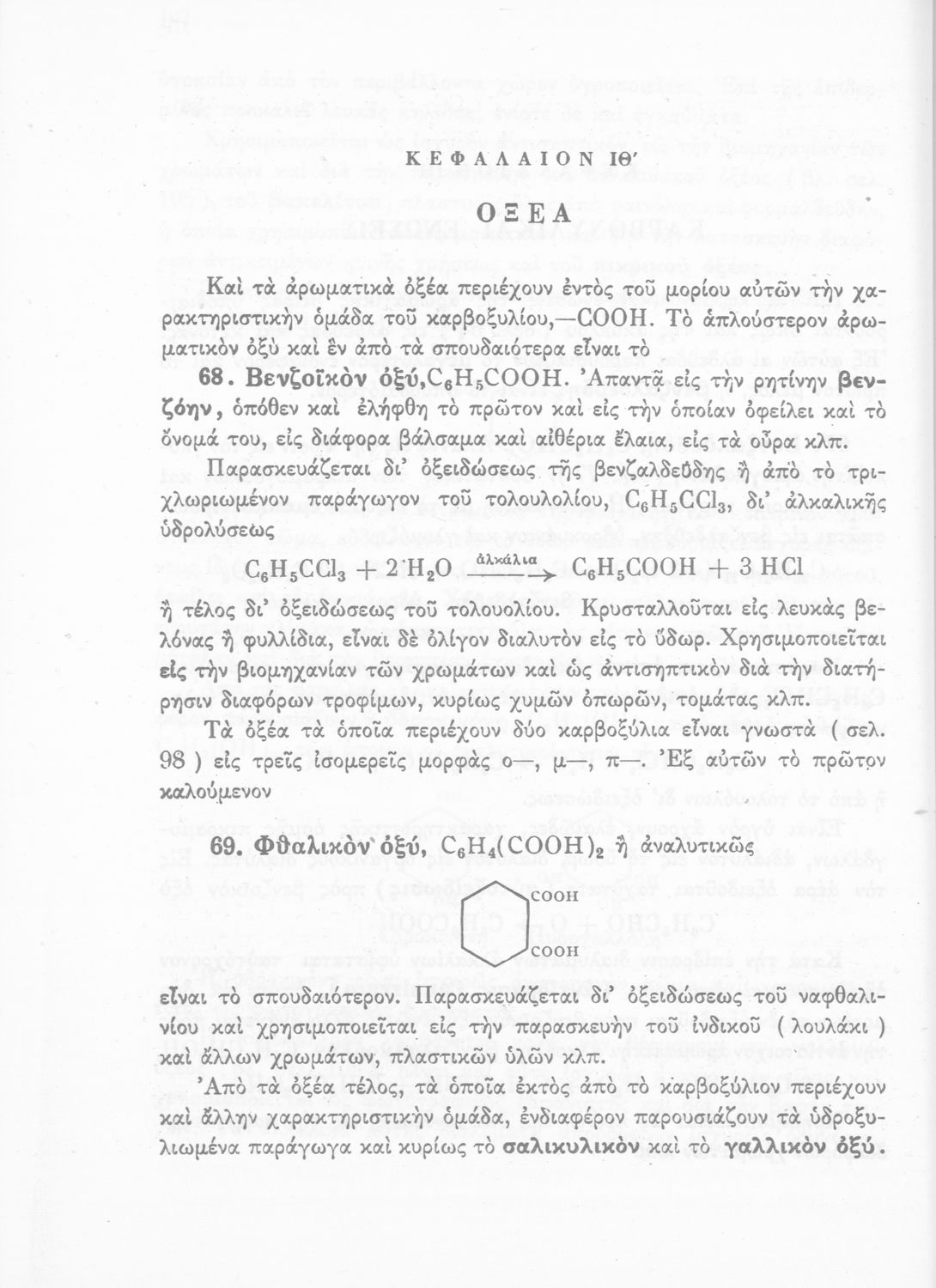 Σχολικό εγχειρίδιο Χημείας που απευθύνεται σε μαθητές Γυμνασίου με σκοπό τον προσδιορισμό της σύστασης οργανικών ουσιών και τη μοριακή σύνθεση τους. Περιγράφονται αναλυτικά οργανικές ενώσεις, οι ιδιότητες και η παρασκευή των οξέων, των ελαίων και των λιπών, η σύσταση και οι γενικές ιδιότητες των αρωματικών ενώσεων.