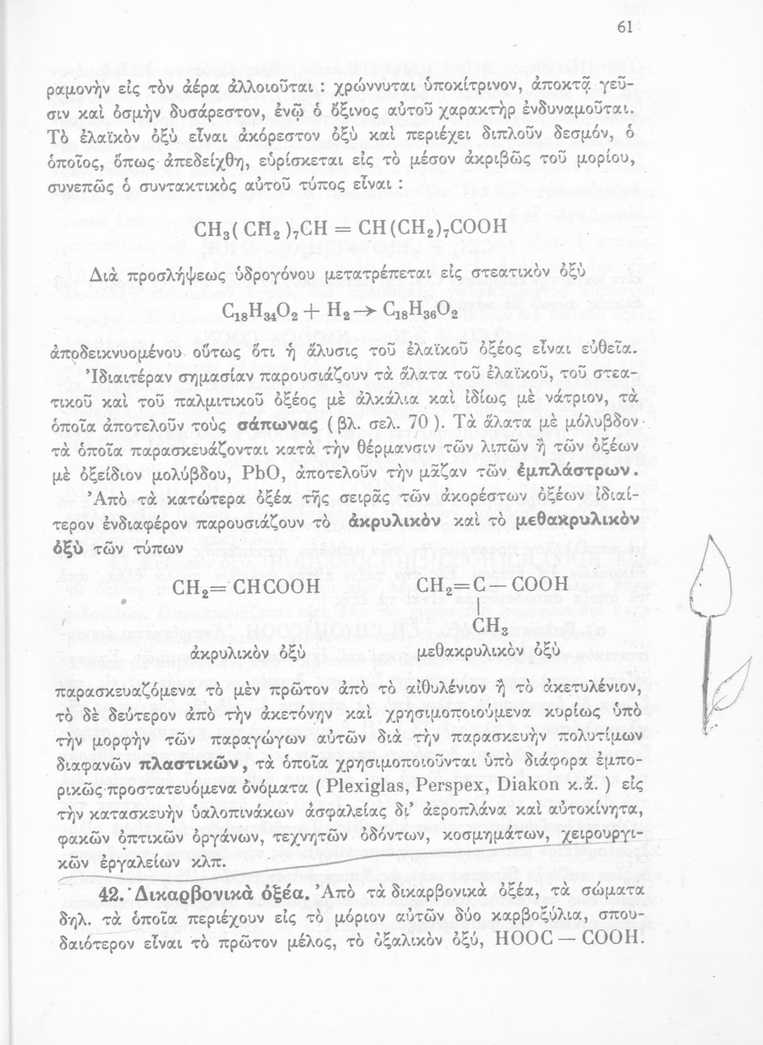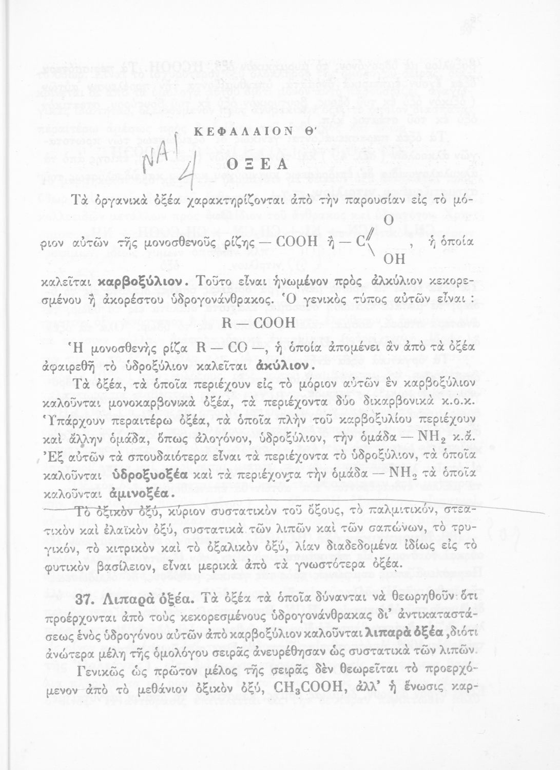 Σχολικό εγχειρίδιο Χημείας που προσδιορίζει τη σύσταση οργανικών ουσιών και τη μοριακή σύσταση τους. Περιγράφονται αναλυτικά οι οργανικές ενώσεις, οι ιδιότητες και η παρασκευή των οξέων-ελαίων-λιπών, η σύσταση