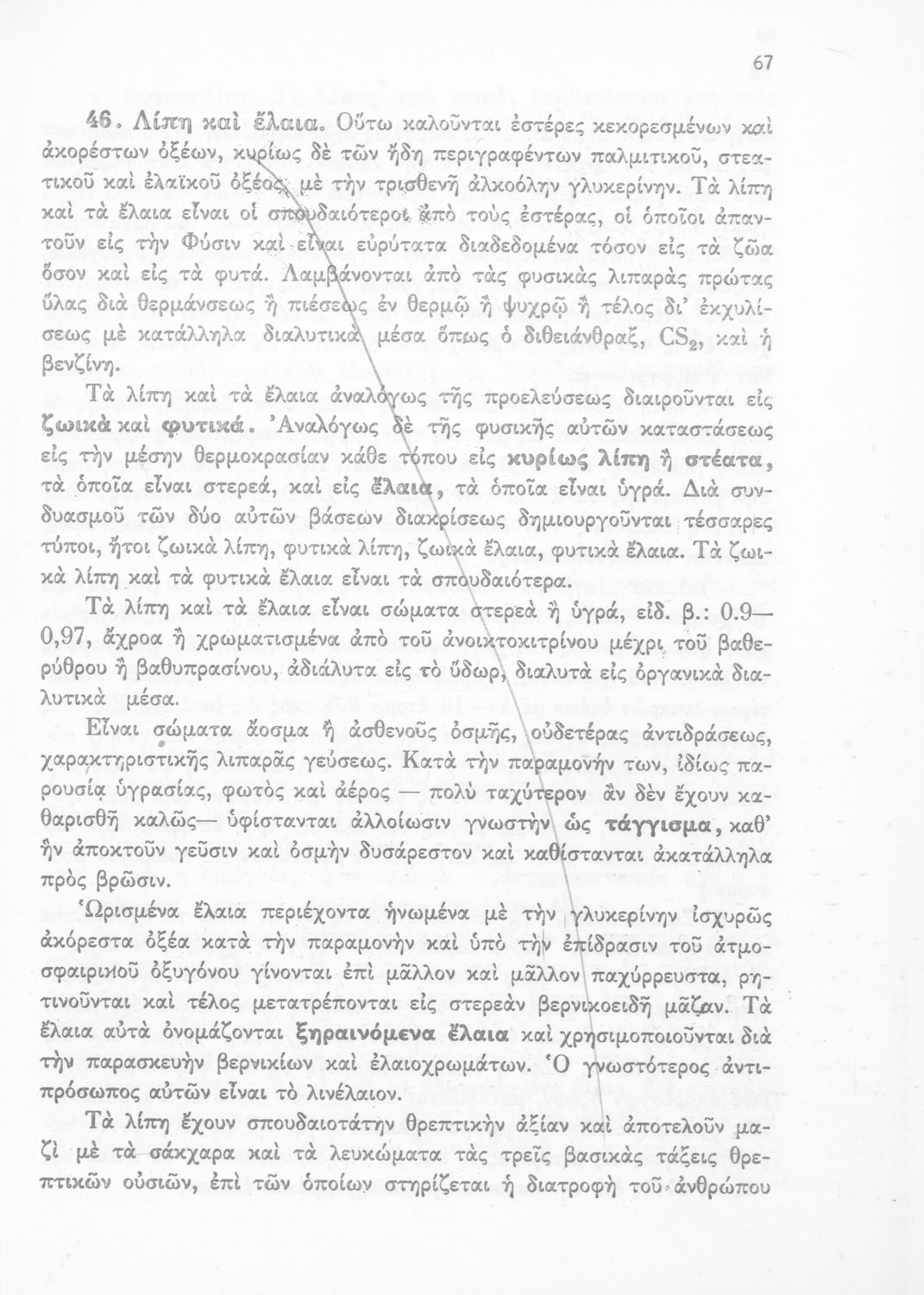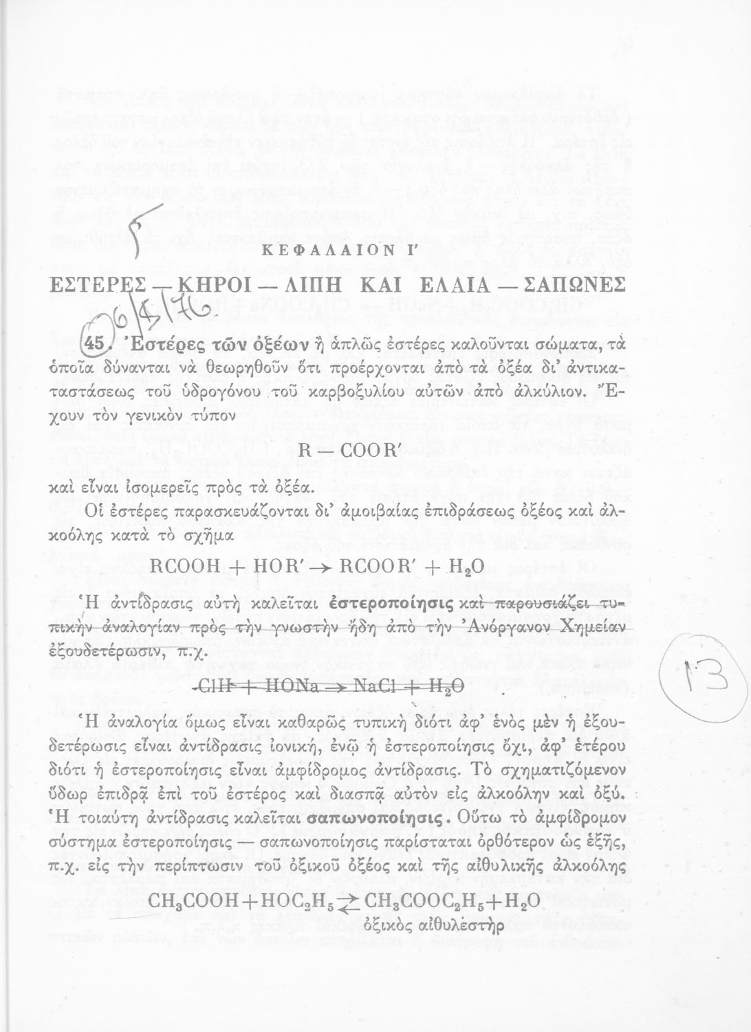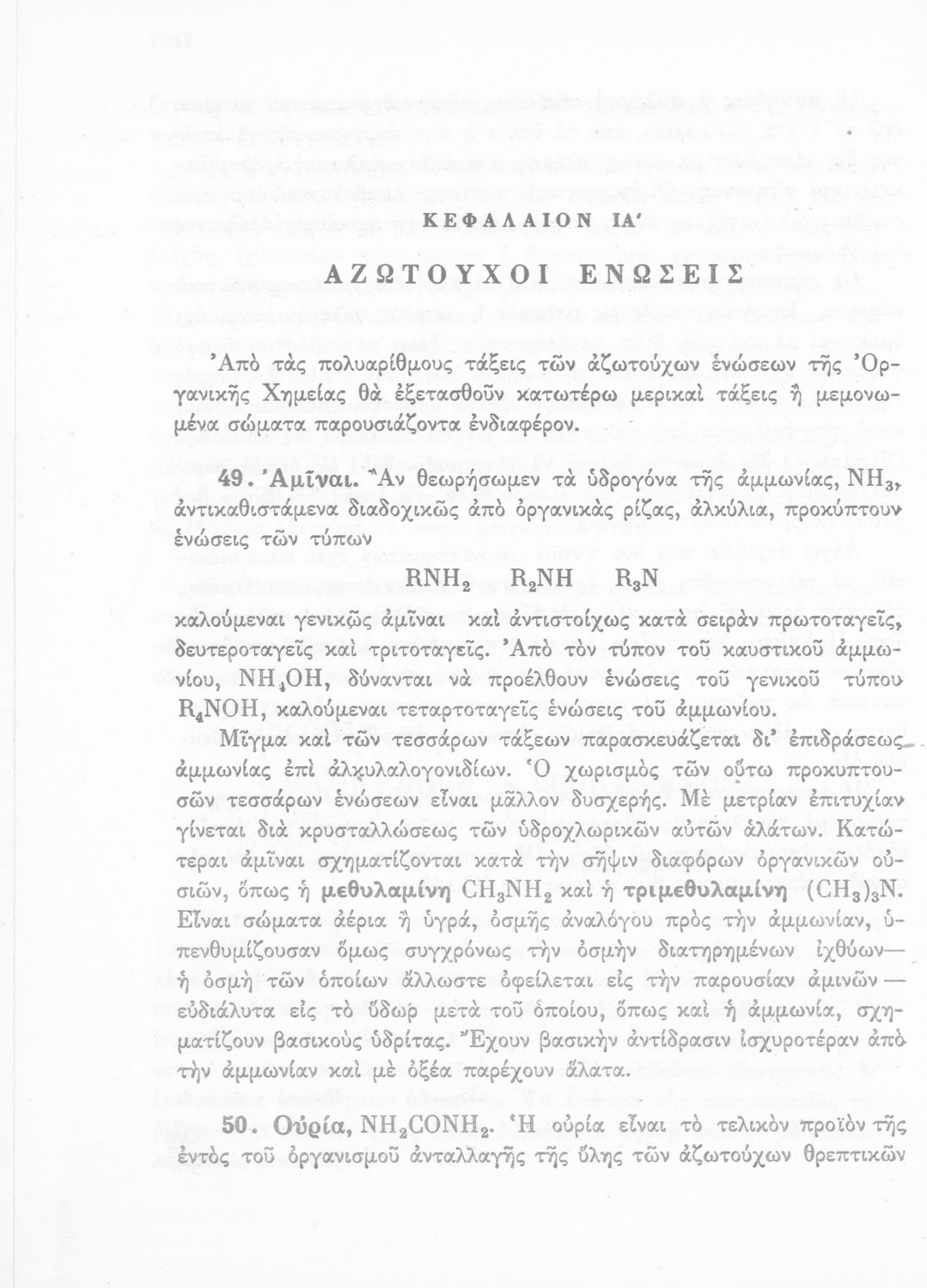 Σχολικό εγχειρίδιο Χημείας που προσδιορίζει τη σύσταση οργανικών ουσιών και τη μοριακή σύσταση τους. Περιγράφονται αναλυτικά οι οργανικές ενώσεις, οι ιδιότητες και η παρασκευή των οξέων-ελαίων-λιπών, η σύσταση