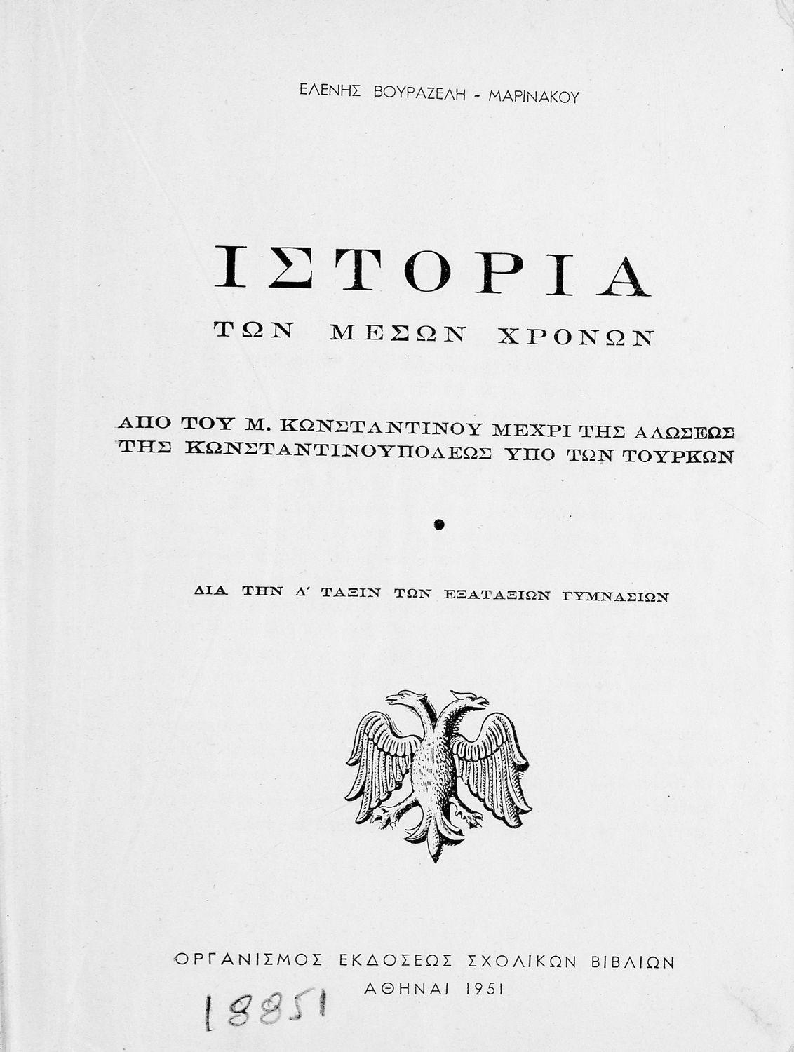 Εκδότης: Οργανισμός Εκδόσεως Σχολικών Βιβλίων Έτος έκδοσης: 1951 Τόπος έκδοσης: Αθήνα Έκδοση: 1η |