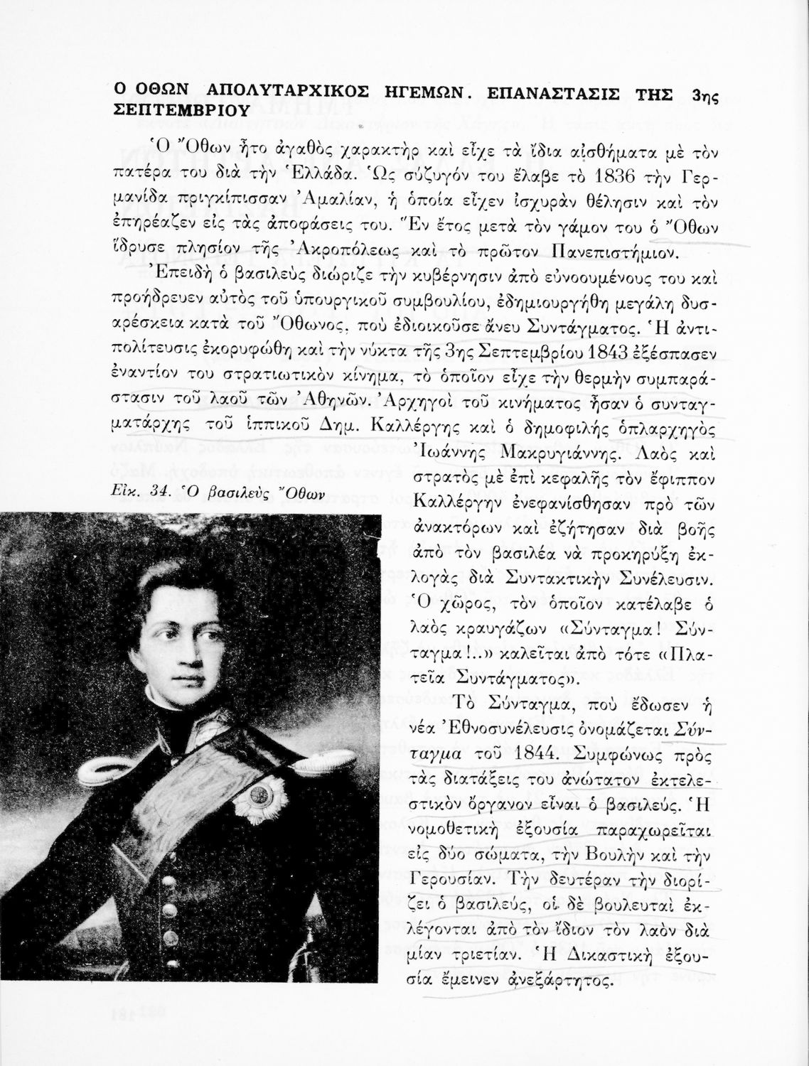 Σχολικό εγχειρίδιο Ιστορίας Γ΄ και ΣΤ΄ Γυμνασίου που καλύπτει την περίοδο της Αναγέννησης και του Διαφωτισμού στην Ευρώπη και την προετοιμασία της Ελληνικής Επανάστασης. Συνοπτικά αναφέρεται στο διάστημα από τη βασίλεια του 'Όθωνα ως τους δύο Παγκόσμιους Πολέμους και τον Ψυχρό Πόλεμο. Παρουσιάζει και την πνευματική κίνηση κατά τον 19ο και 20ο αιώνα. Φέρει το σύμβολο της δικτατορίας.