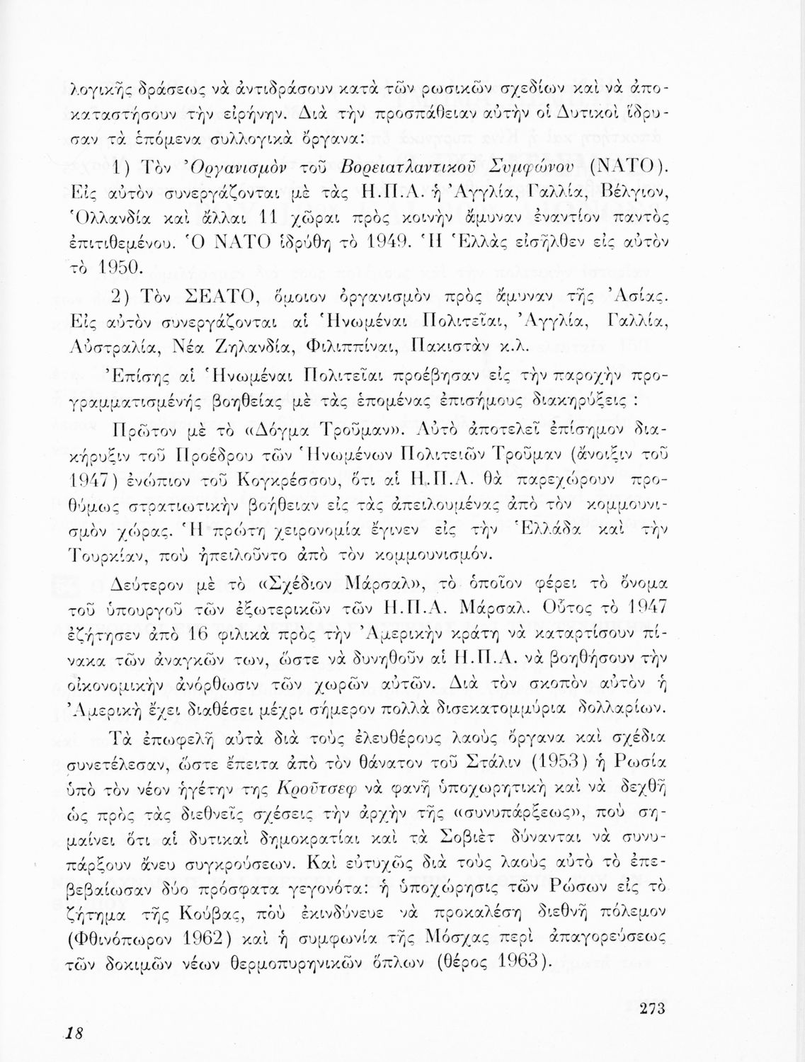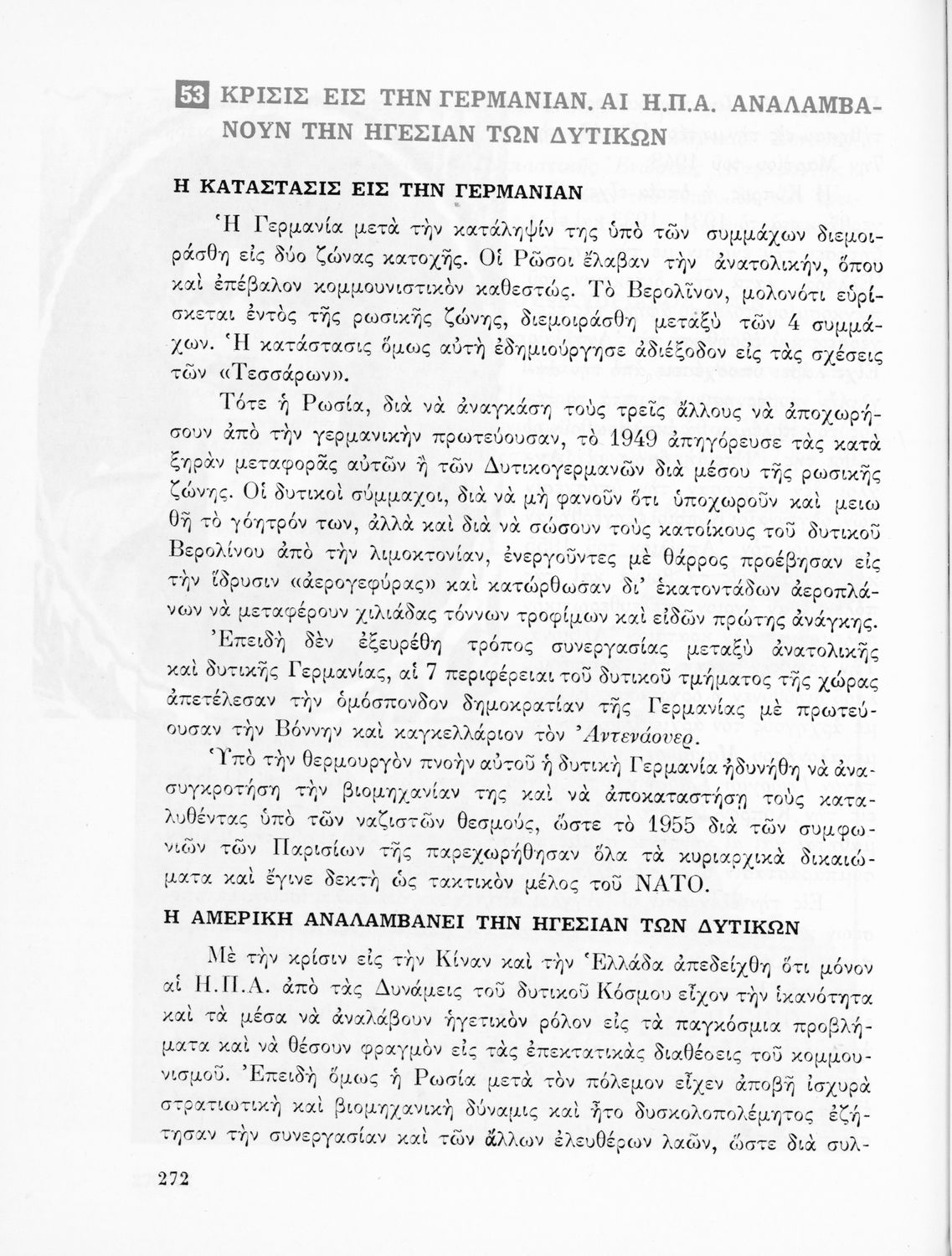 Σχολικό εγχειρίδιο Ιστορίας Γ΄ και ΣΤ΄ Γυμνασίου που καλύπτει την περίοδο της Αναγέννησης και του Διαφωτισμού στην Ευρώπη και την προετοιμασία της Ελληνικής Επανάστασης. Συνοπτικά αναφέρεται στο διάστημα από τη βασίλεια του 'Όθωνα ως τους δύο Παγκόσμιους Πολέμους και τον Ψυχρό Πόλεμο. Παρουσιάζει και την πνευματική κίνηση κατά τον 19ο και 20ο αιώνα. Φέρει το σύμβολο της δικτατορίας.