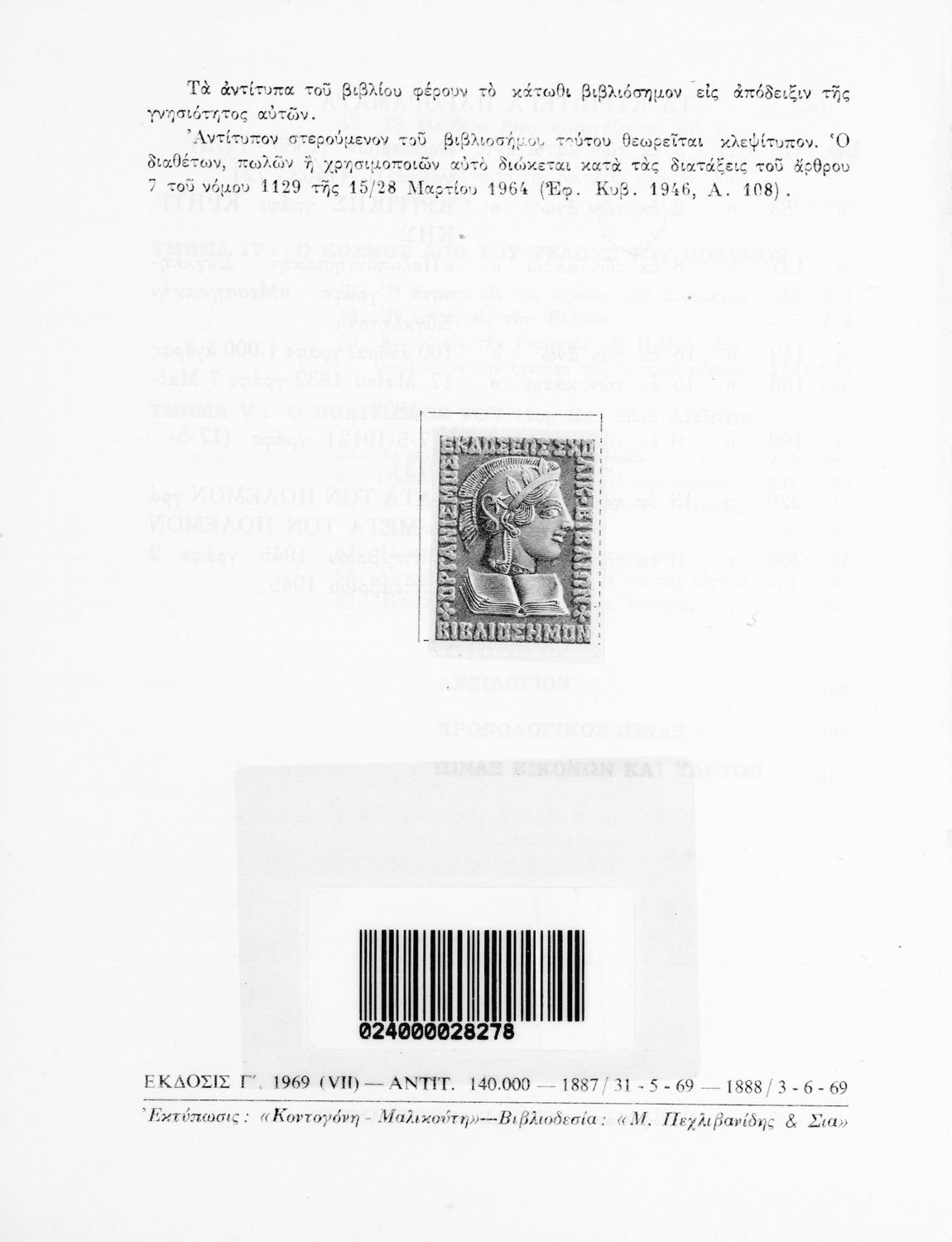 Εκδότης: Οργανισμός Εκδόσεως Διδακτικών Βιβλίων Έτος έκδοσης: 1969 Τόπος έκδοσης: Αθήνα Έκδοση: 3η Υπουργική απόφαση / Σύμβαση: 1888/3-6-1969 Έτος έγκρισης: 1969 |