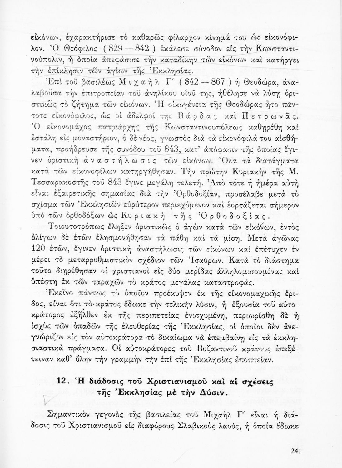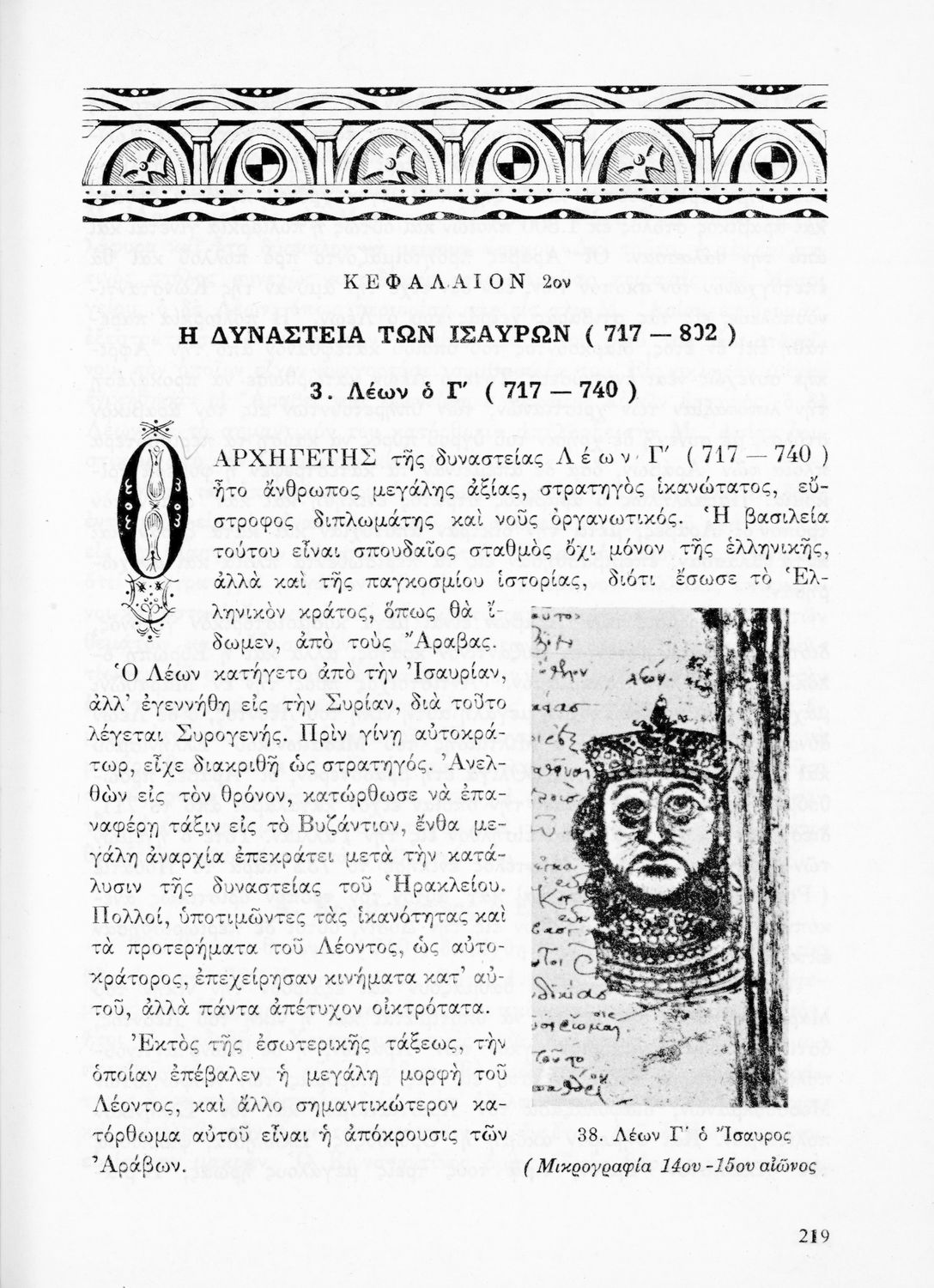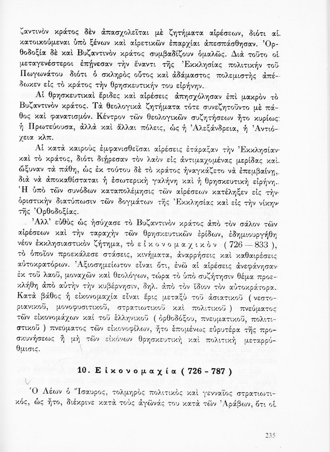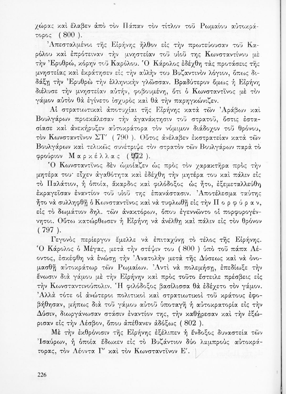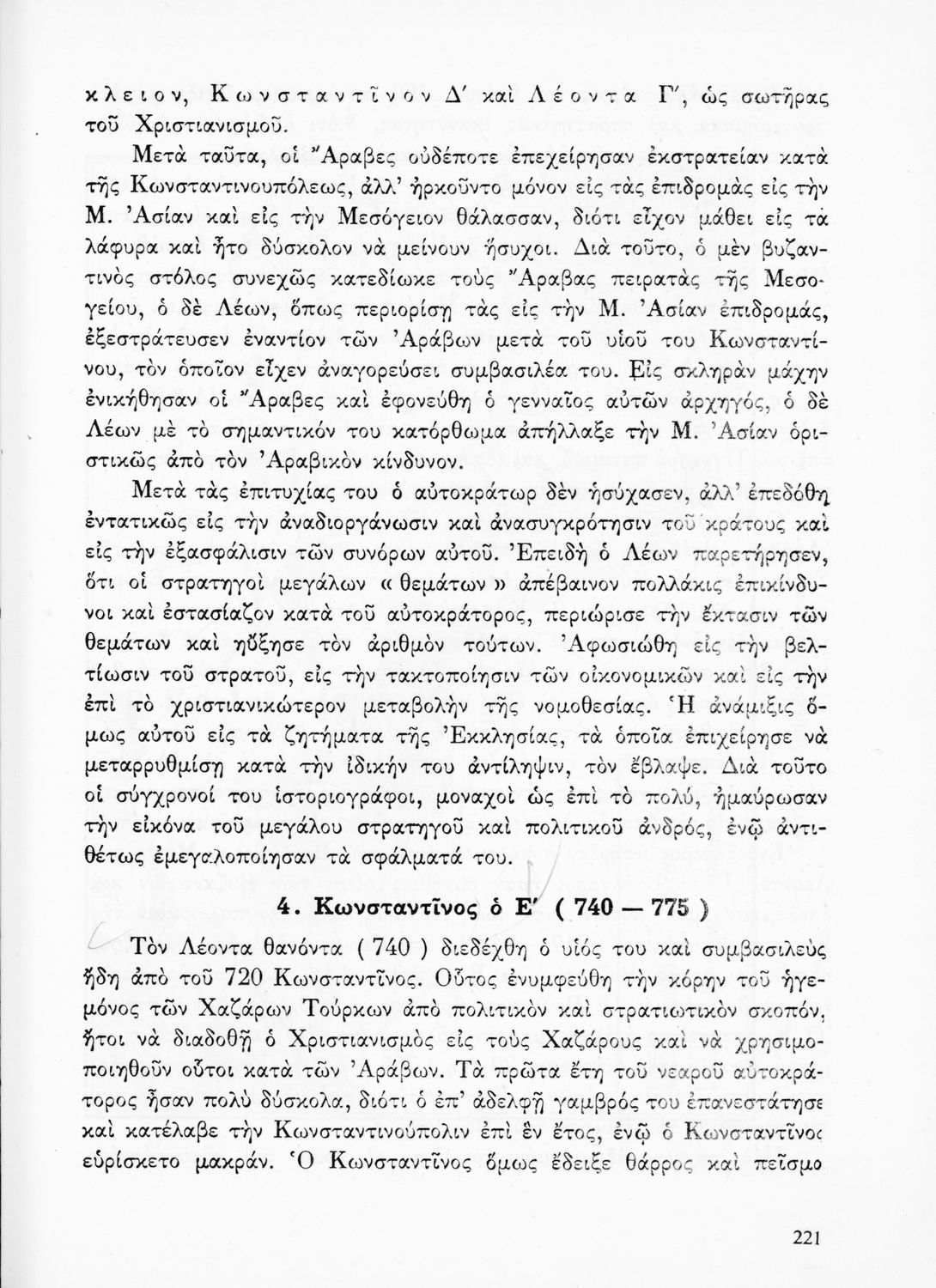 Σχολικό εγχειρίδιο Ιστορίας Β΄ και Ε΄ Γυμνασίου που καλύπτει την περίοδο από την άνοδο του Μ. Κωνσταντίνου στο θρόνο μέχρι και την άλωση της Κωνσταντινούπολης. Παρουσιάζει και τα πνευματικά και καλλιτεχνικά ρεύματα της περιόδου. Φέρει το σύμβολο της δικτατορίας.