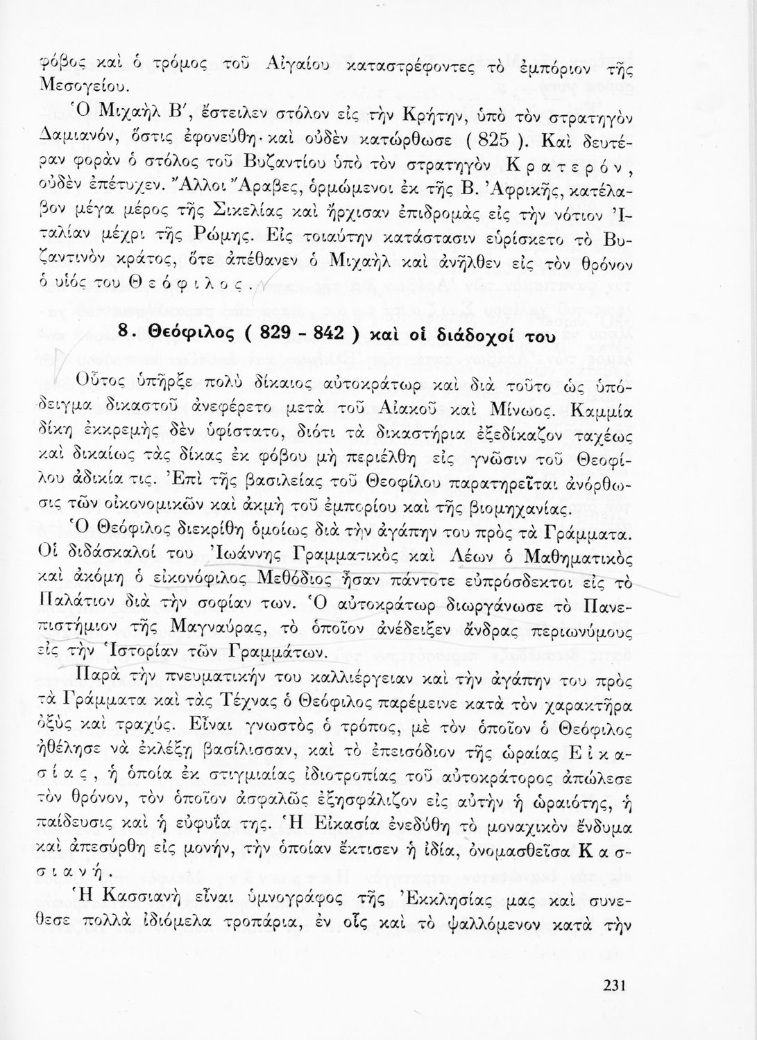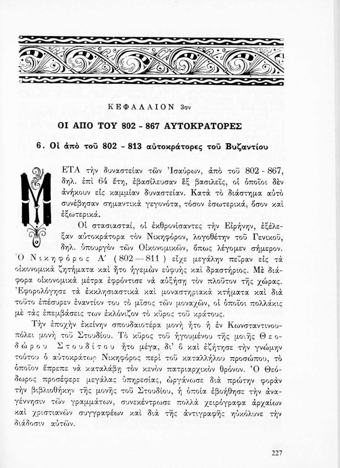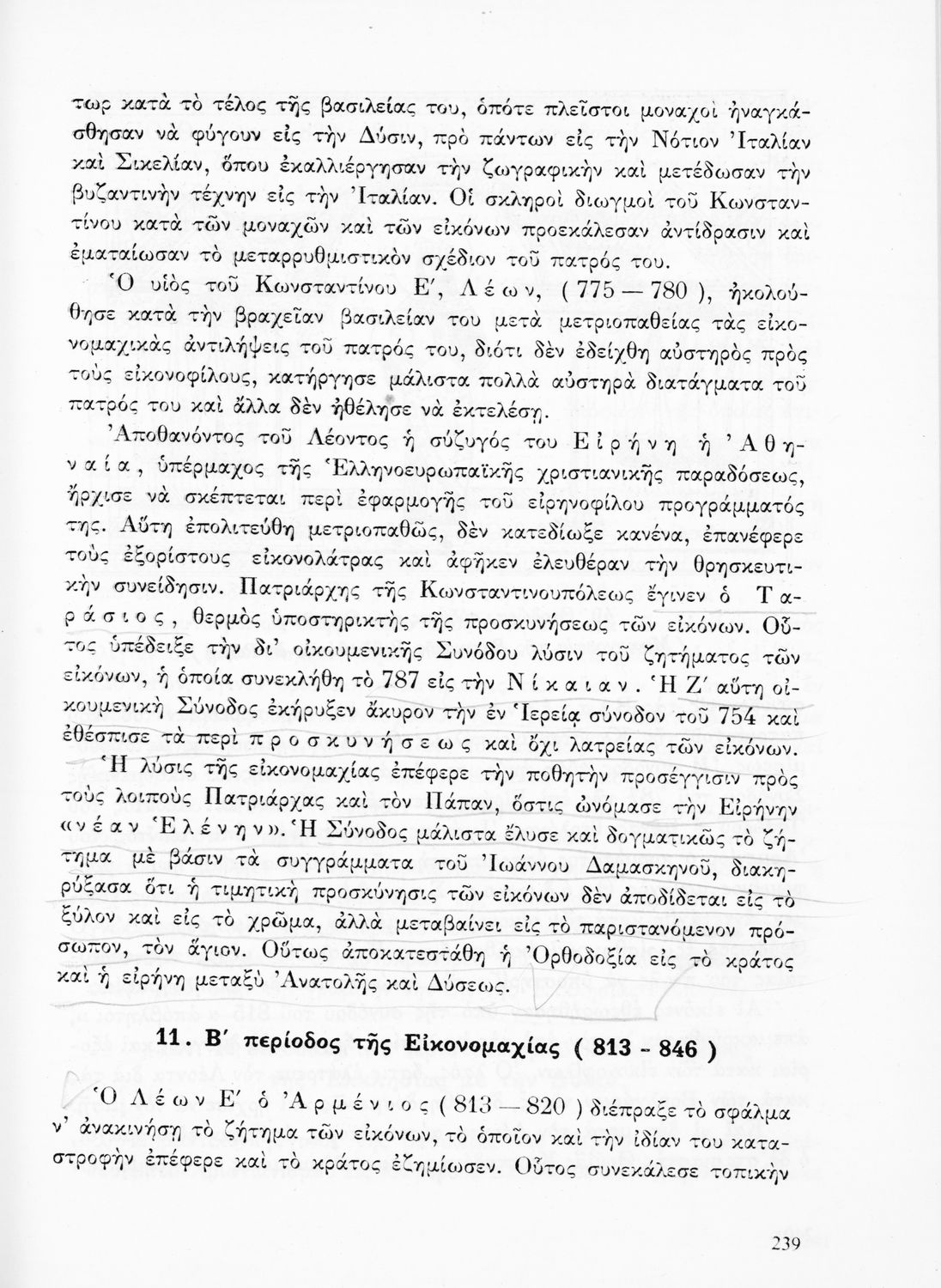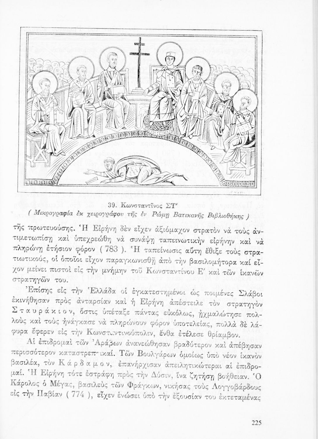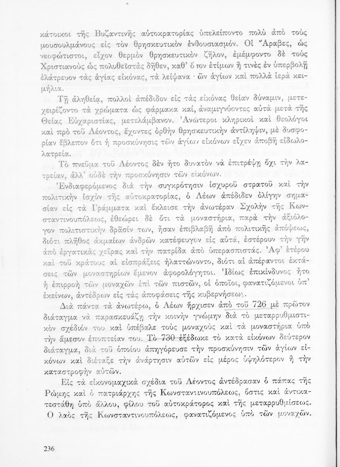 Σχολικό εγχειρίδιο Ιστορίας Β΄ και Ε΄ Γυμνασίου που καλύπτει την περίοδο από την άνοδο του Μ. Κωνσταντίνου στο θρόνο μέχρι και την άλωση της Κωνσταντινούπολης. Παρουσιάζει και τα πνευματικά και καλλιτεχνικά ρεύματα της περιόδου. Φέρει το σύμβολο της δικτατορίας.