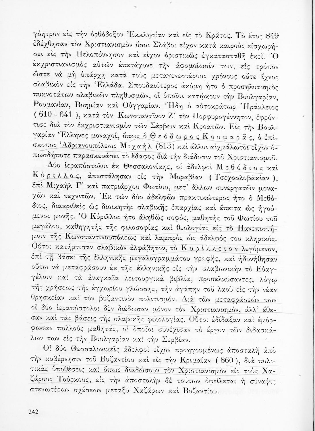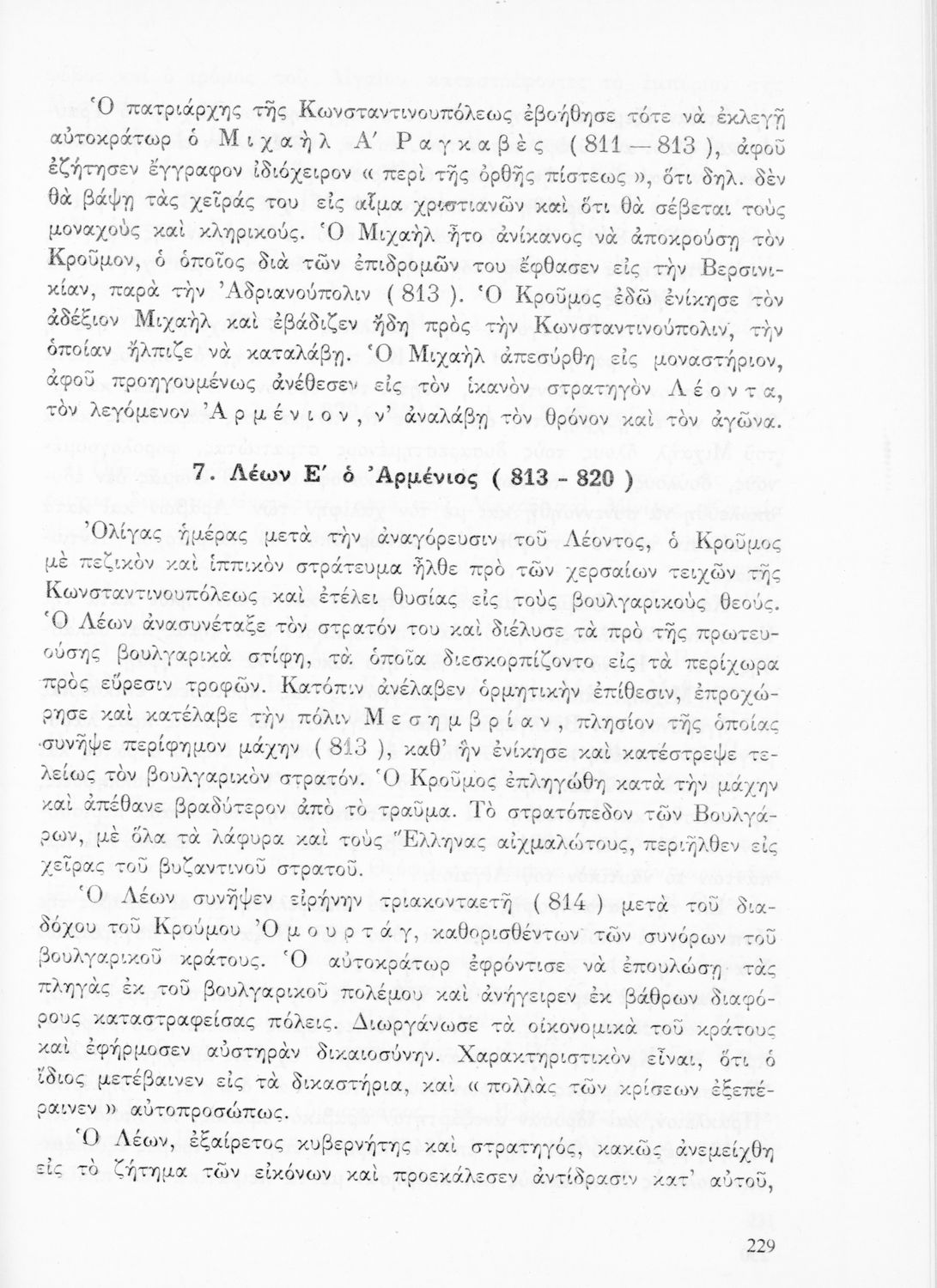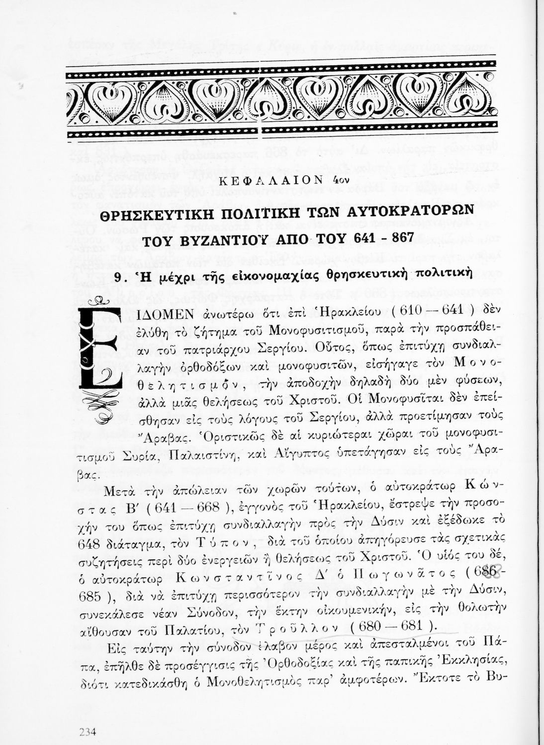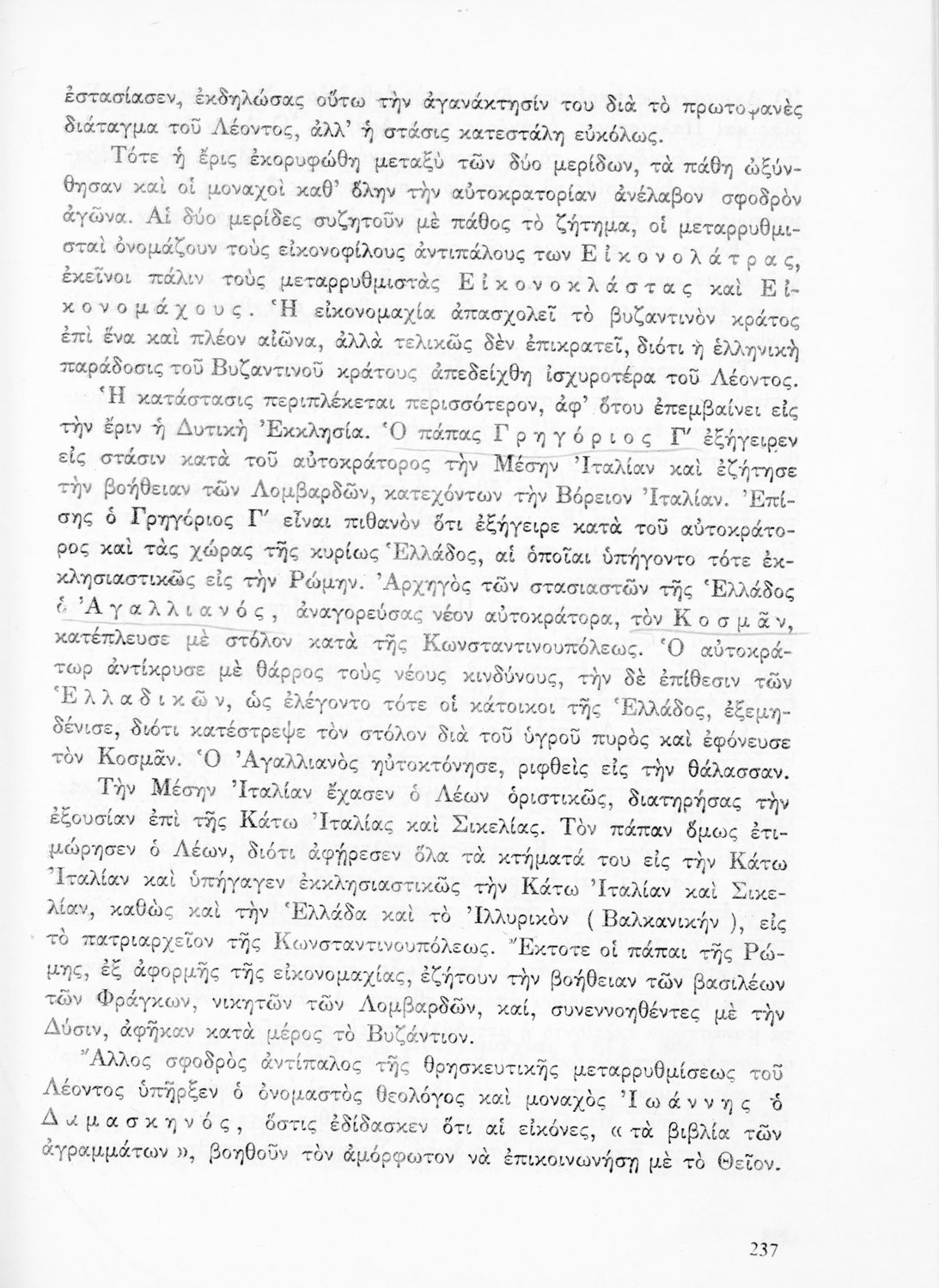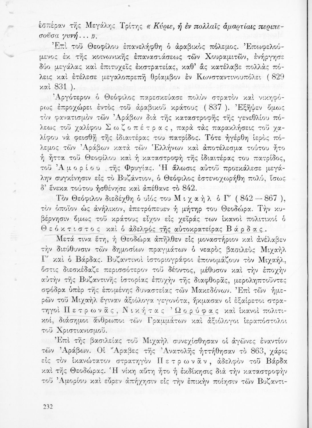 Σχολικό εγχειρίδιο Ιστορίας Β΄ και Ε΄ Γυμνασίου που καλύπτει την περίοδο από την άνοδο του Μ. Κωνσταντίνου στο θρόνο μέχρι και την άλωση της Κωνσταντινούπολης. Παρουσιάζει και τα πνευματικά και καλλιτεχνικά ρεύματα της περιόδου. Φέρει το σύμβολο της δικτατορίας.