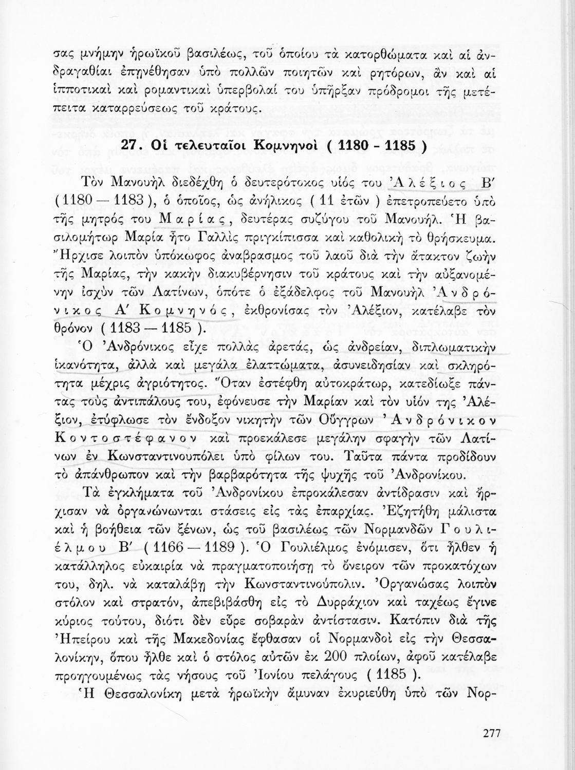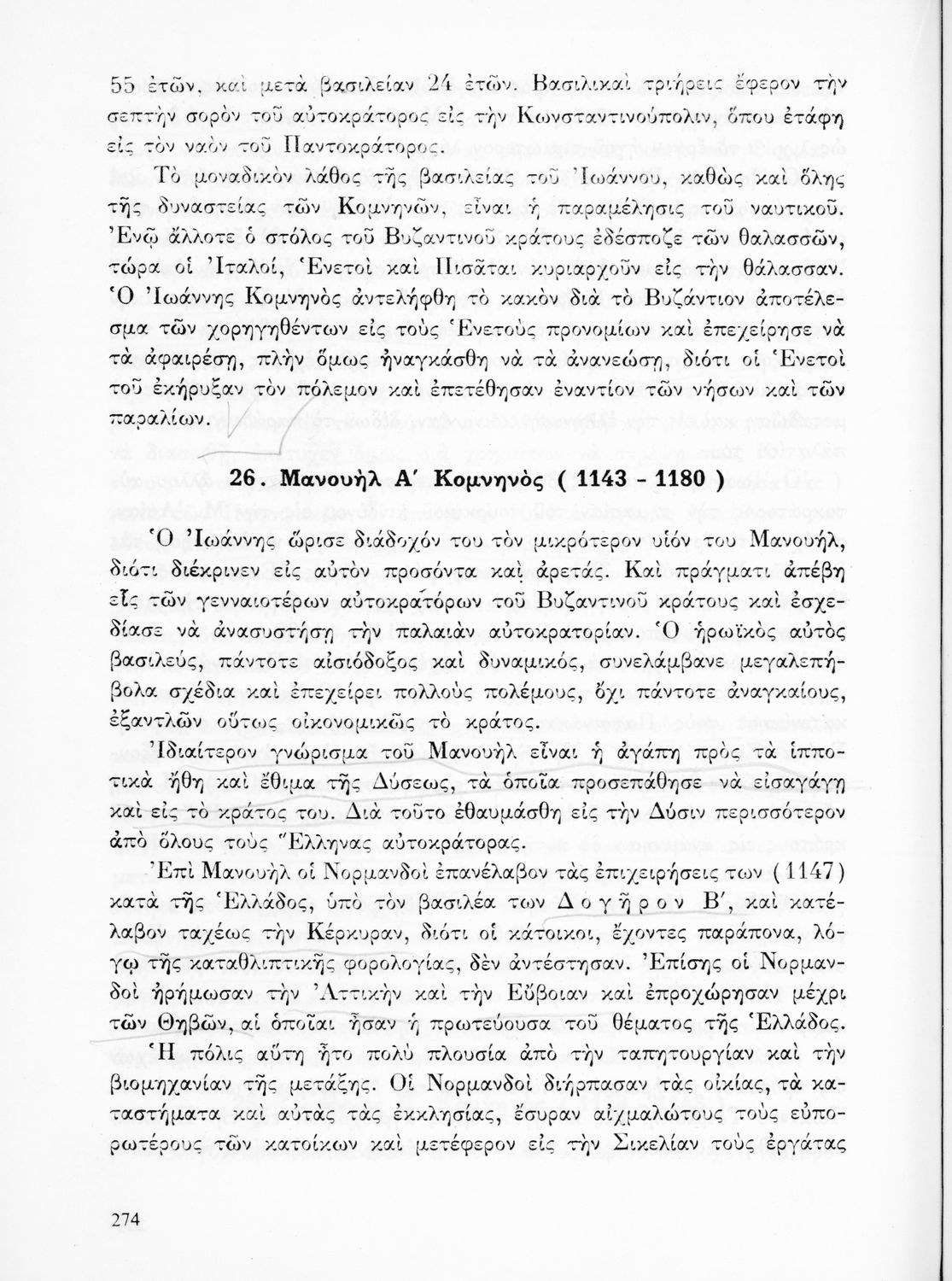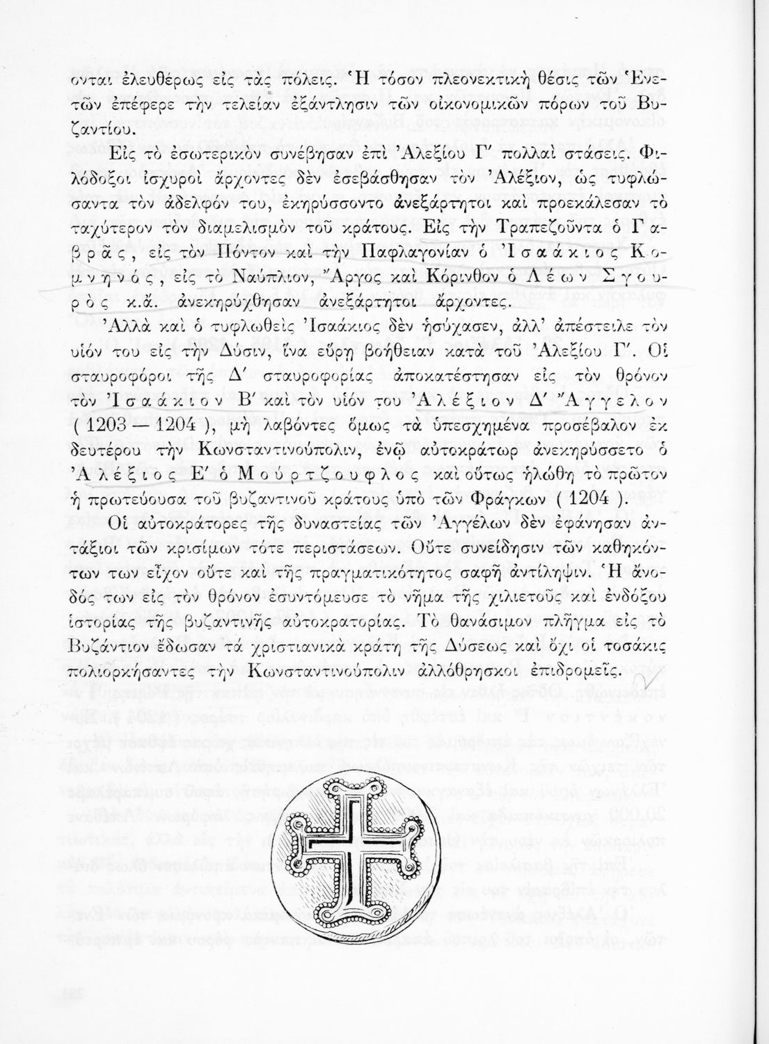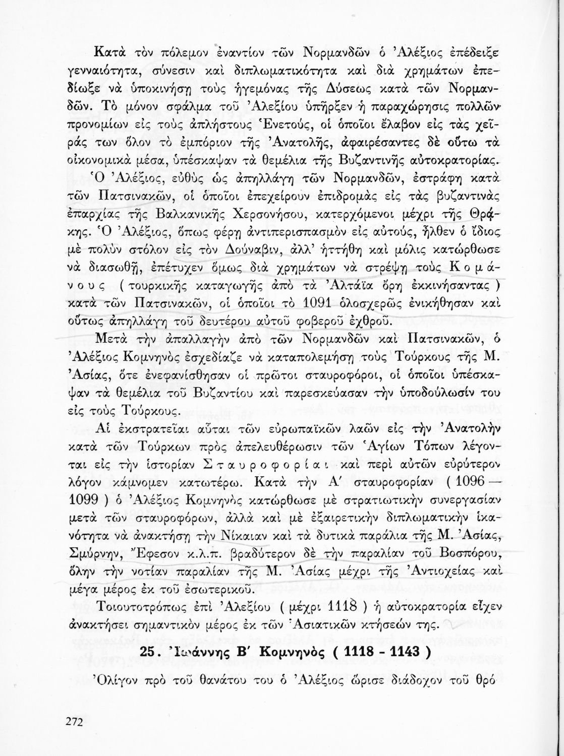 Σχολικό εγχειρίδιο Ιστορίας Β΄ και Ε΄ Γυμνασίου που καλύπτει την περίοδο από την άνοδο του Μ. Κωνσταντίνου στο θρόνο μέχρι και την άλωση της Κωνσταντινούπολης. Παρουσιάζει και τα πνευματικά και καλλιτεχνικά ρεύματα της περιόδου. Φέρει το σύμβολο της δικτατορίας.
