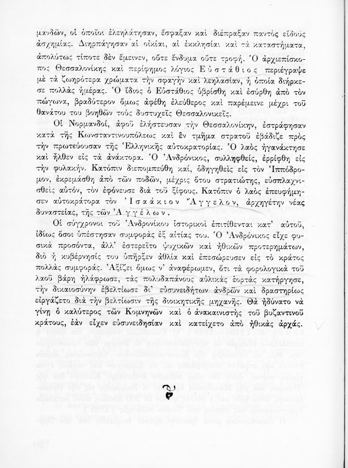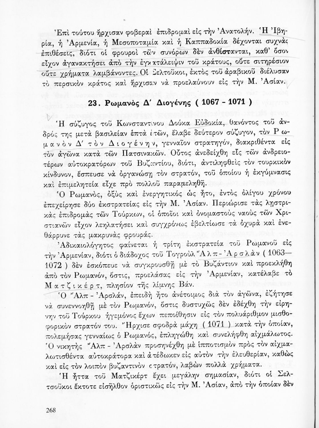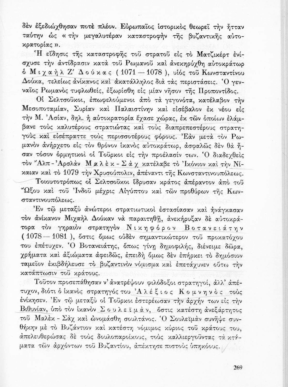 Σχολικό εγχειρίδιο Ιστορίας Β΄ και Ε΄ Γυμνασίου που καλύπτει την περίοδο από την άνοδο του Μ. Κωνσταντίνου στο θρόνο μέχρι και την άλωση της Κωνσταντινούπολης. Παρουσιάζει και τα πνευματικά και καλλιτεχνικά ρεύματα της περιόδου. Φέρει το σύμβολο της δικτατορίας.