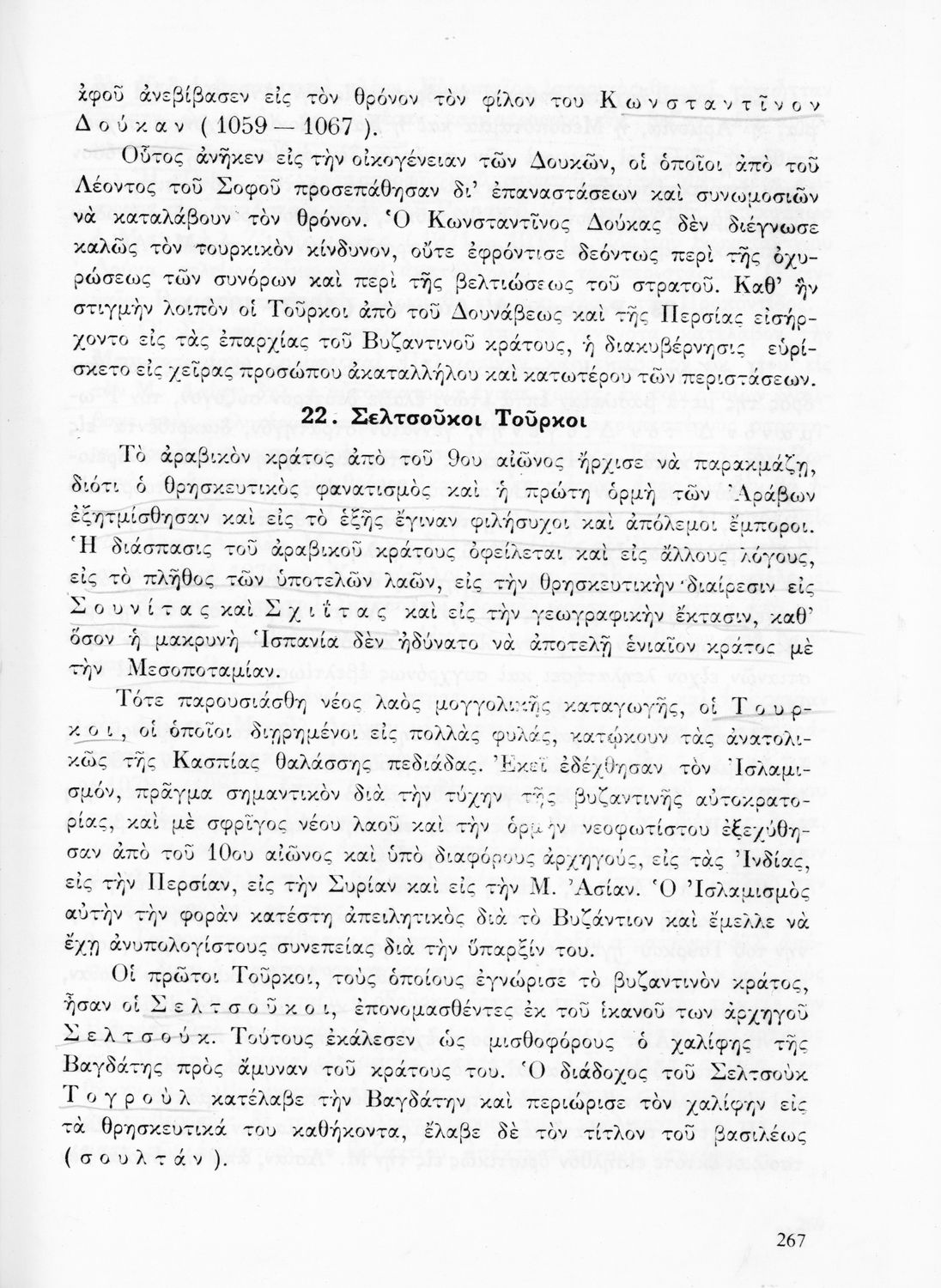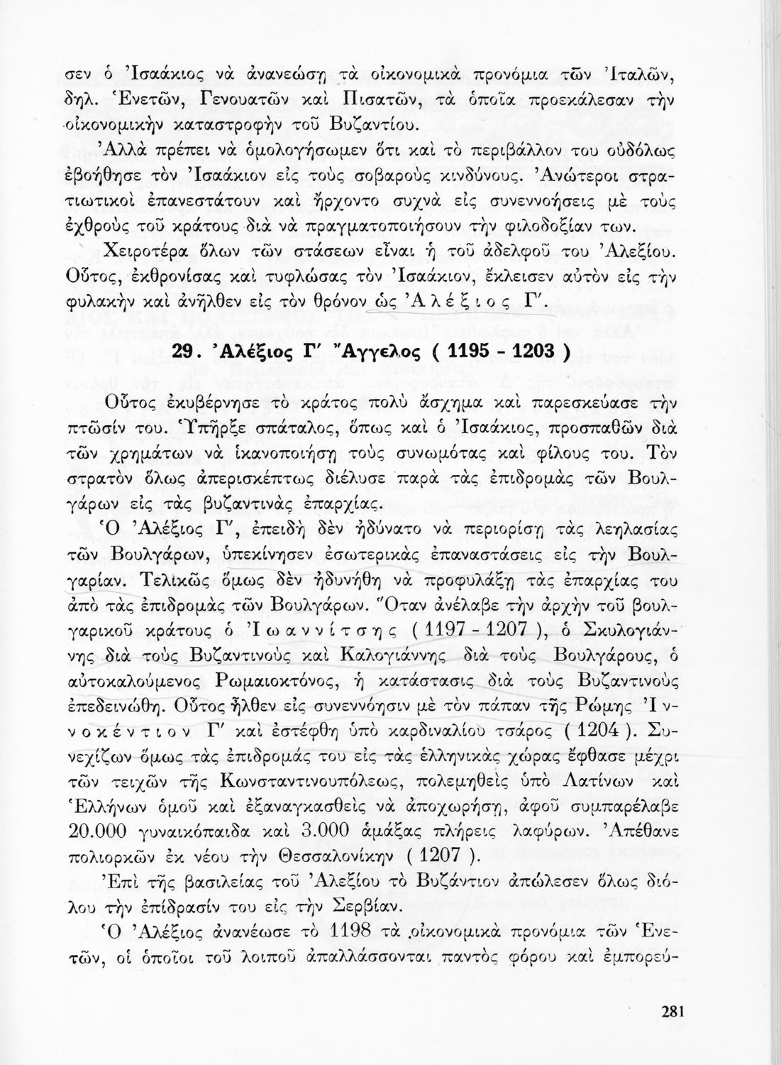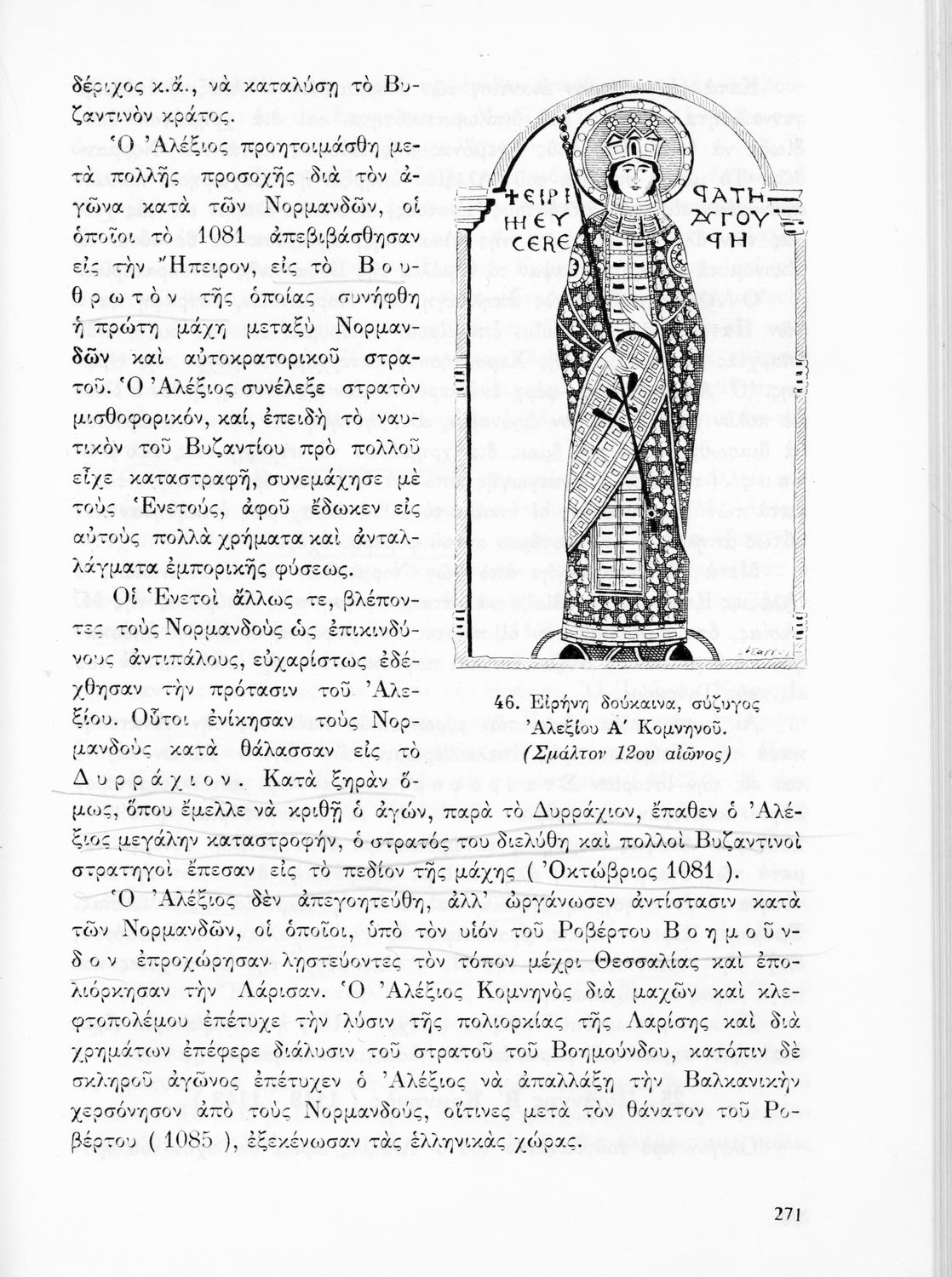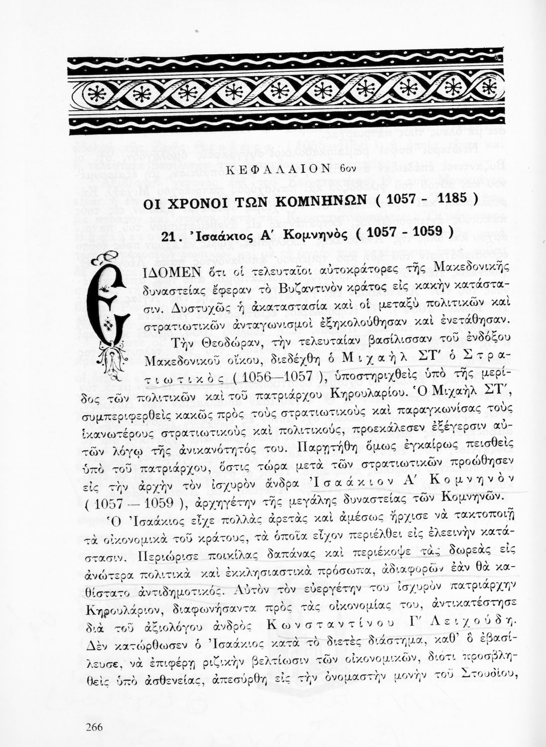 Σχολικό εγχειρίδιο Ιστορίας Β΄ και Ε΄ Γυμνασίου που καλύπτει την περίοδο από την άνοδο του Μ. Κωνσταντίνου στο θρόνο μέχρι και την άλωση της Κωνσταντινούπολης. Παρουσιάζει και τα πνευματικά και καλλιτεχνικά ρεύματα της περιόδου. Φέρει το σύμβολο της δικτατορίας.
