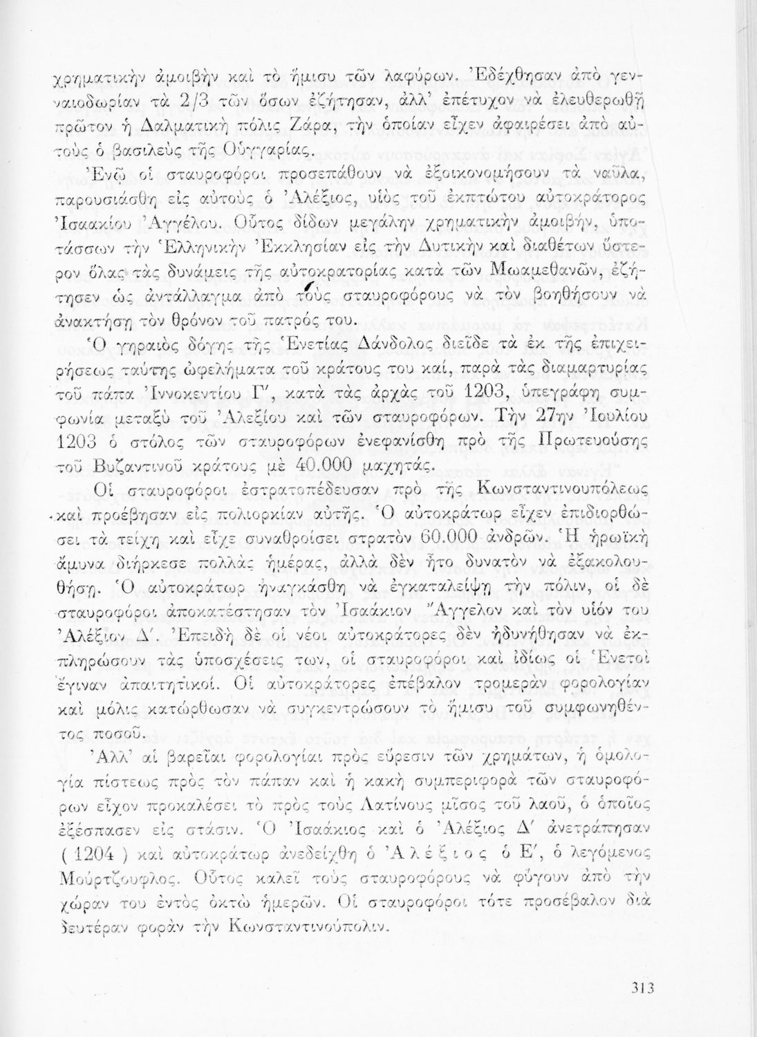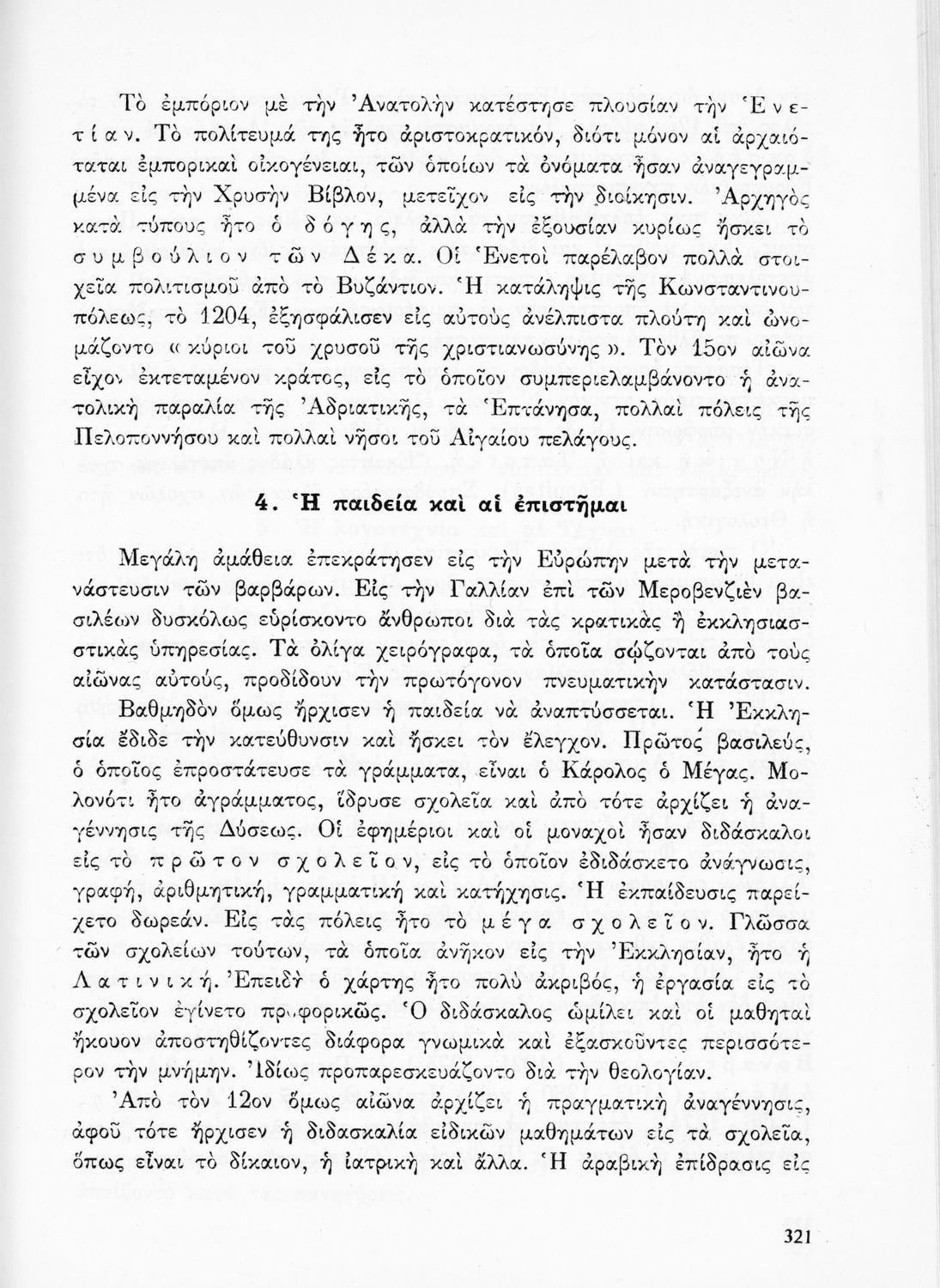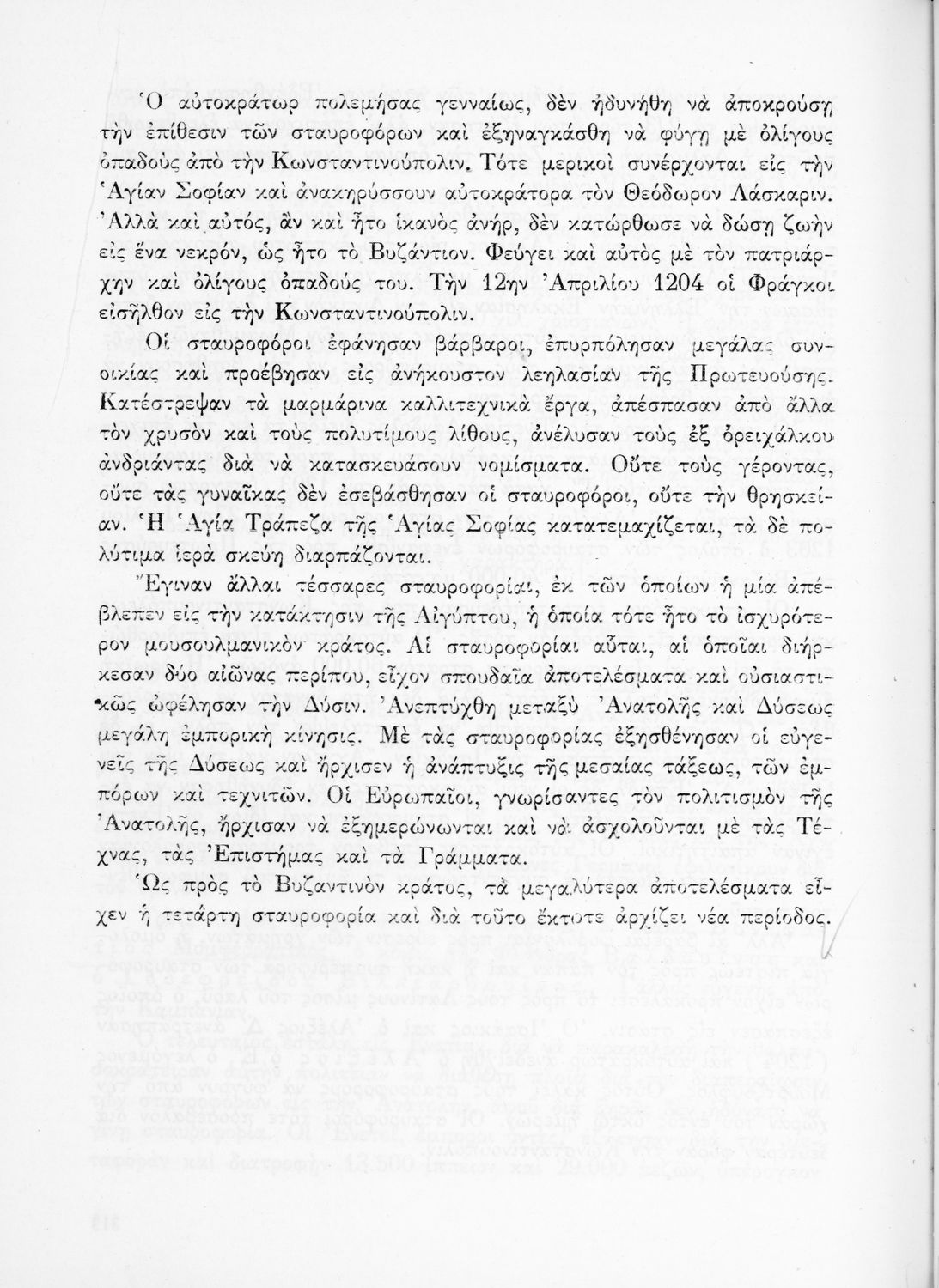 Σχολικό εγχειρίδιο Ιστορίας Β΄ και Ε΄ Γυμνασίου που καλύπτει την περίοδο από την άνοδο του Μ. Κωνσταντίνου στο θρόνο μέχρι και την άλωση της Κωνσταντινούπολης. Παρουσιάζει και τα πνευματικά και καλλιτεχνικά ρεύματα της περιόδου. Φέρει το σύμβολο της δικτατορίας.
