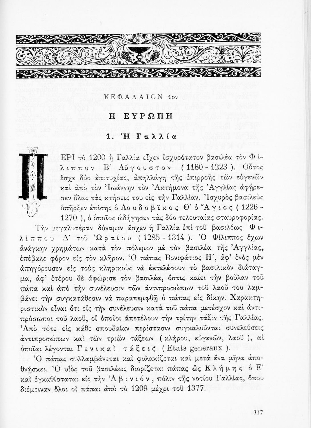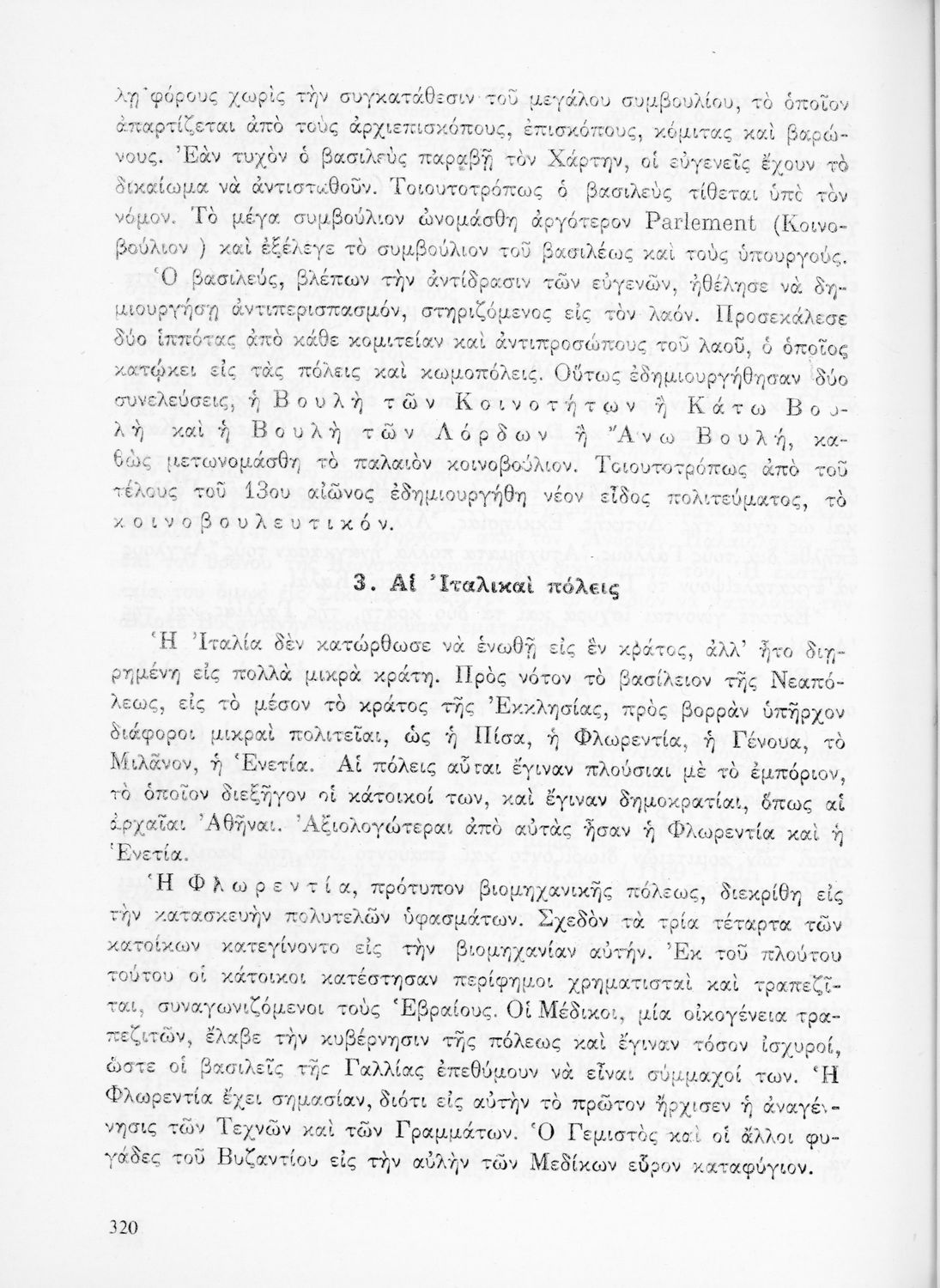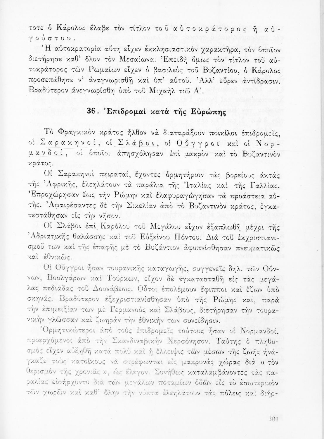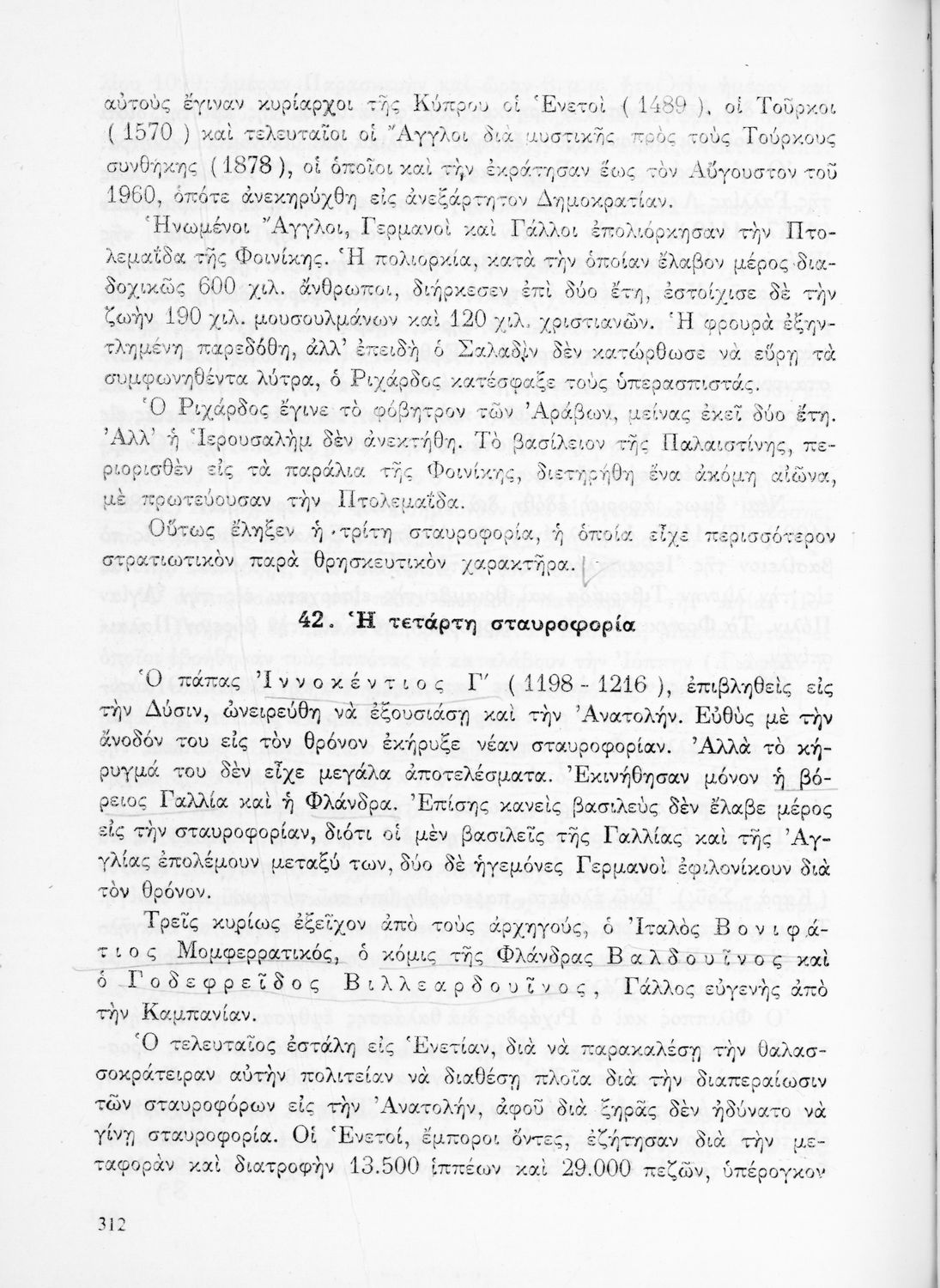 Σχολικό εγχειρίδιο Ιστορίας Β΄ και Ε΄ Γυμνασίου που καλύπτει την περίοδο από την άνοδο του Μ. Κωνσταντίνου στο θρόνο μέχρι και την άλωση της Κωνσταντινούπολης. Παρουσιάζει και τα πνευματικά και καλλιτεχνικά ρεύματα της περιόδου. Φέρει το σύμβολο της δικτατορίας.