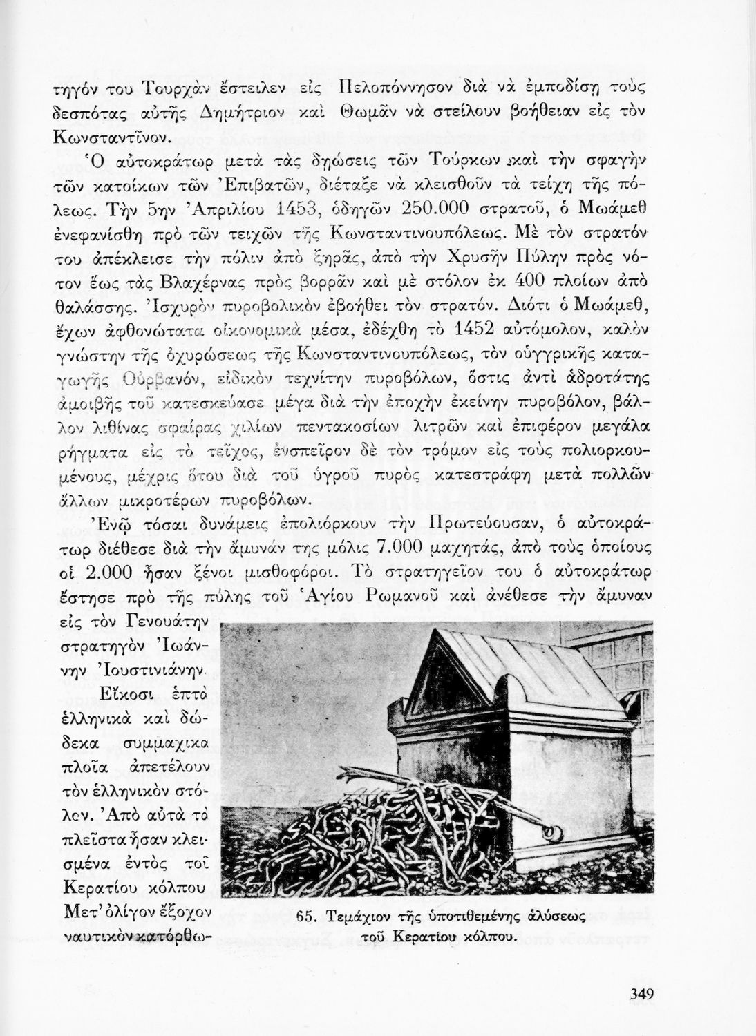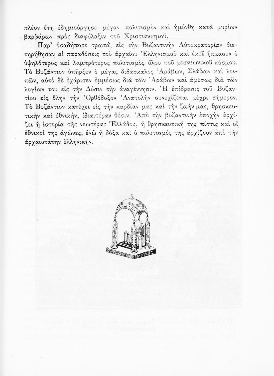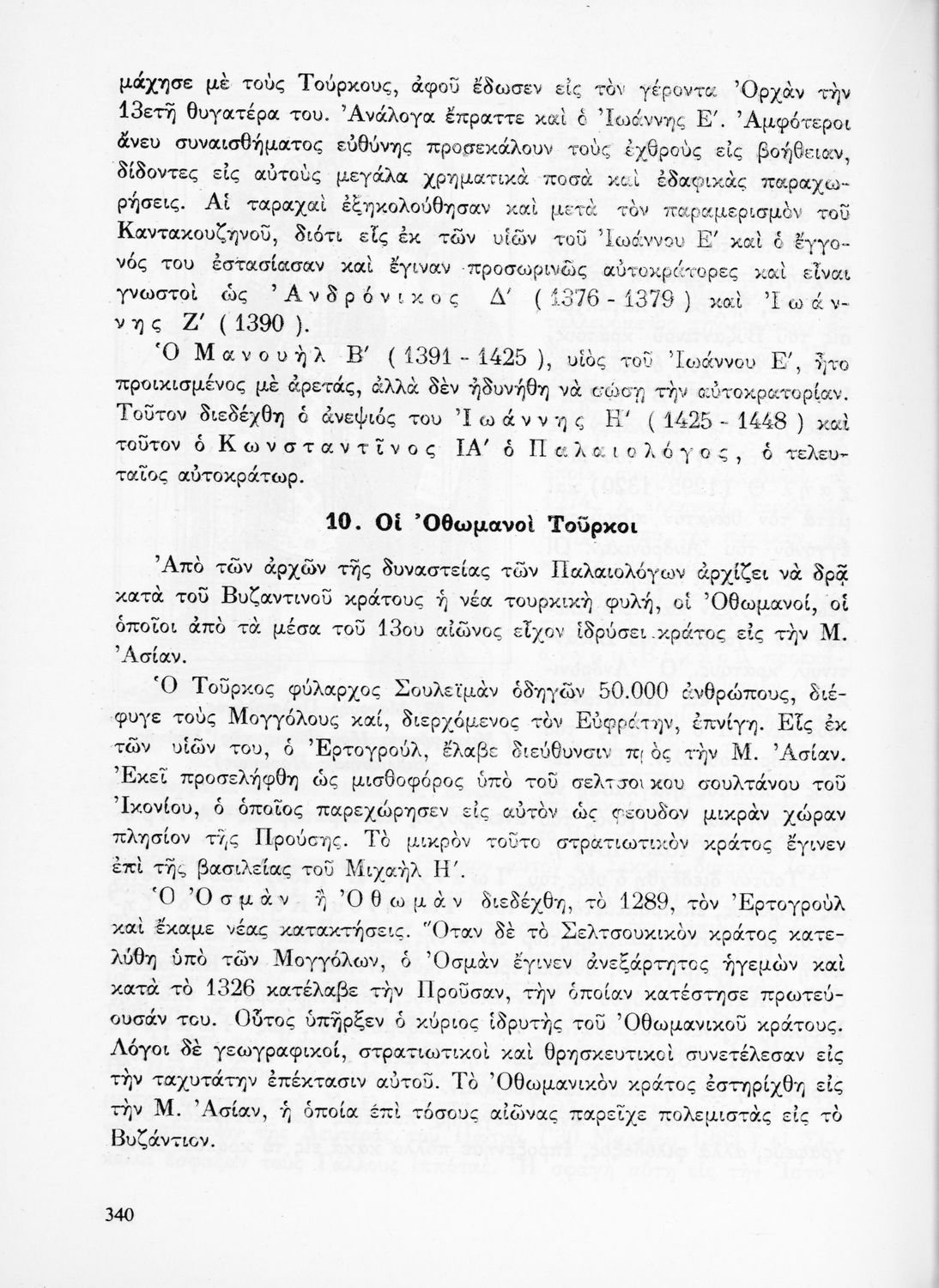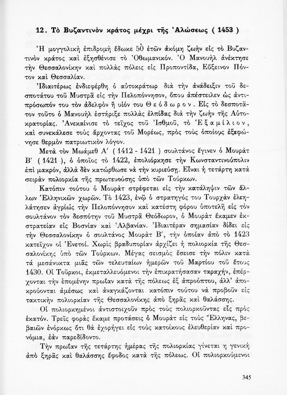Σχολικό εγχειρίδιο Ιστορίας Β΄ και Ε΄ Γυμνασίου που καλύπτει την περίοδο από την άνοδο του Μ. Κωνσταντίνου στο θρόνο μέχρι και την άλωση της Κωνσταντινούπολης. Παρουσιάζει και τα πνευματικά και καλλιτεχνικά ρεύματα της περιόδου. Φέρει το σύμβολο της δικτατορίας.