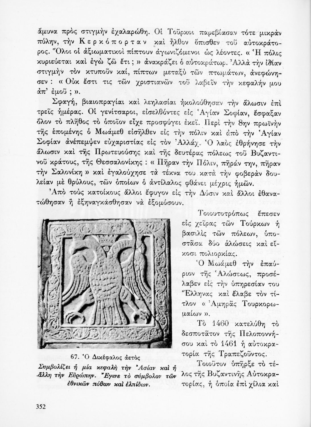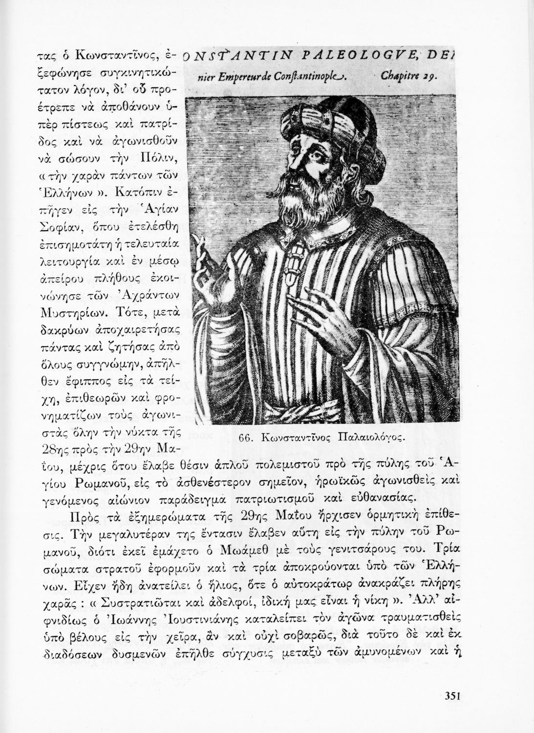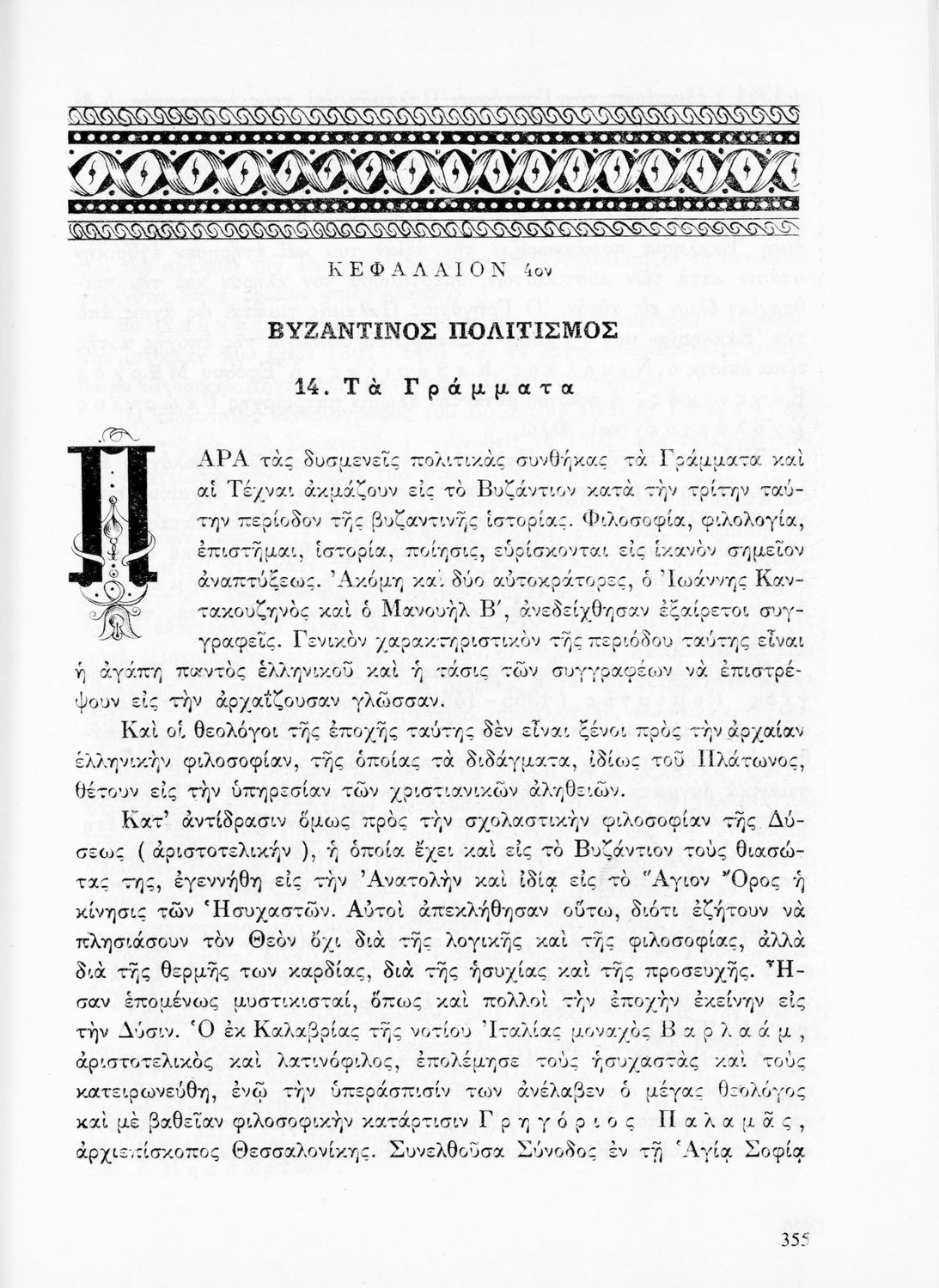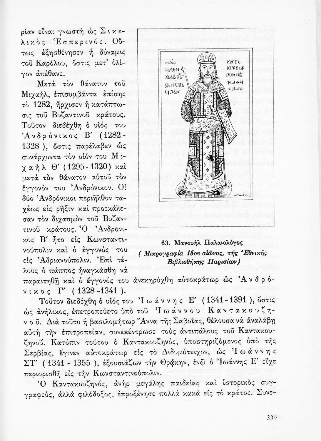 Σχολικό εγχειρίδιο Ιστορίας Β΄ και Ε΄ Γυμνασίου που καλύπτει την περίοδο από την άνοδο του Μ. Κωνσταντίνου στο θρόνο μέχρι και την άλωση της Κωνσταντινούπολης. Παρουσιάζει και τα πνευματικά και καλλιτεχνικά ρεύματα της περιόδου. Φέρει το σύμβολο της δικτατορίας.