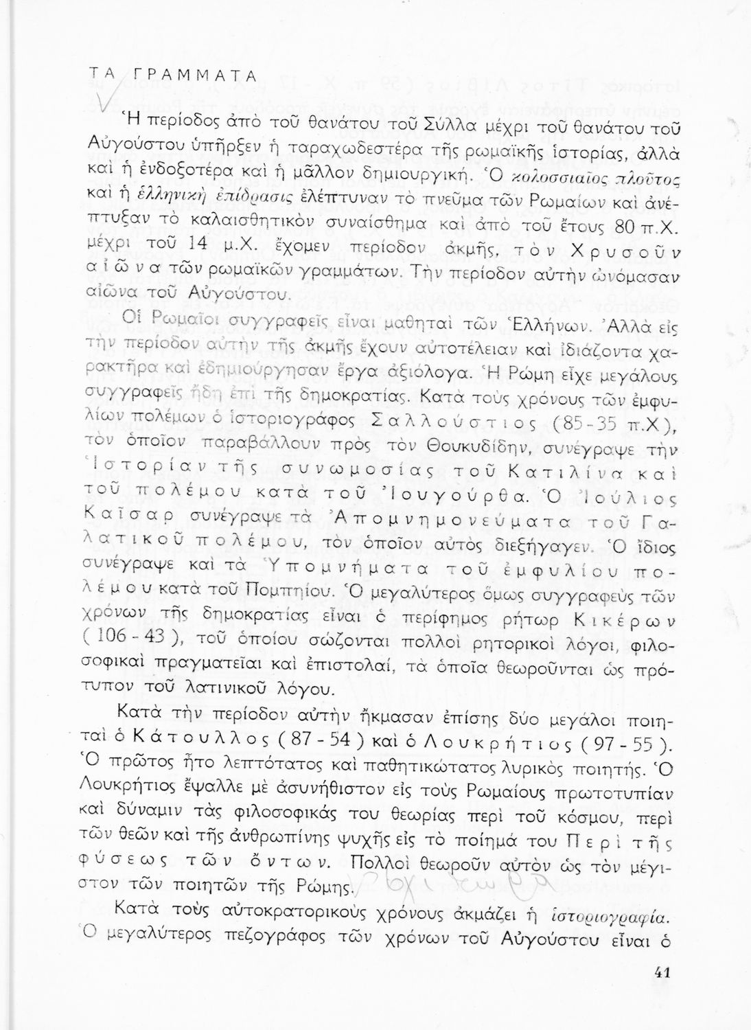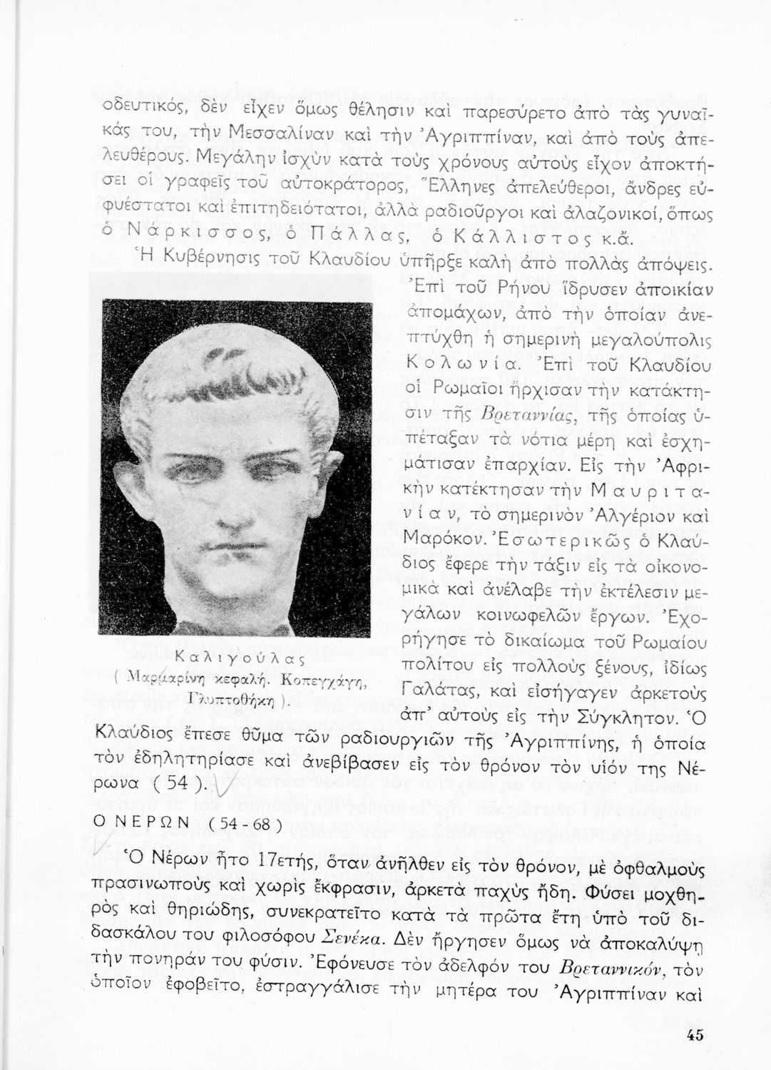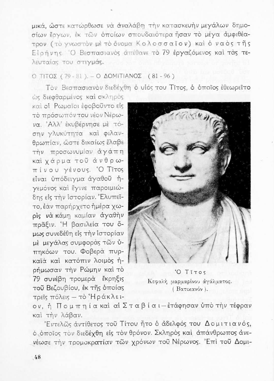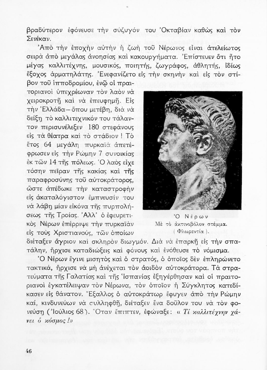 Σχολικό εγχειρίδιο Ιστορίας Β΄ και Ε΄ Γυμνασίου που καλύπτει την περίοδο από την άνοδο του Μ. Κωνσταντίνου στο θρόνο μέχρι και την άλωση της Κωνσταντινούπολης. Παρουσιάζει και τα πνευματικά και καλλιτεχνικά ρεύματα της περιόδου. Φέρει το σύμβολο της δικτατορίας.
