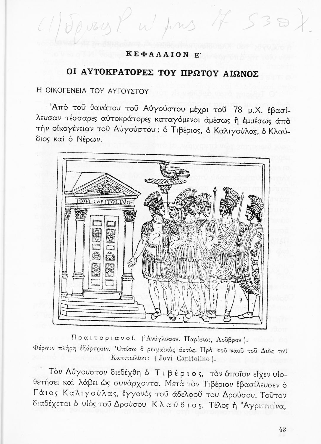 Βαθμίδα εκπαίδευσης: Δευτεροβάθμια Τάξη: Β' Γυμνασίου / Ε' Γυμνασίου Μάθημα: Ιστορία Γλώσσα: Απλή καθαρεύουσα Παρουσίαση περιεχομένου: Σχολικό εγχειρίδιο Ιστορίας Β΄ και Ε΄ Γυμνασίου που καλύπτει την περίοδο από την άνοδο του Μ. Κωνσταντίνου στο θρόνο μέχρι και την άλωση της Κωνσταντινούπολης. Παρουσιάζει και τα πνευματικά και καλλιτεχνικά ρεύματα της περιόδου. Φέρει το σύμβολο της δικτατορίας. |