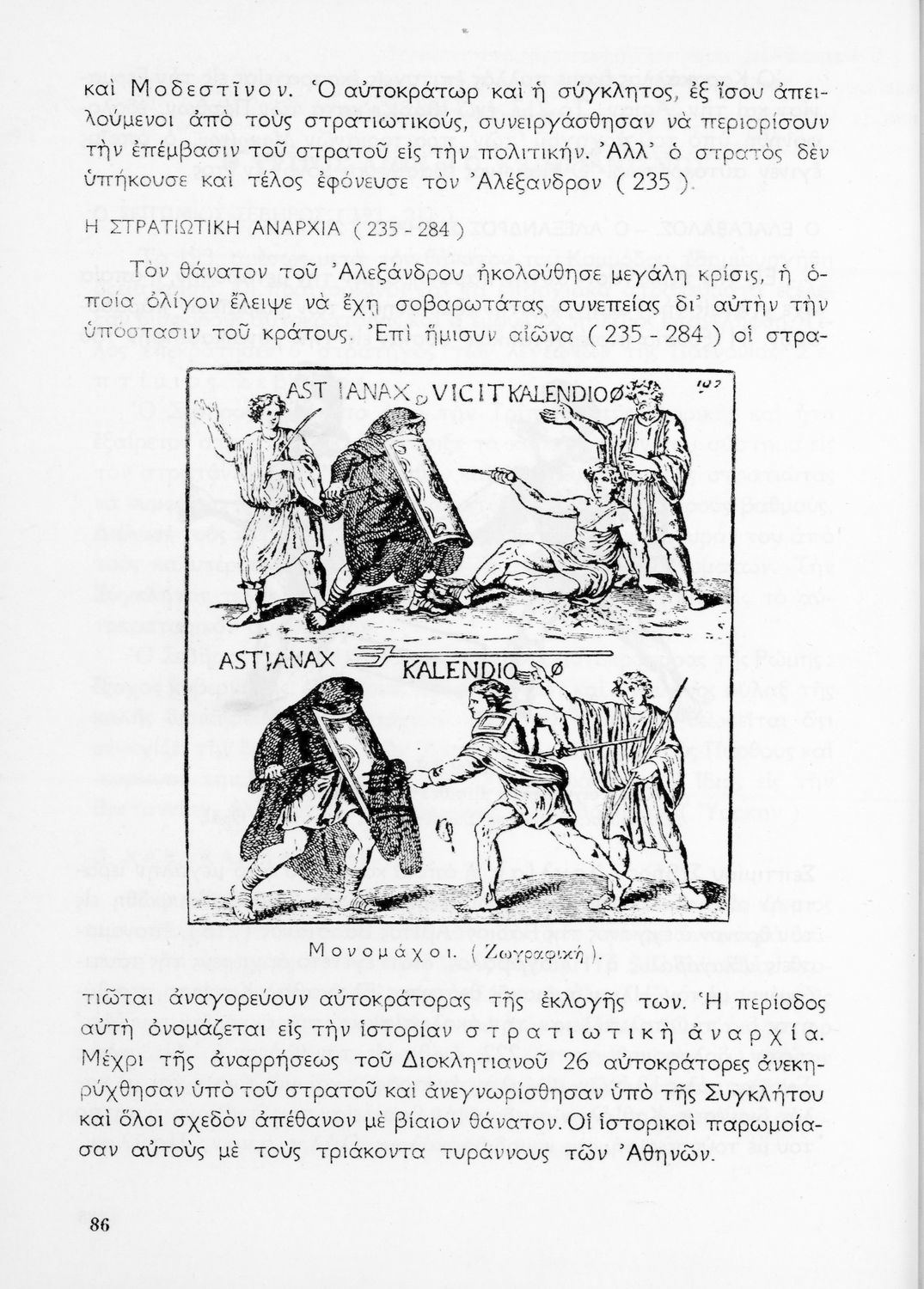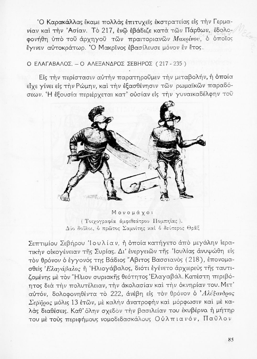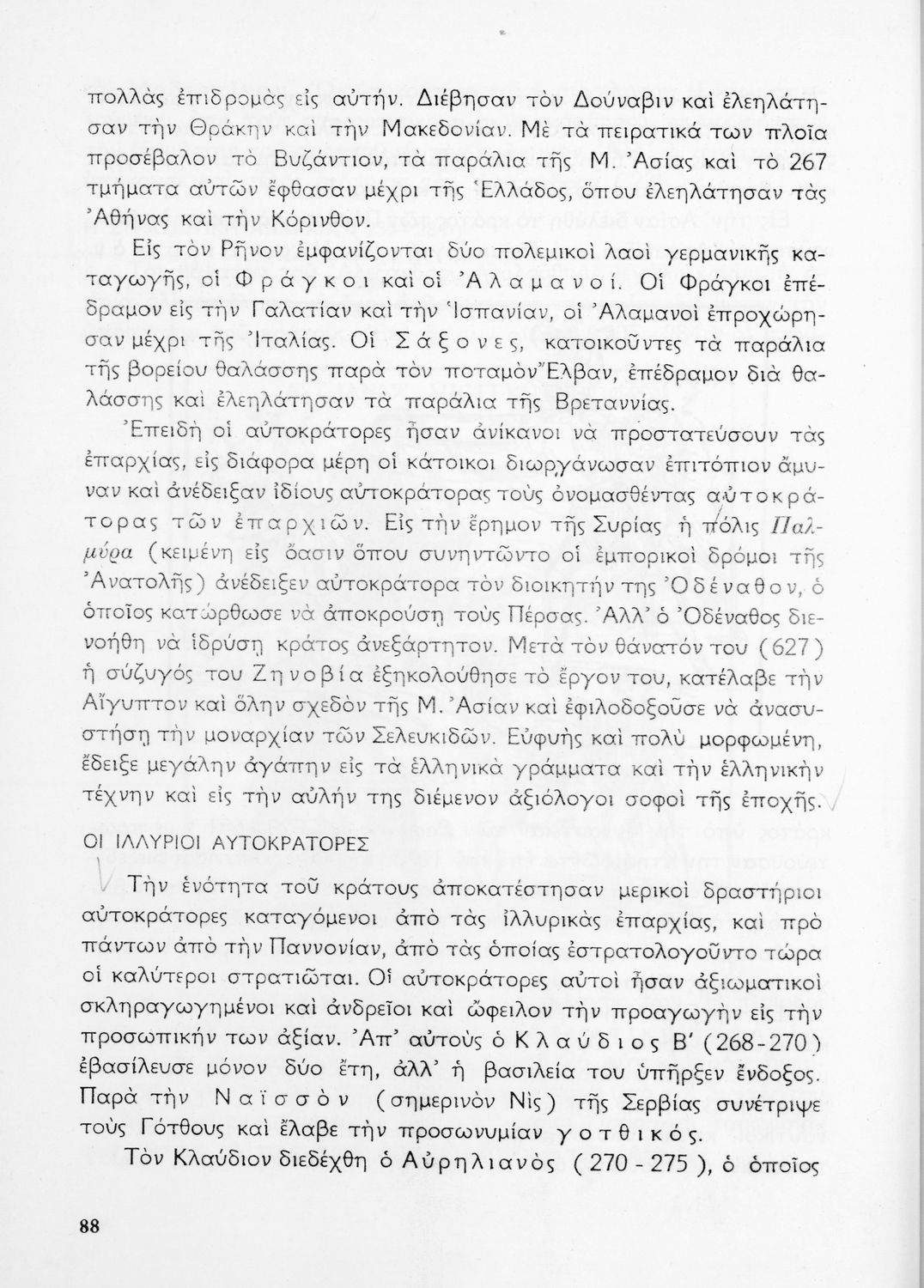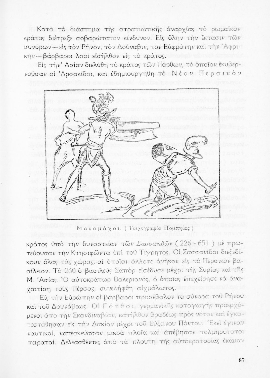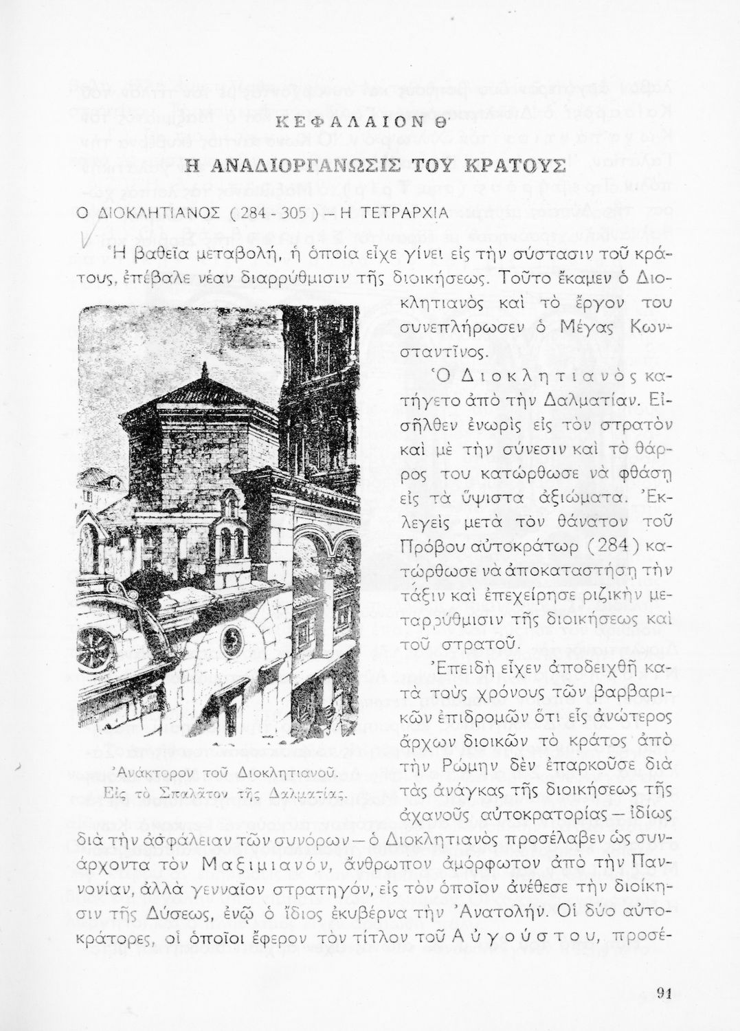 Σχολικό εγχειρίδιο Ιστορίας Β΄ και Ε΄ Γυμνασίου που καλύπτει την περίοδο από την άνοδο του Μ. Κωνσταντίνου στο θρόνο μέχρι και την άλωση της Κωνσταντινούπολης. Παρουσιάζει και τα πνευματικά και καλλιτεχνικά ρεύματα της περιόδου. Φέρει το σύμβολο της δικτατορίας.