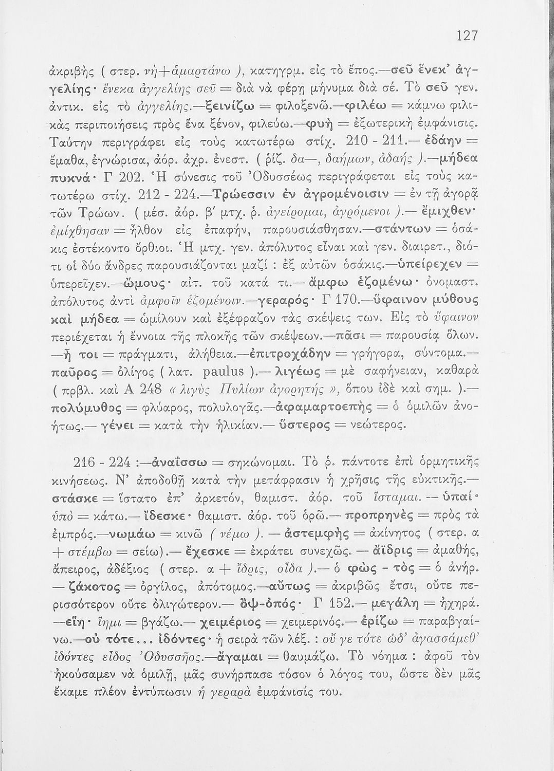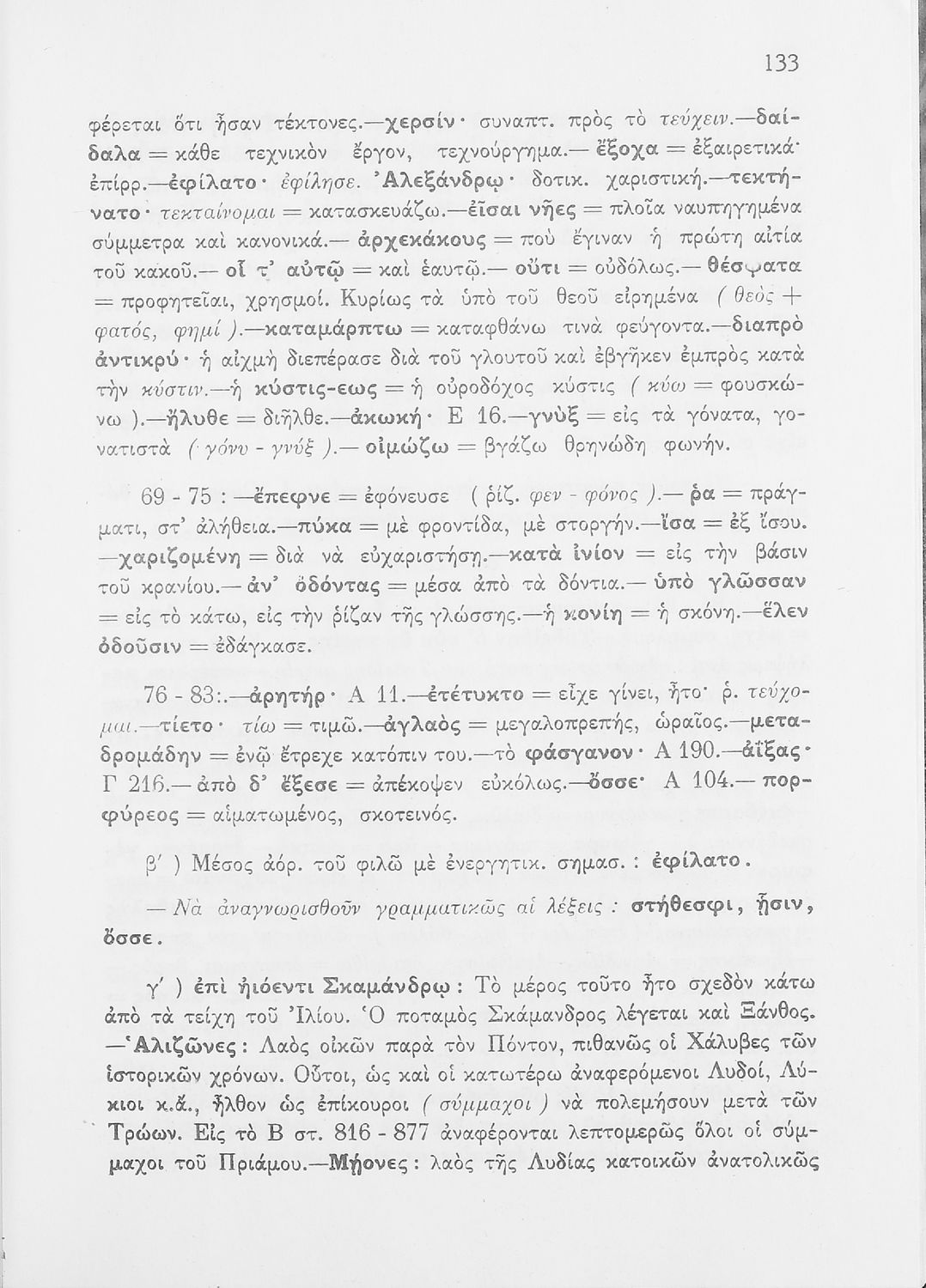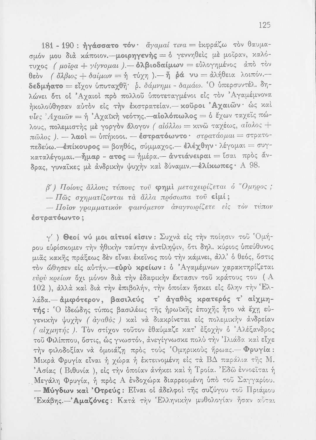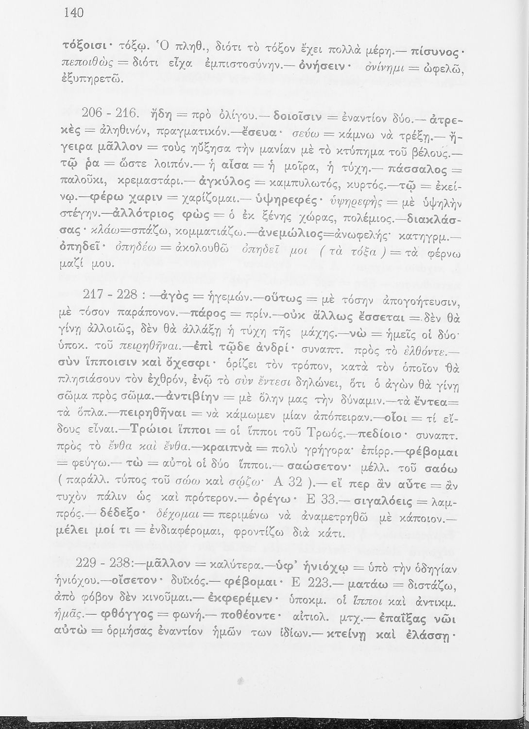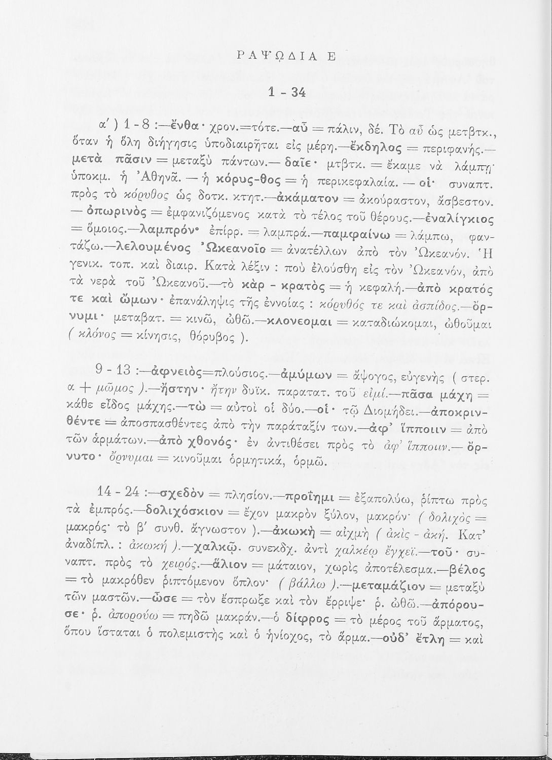 Μαθητικό βοήθημα του Ελληνικού Σχολείου, των Παρθεναγωγείων και του Γυμνασίου για το μάθημα των Αρχαίων Ελληνικών. Περιέχει τις ραψωδίες Ο, Π, Ρ, Σ, Τ, Χ, ψ, Ω από το πρωτότυπο με σχόλια και ερμηνευτικές ...