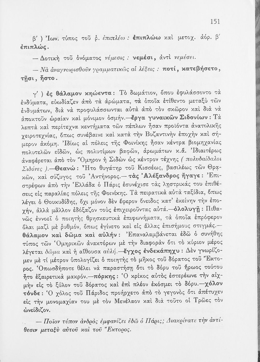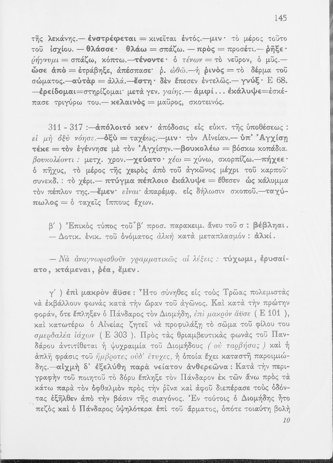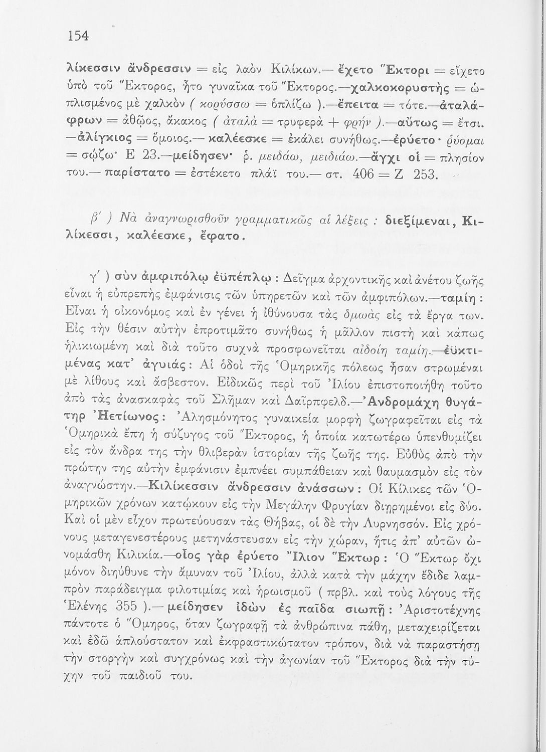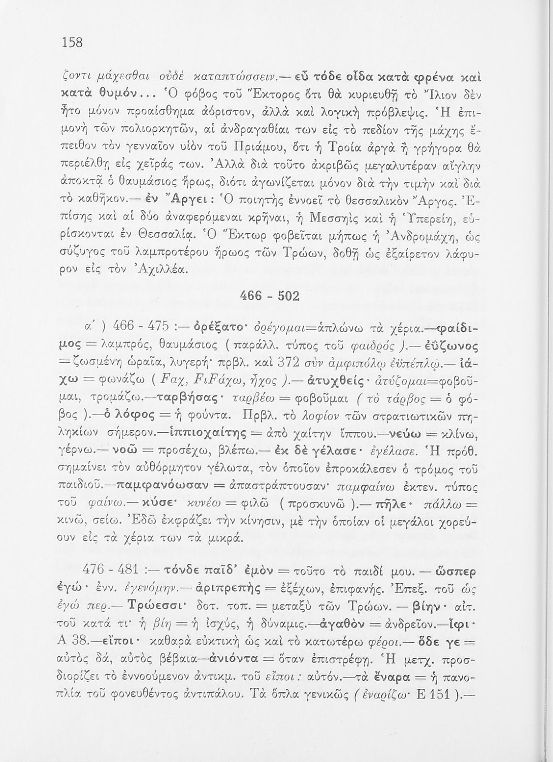 Μαθητικό βοήθημα του Ελληνικού Σχολείου, των Παρθεναγωγείων και του Γυμνασίου για το μάθημα των Αρχαίων Ελληνικών. Περιέχει τις ραψωδίες Ο, Π, Ρ, Σ, Τ, Χ, ψ, Ω από το πρωτότυπο με σχόλια και ερμηνευτικές ...