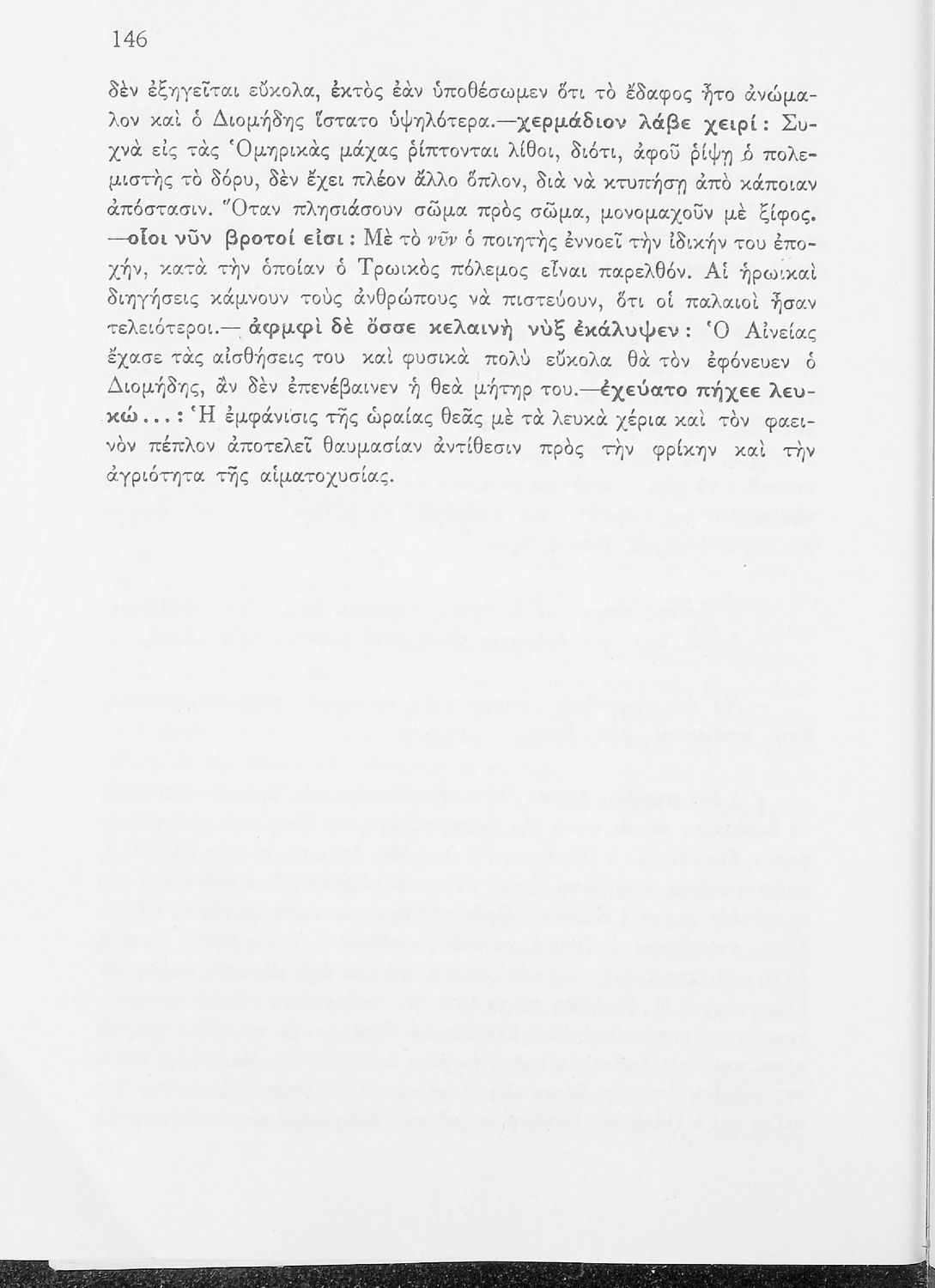 Σχολικό εγχειρίδιο Αρχαίων Ελληνικών. Το βιβλίο περιέχει εισαγωγικό σημείωμα σχετικά με το περιεχόμενο της Ιλιάδας του Ομήρου και την εποχή στην οποία αναφέρεται ο μύθος. Σε πρωτότυπο κείμενο περιλαμβάνονται αποσπάσματα από τις Ραψωδίες της Ιλιάδας Α, Γ, Ε, Ζ, Ι, Ω. Περιλαμβάνονται, ακόμα, ερμηνευτικές σημειώσεις (σημασιολογικές, γραμματικές, πραγματολογικές) και παράρτημα εικόνων και χαρτών.