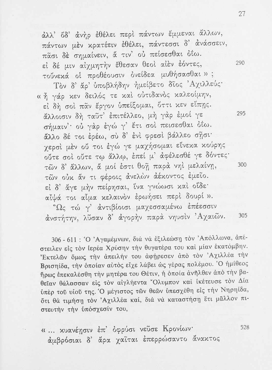 Μαθητικό βοήθημα του Ελληνικού Σχολείου, των Παρθεναγωγείων και του Γυμνασίου για το μάθημα των Αρχαίων Ελληνικών. Περιέχει τις ραψωδίες Ο, Π, Ρ, Σ, Τ, Χ, ψ, Ω από το πρωτότυπο με σχόλια και ερμηνευτικές ...