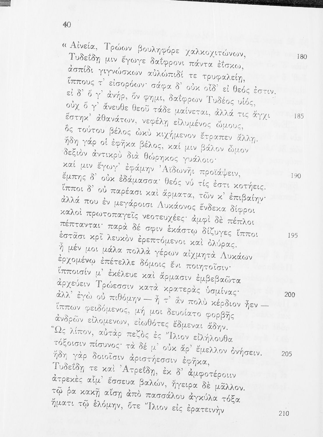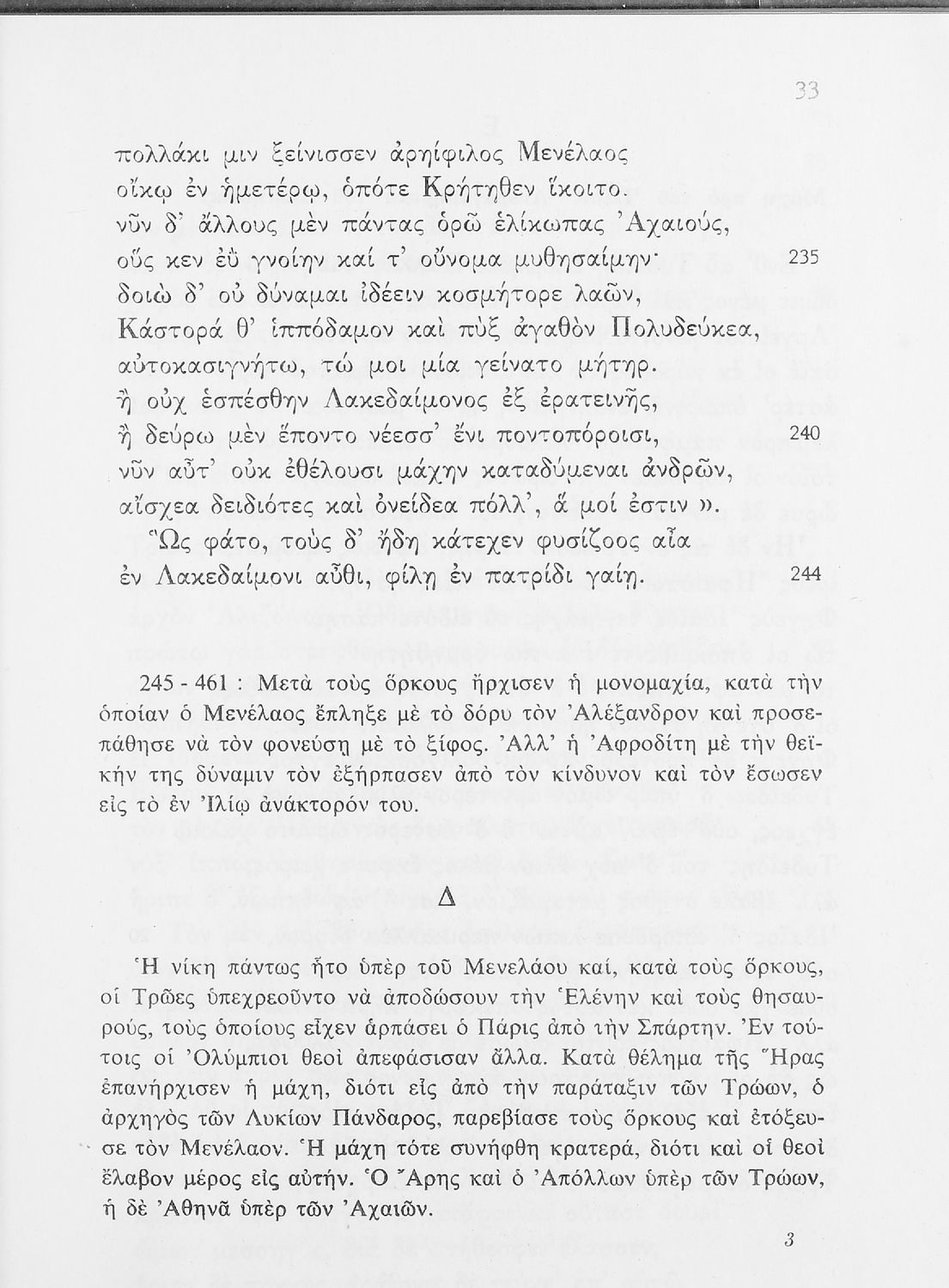 Σχολικό εγχειρίδιο Αρχαίων Ελληνικών. Το βιβλίο περιέχει εισαγωγικό σημείωμα σχετικά με το περιεχόμενο της Ιλιάδας του Ομήρου και την εποχή στην οποία αναφέρεται ο μύθος. Σε πρωτότυπο κείμενο περιλαμβάνονται αποσπάσματα από τις Ραψωδίες της Ιλιάδας Α, Γ, Ε, Ζ, Ι, Ω. Περιλαμβάνονται, ακόμα, ερμηνευτικές σημειώσεις (σημασιολογικές, γραμματικές, πραγματολογικές) και παράρτημα εικόνων και χαρτών.