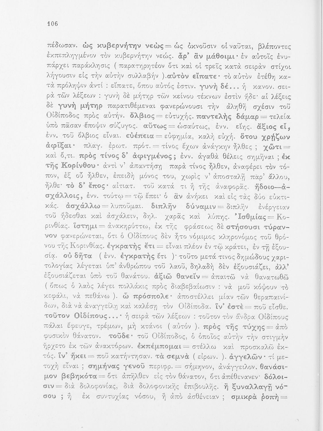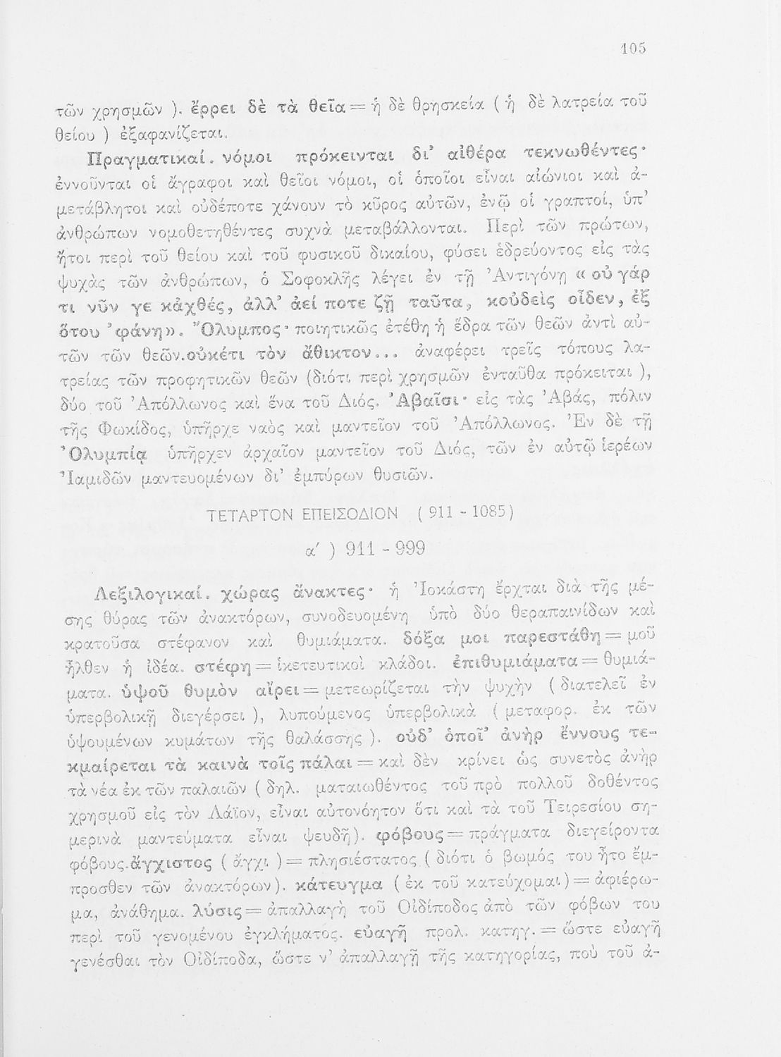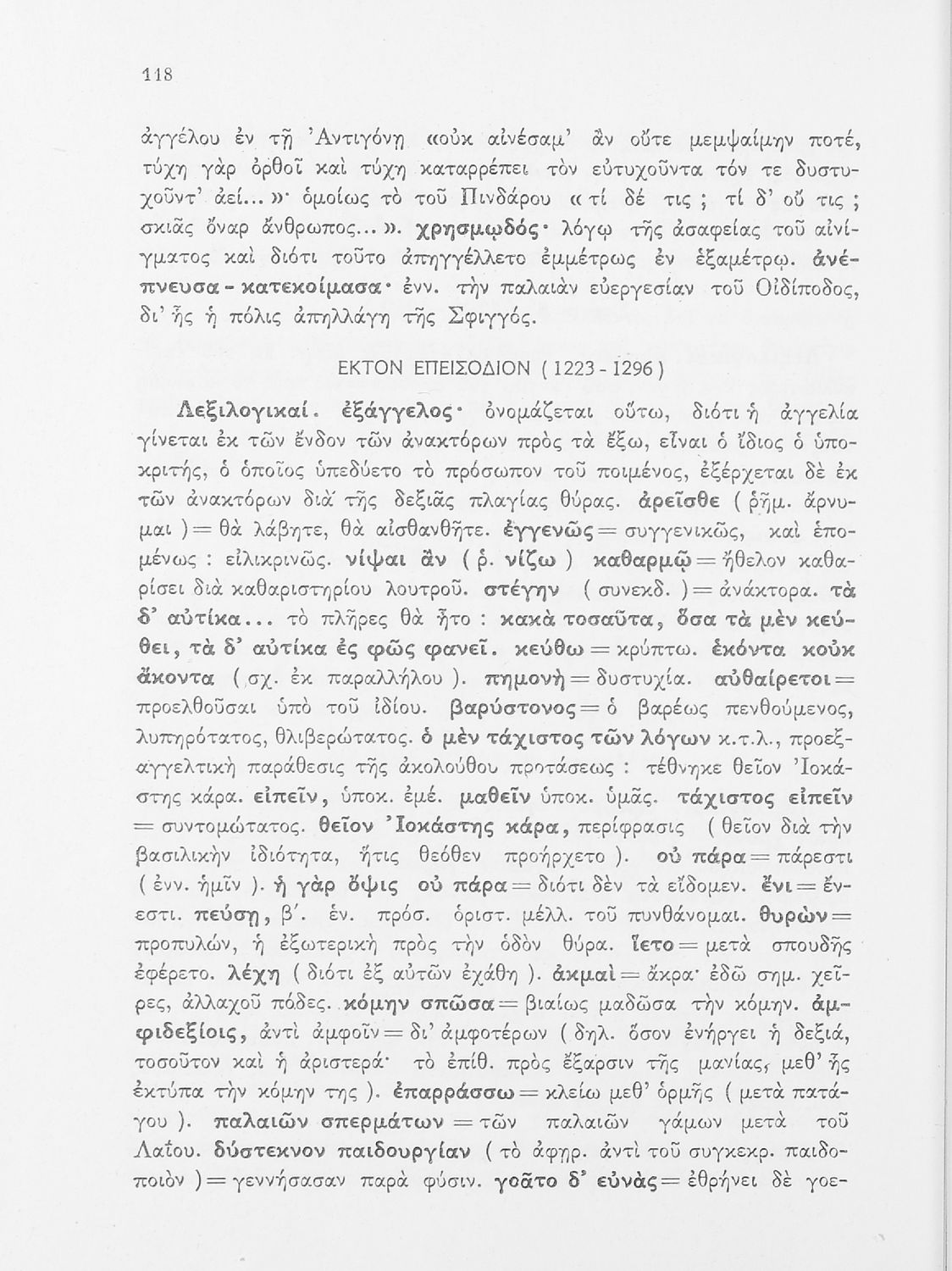 Σχολικό εγχειρίδιο της ΣΤ΄ Γυμνασίου για το μάθημα των Αρχαίων Ελληνικών. Περιέχει τις τραγωδίες του Σοφοκλή Οιδίπους Τύραννος και Αντιγόνη. Τα κείμενα συνοδεύονται από ερμηνευτικές και λεξιλογικές παρατηρήσεις. Φέρει το σύμβολο της δικτατορίας.