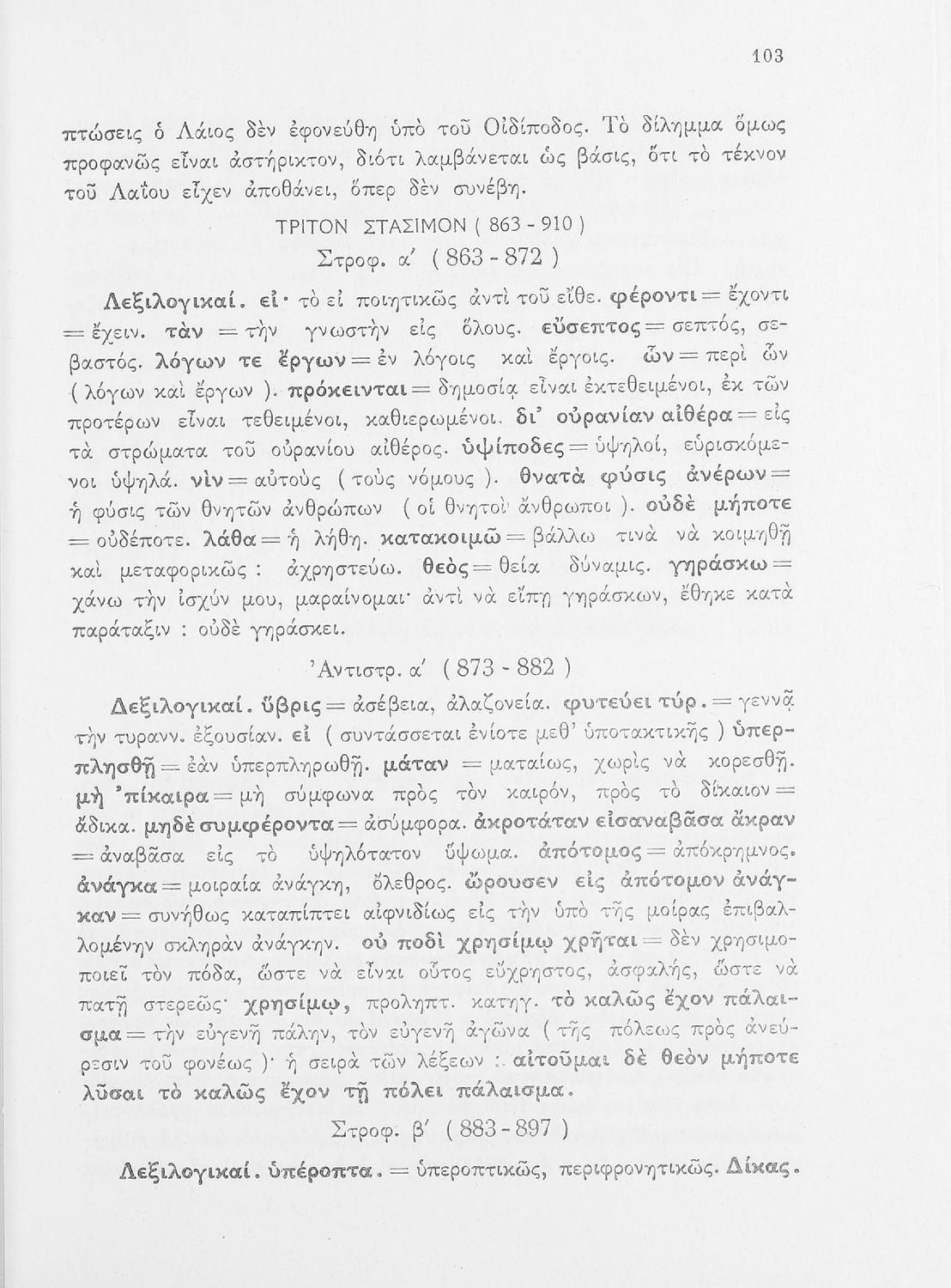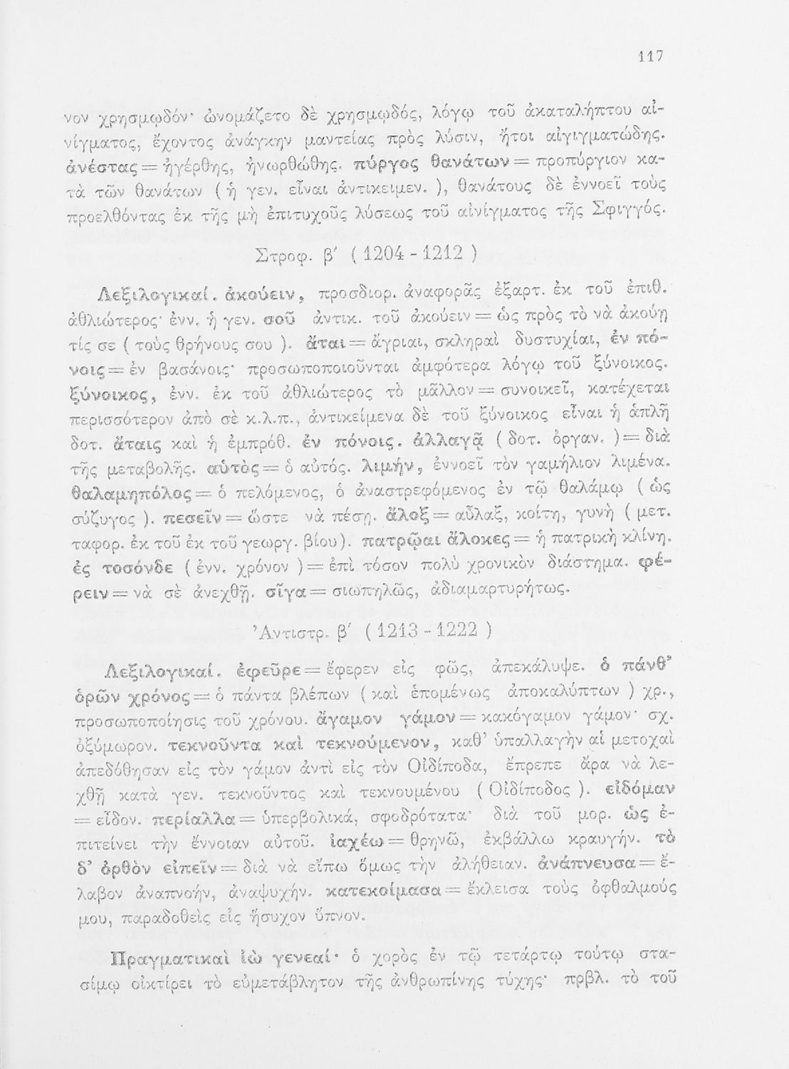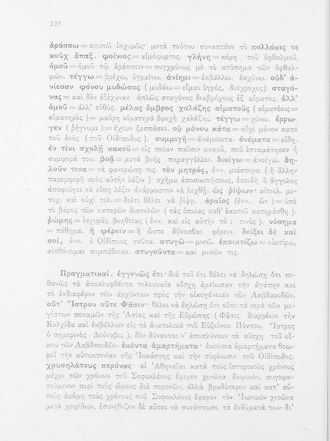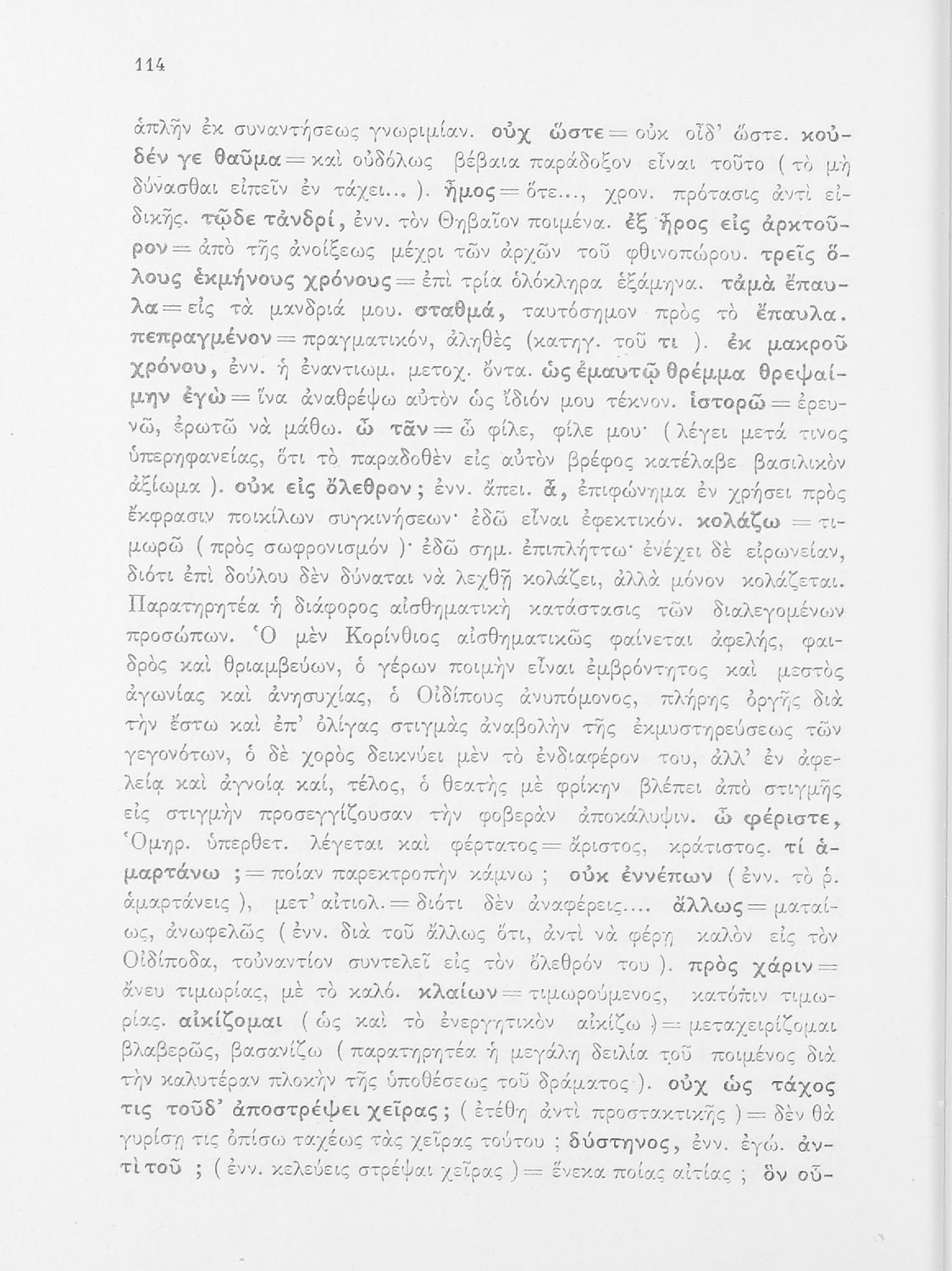 Σχολικό εγχειρίδιο της ΣΤ΄ Γυμνασίου για το μάθημα των Αρχαίων Ελληνικών. Περιέχει τις τραγωδίες του Σοφοκλή Οιδίπους Τύραννος και Αντιγόνη. Τα κείμενα συνοδεύονται από ερμηνευτικές και λεξιλογικές παρατηρήσεις. Φέρει το σύμβολο της δικτατορίας.