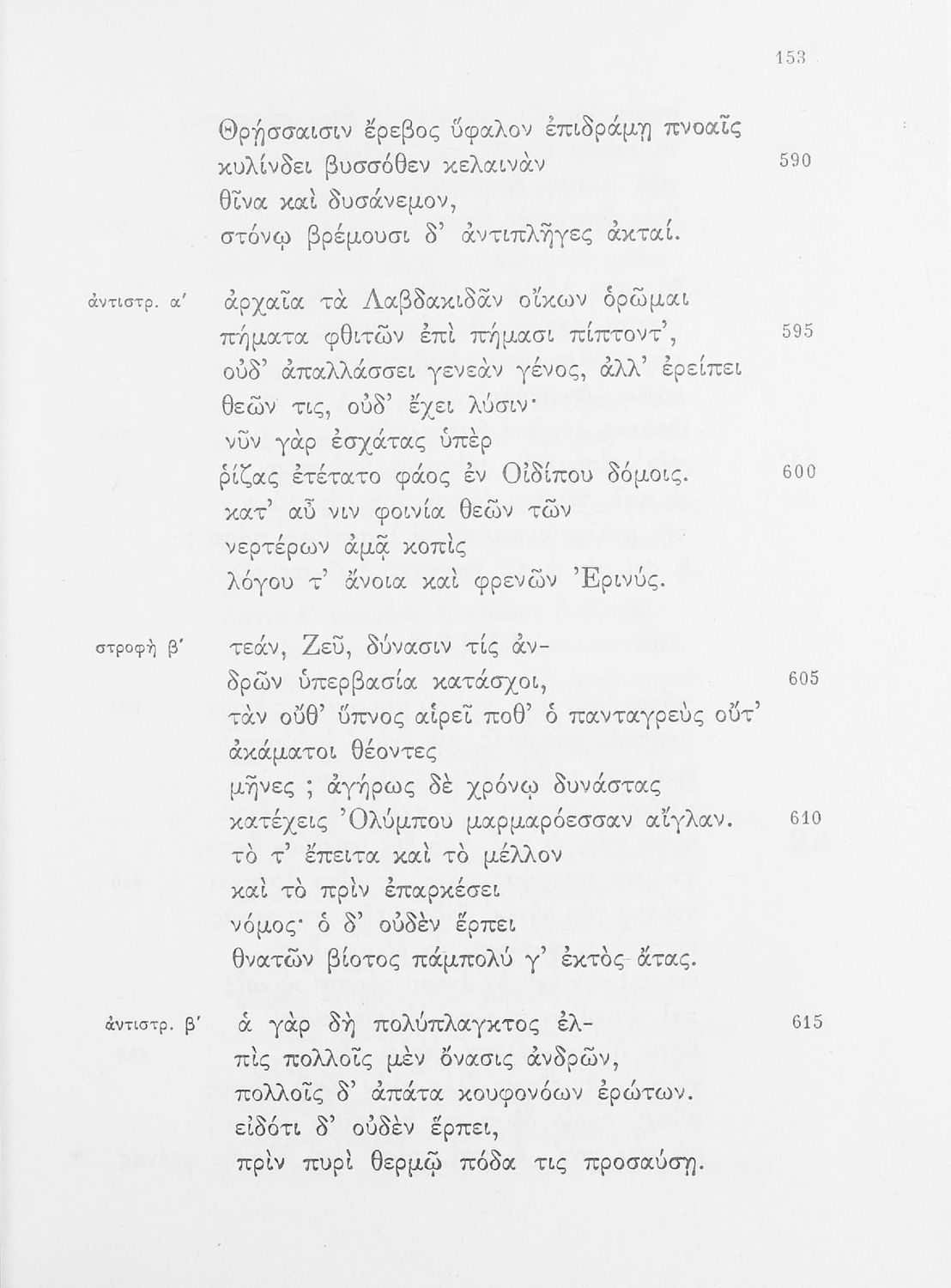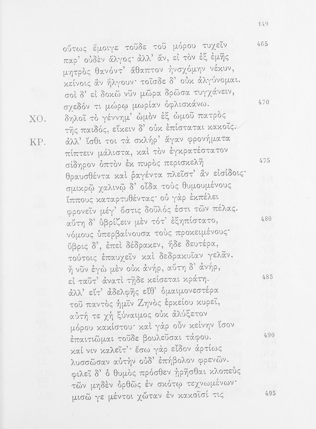 Σχολικό εγχειρίδιο της ΣΤ΄ Γυμνασίου για το μάθημα των Αρχαίων Ελληνικών. Περιέχει τις τραγωδίες του Σοφοκλή Οιδίπους Τύραννος και Αντιγόνη. Τα κείμενα συνοδεύονται από ερμηνευτικές και λεξιλογικές παρατηρήσεις. Φέρει το σύμβολο της δικτατορίας.