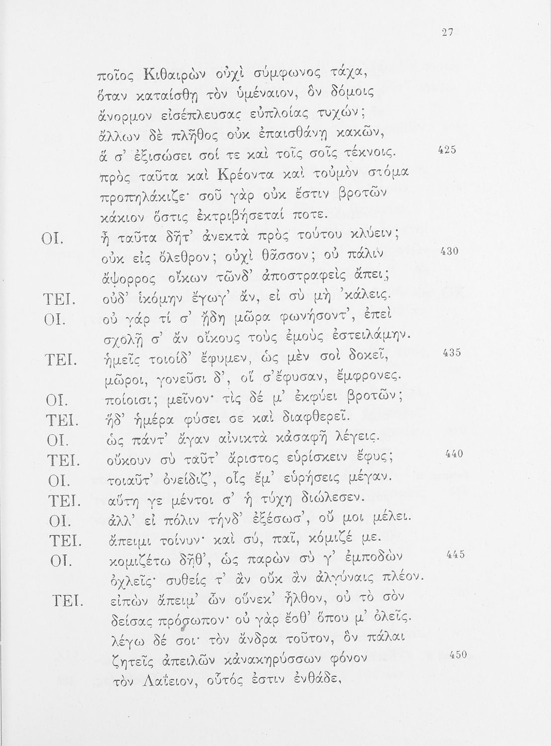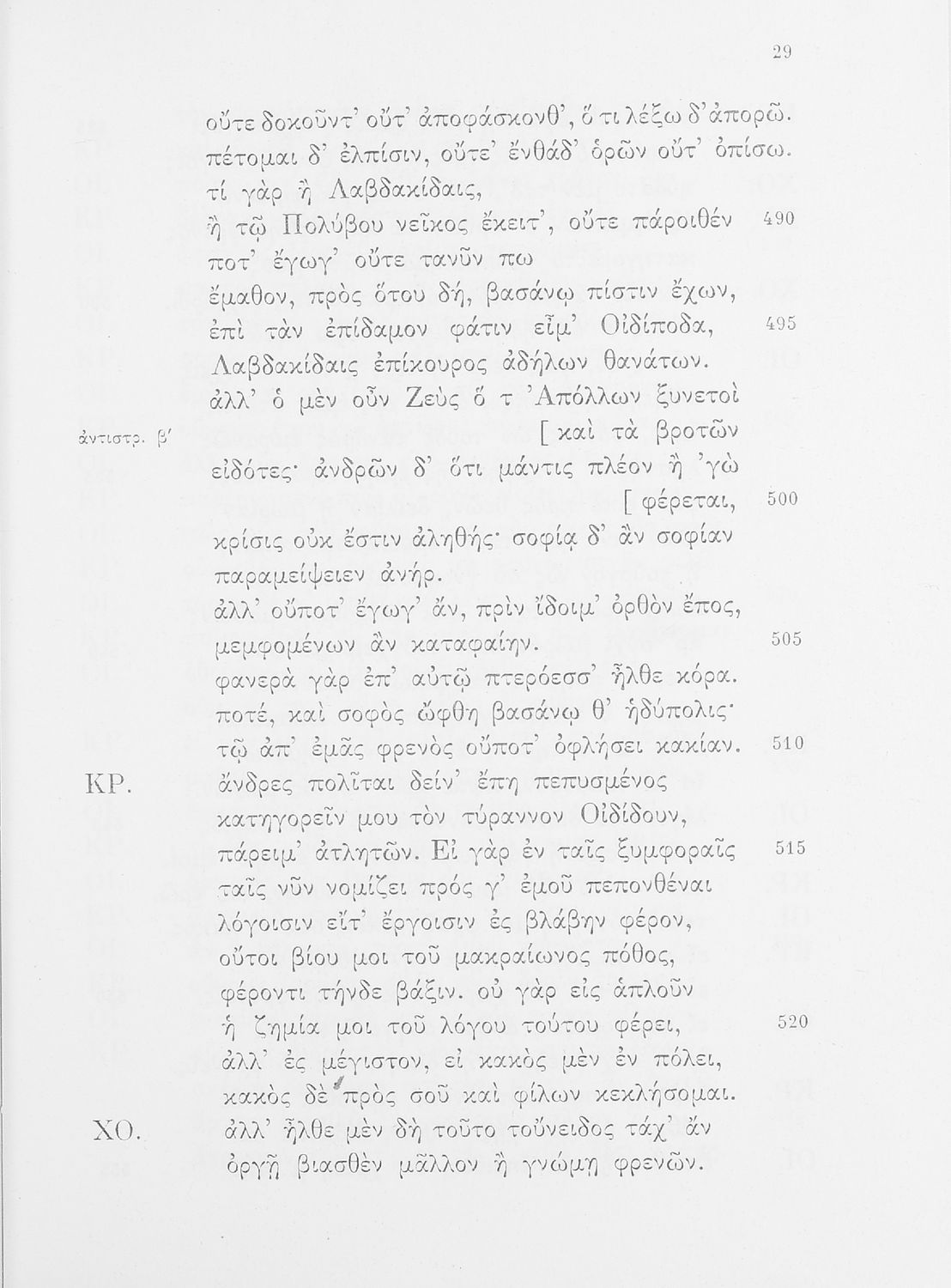 Σχολικό εγχειρίδιο της ΣΤ΄ Γυμνασίου για το μάθημα των Αρχαίων Ελληνικών. Περιέχει τις τραγωδίες του Σοφοκλή Οιδίπους Τύραννος και Αντιγόνη. Τα κείμενα συνοδεύονται από ερμηνευτικές και λεξιλογικές παρατηρήσεις. Φέρει το σύμβολο της δικτατορίας.