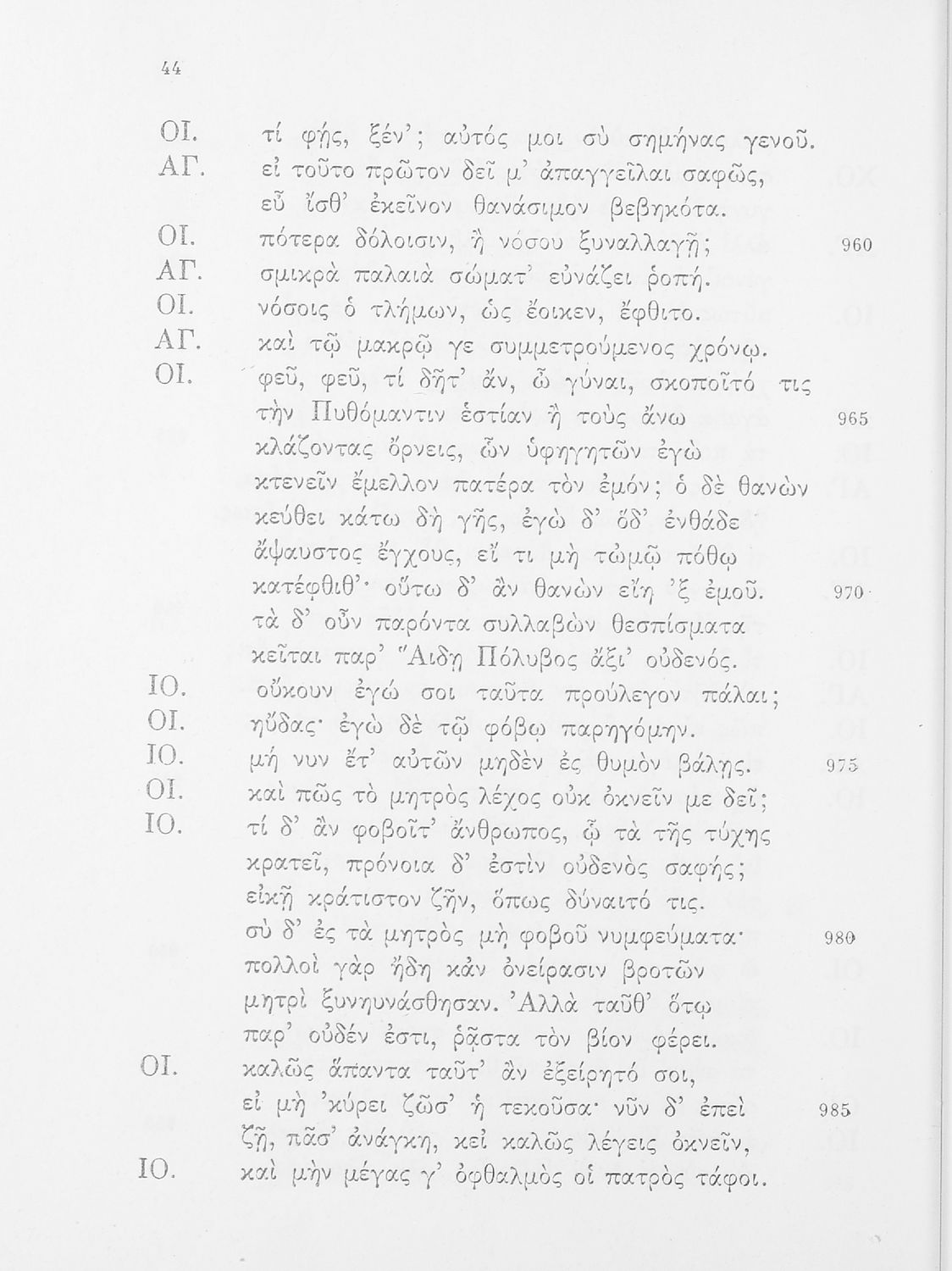 Σχολικό εγχειρίδιο της ΣΤ΄ Γυμνασίου για το μάθημα των Αρχαίων Ελληνικών. Περιέχει τις τραγωδίες του Σοφοκλή Οιδίπους Τύραννος και Αντιγόνη. Τα κείμενα συνοδεύονται από ερμηνευτικές και λεξιλογικές παρατηρήσεις. Φέρει το σύμβολο της δικτατορίας.