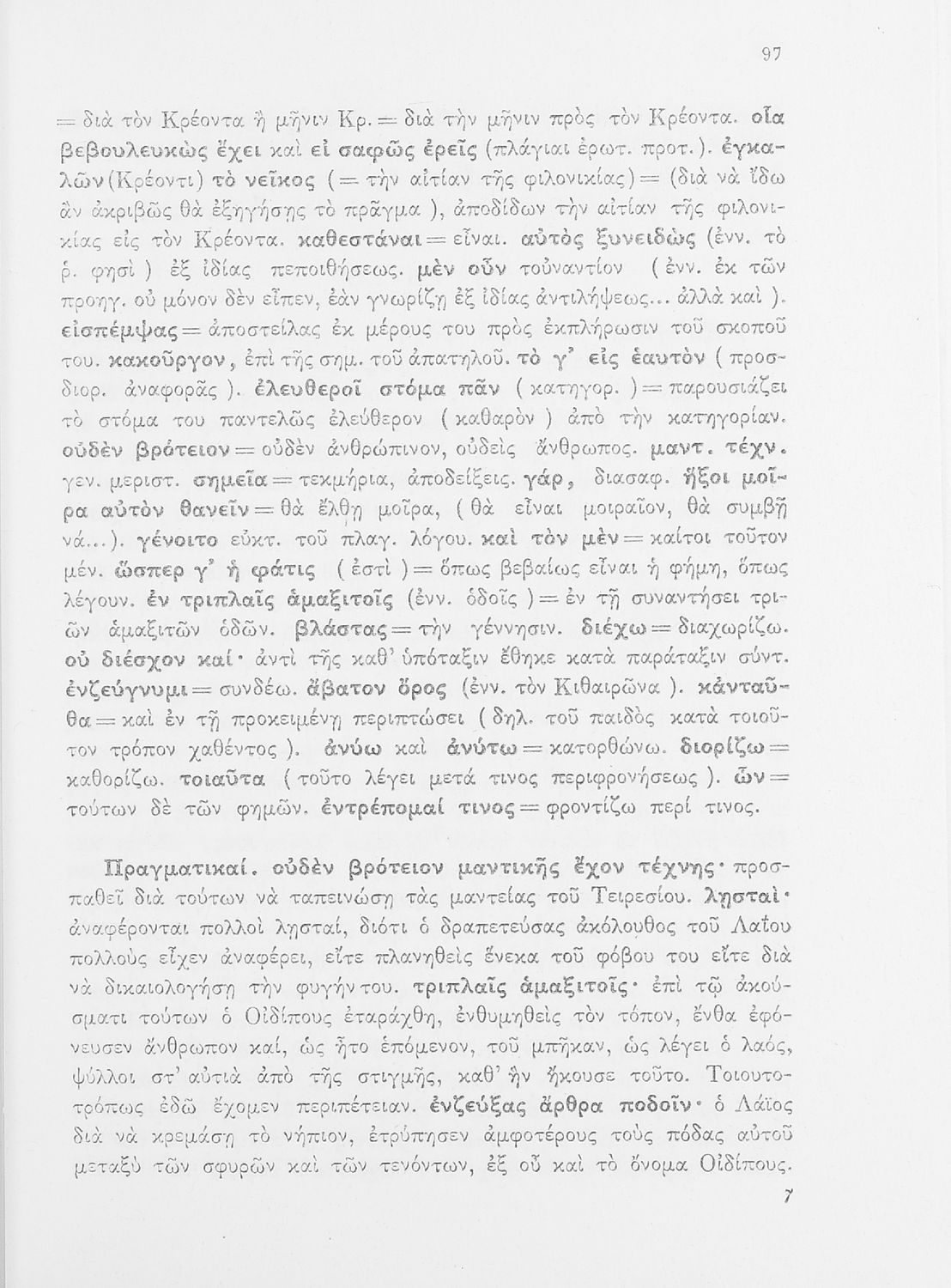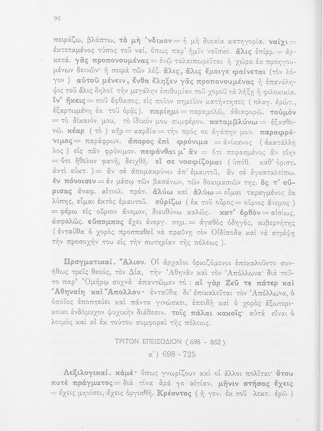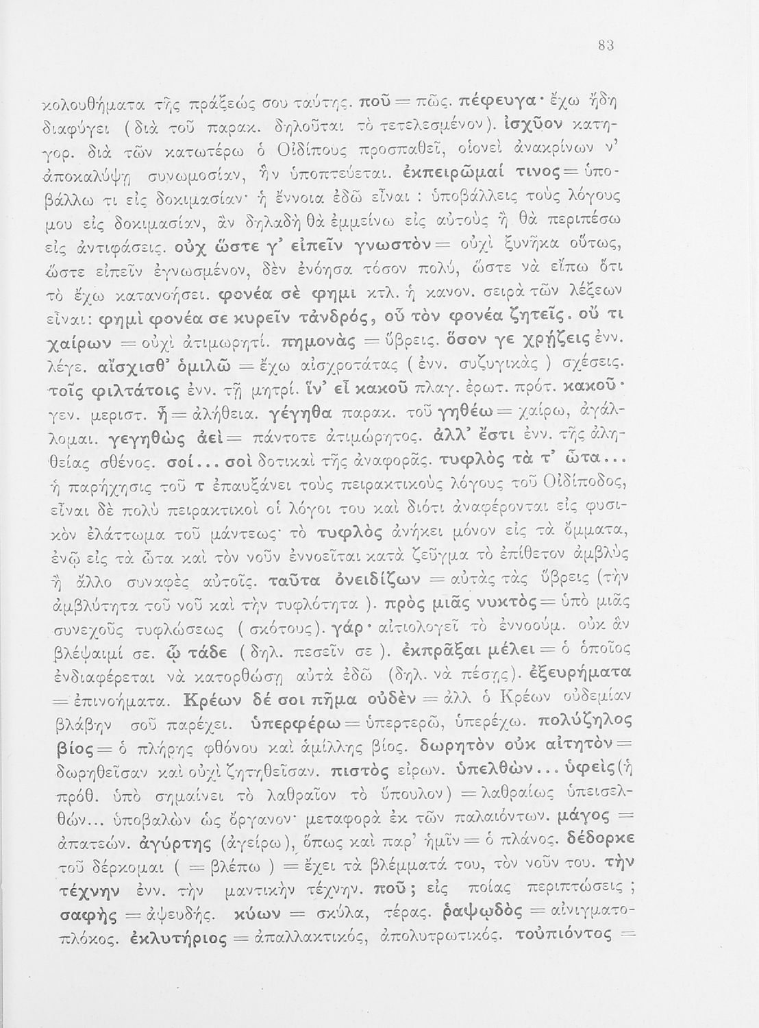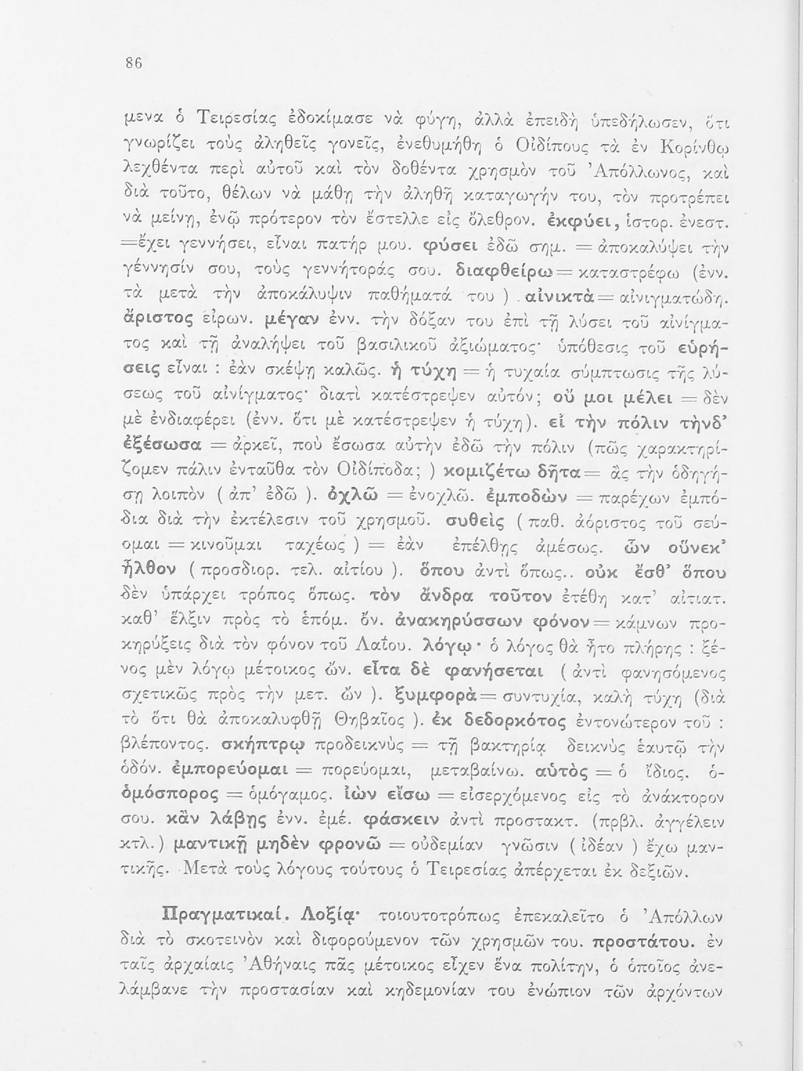 Σχολικό εγχειρίδιο της ΣΤ΄ Γυμνασίου για το μάθημα των Αρχαίων Ελληνικών. Περιέχει τις τραγωδίες του Σοφοκλή Οιδίπους Τύραννος και Αντιγόνη. Τα κείμενα συνοδεύονται από ερμηνευτικές και λεξιλογικές παρατηρήσεις. Φέρει το σύμβολο της δικτατορίας.