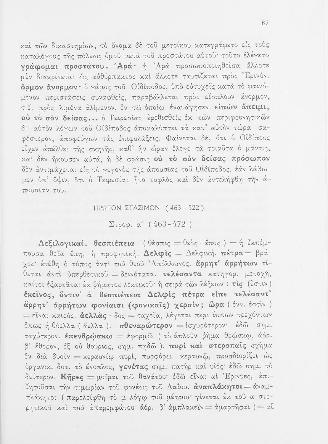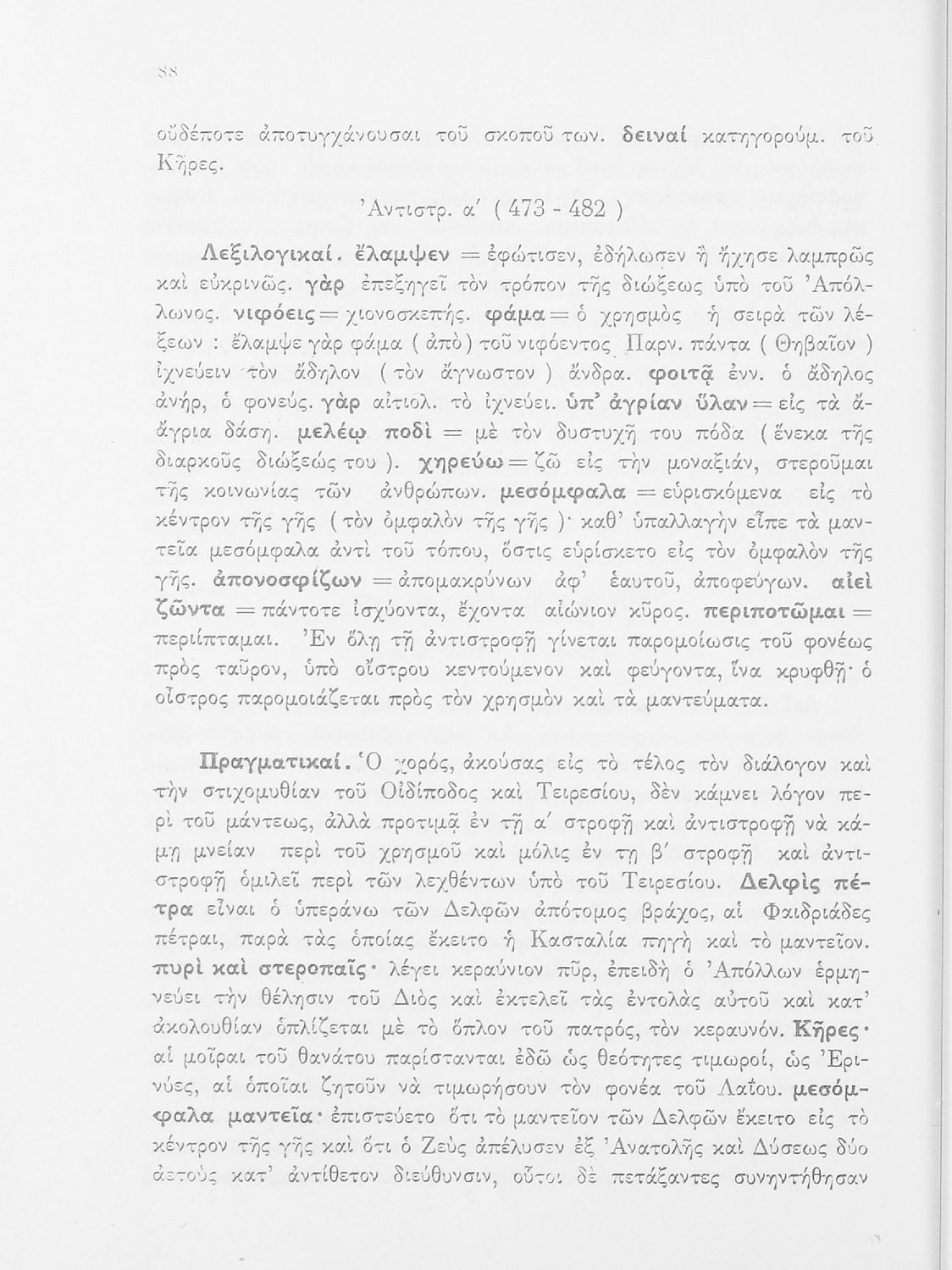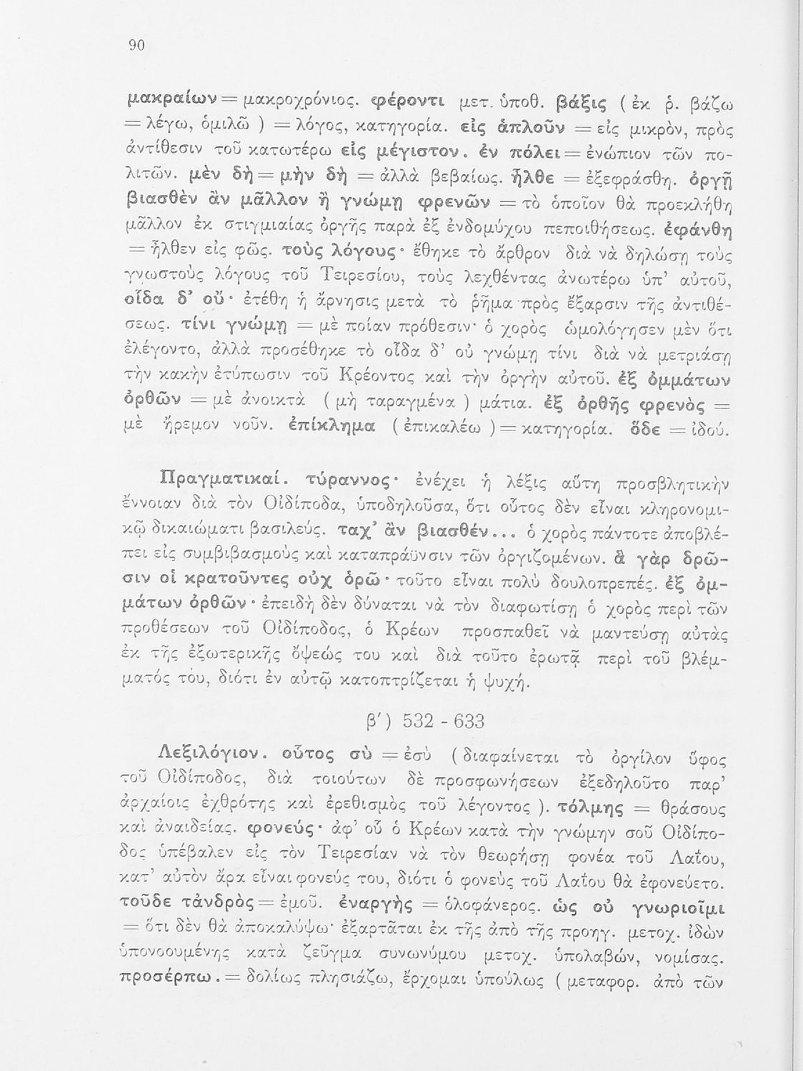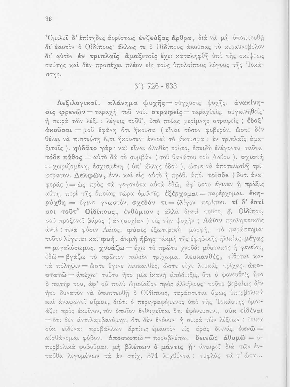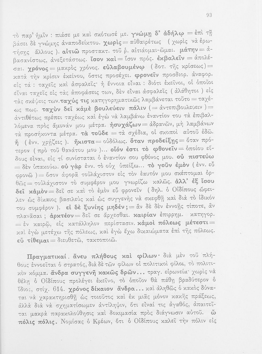 Σχολικό εγχειρίδιο της ΣΤ΄ Γυμνασίου για το μάθημα των Αρχαίων Ελληνικών. Περιέχει τις τραγωδίες του Σοφοκλή Οιδίπους Τύραννος και Αντιγόνη. Τα κείμενα συνοδεύονται από ερμηνευτικές και λεξιλογικές παρατηρήσεις. Φέρει το σύμβολο της δικτατορίας.