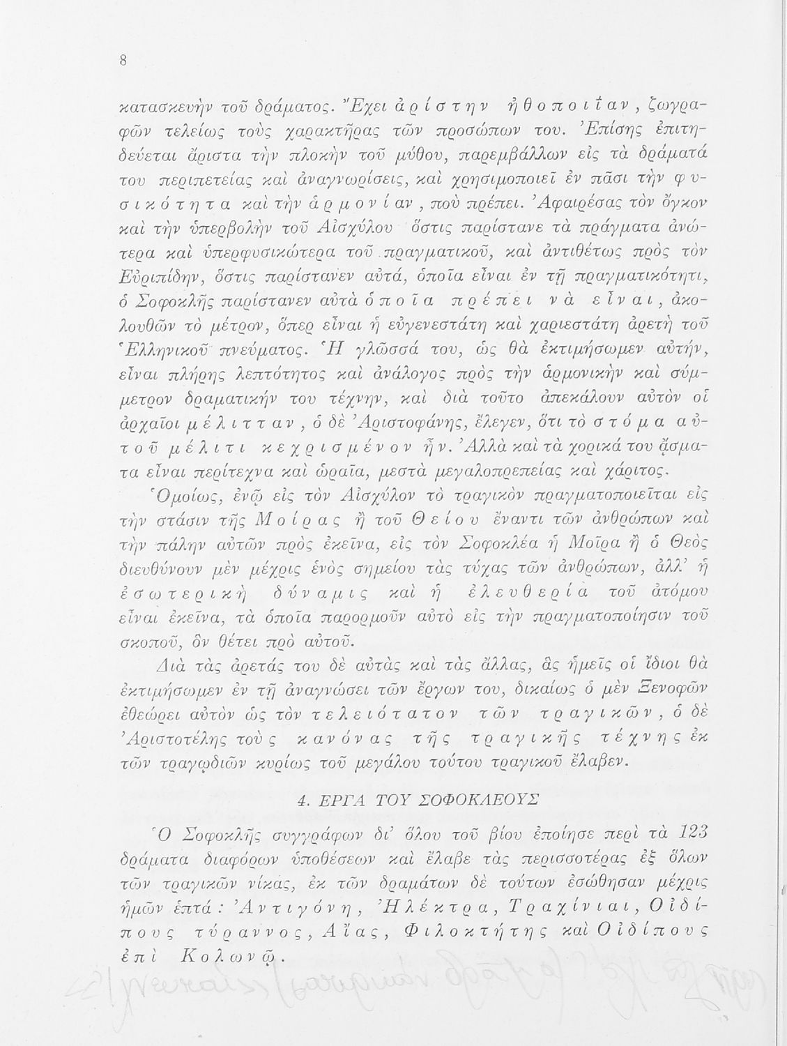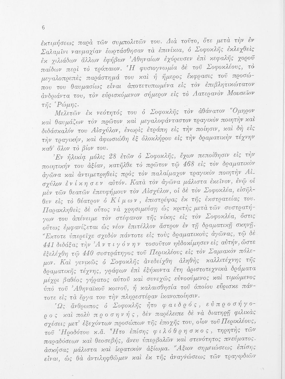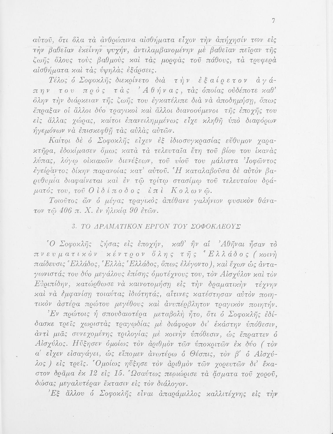 Σχολικό εγχειρίδιο της ΣΤ΄ Γυμνασίου για το μάθημα των Αρχαίων Ελληνικών. Περιέχει τις τραγωδίες του Σοφοκλή Οιδίπους Τύραννος και Αντιγόνη. Τα κείμενα συνοδεύονται από ερμηνευτικές και λεξιλογικές παρατηρήσεις. Φέρει το σύμβολο της δικτατορίας.