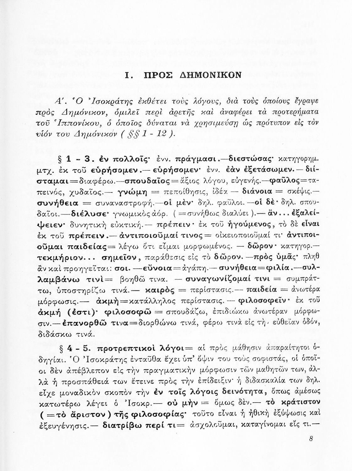 Σχολικό εγχειρίδιο Αρχαίων Ελληνικών Γ΄ Γυμνασίου που περιλαμβάνει τους Λόγους του Λυσία Περί του σηκού απολογία, Υπέρ του αδυνάτου, και Κατά των σιτοπωλών και του Ισοκράτη Προς Δημόνικον, Προς Νικοκλέα και Ευαγόρας, εισαγωγή στους Λόγους και ερμηνευτικά σχόλια.