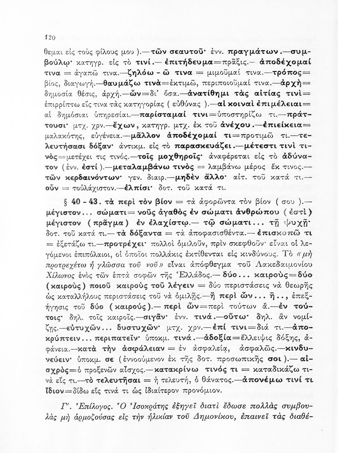 Βαθμίδα εκπαίδευσης: Δευτεροβάθμια Τάξη: Γ' Γυμνασίου Μάθημα: Αρχαία Ελληνικά Γλώσσα: Απλή καθαρεύουσα Παρουσίαση περιεχομένου: Σχολικό εγχειρίδιο Αρχαίων Ελληνικών Γ΄ Γυμνασίου που περιλαμβάνει τους Λόγους του Λυσία Περί του σηκού απολογία, Υπέρ του αδυνάτου, και Κατά των σιτοπωλών και του Ισοκράτη Προς Δημόνικον, Προς Νικοκλέα και Ευαγόρας, εισαγωγή στους Λόγους και ερμηνευτικά σχόλια. |