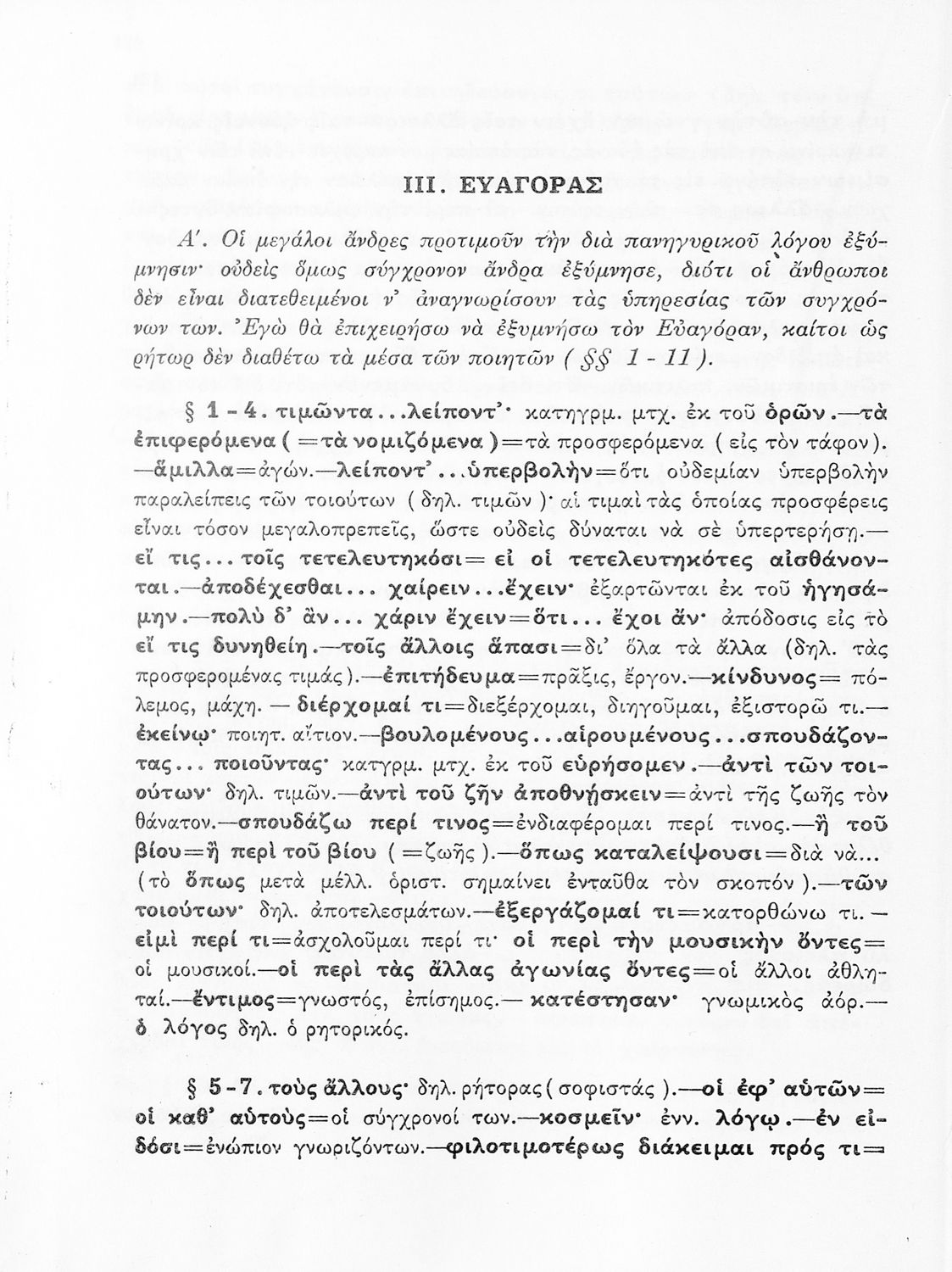 Σχολικό εγχειρίδιο Αρχαίων Ελληνικών Γ΄ Γυμνασίου που περιλαμβάνει τους Λόγους του Λυσία Περί του σηκού απολογία, Υπέρ του αδυνάτου, και Κατά των σιτοπωλών και του Ισοκράτη Προς Δημόνικον, Προς Νικοκλέα και Ευαγόρας, εισαγωγή στους Λόγους και ερμηνευτικά σχόλια.