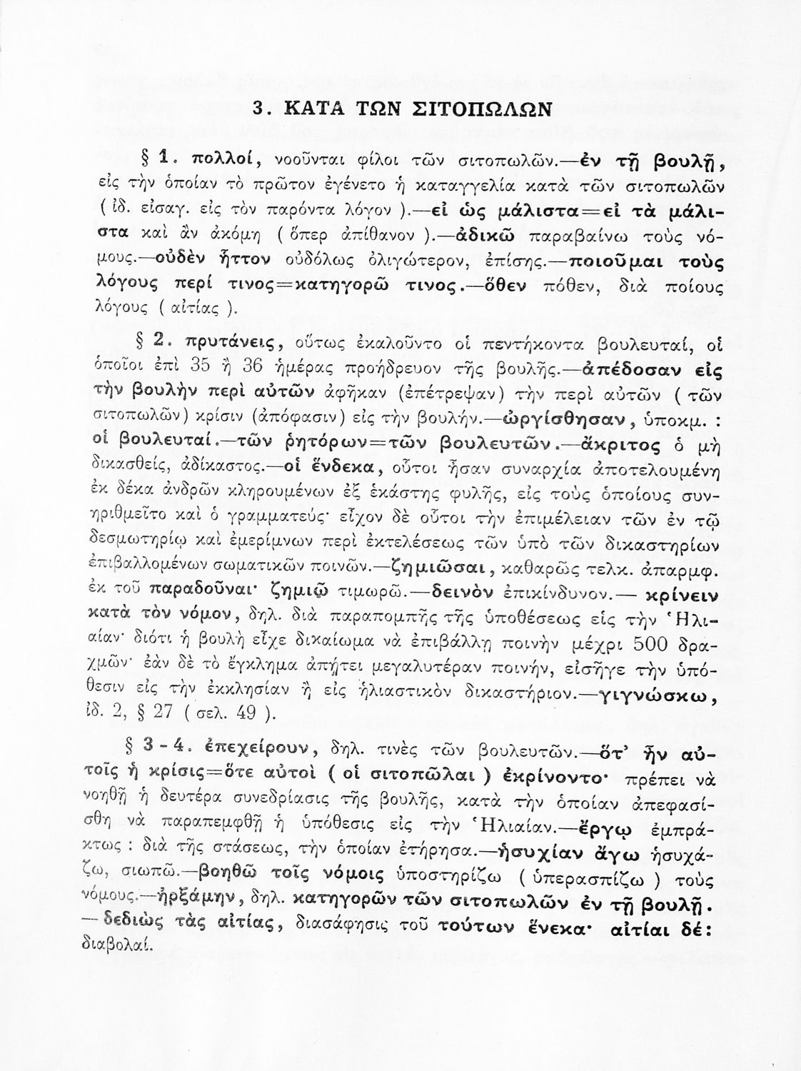 Βαθμίδα εκπαίδευσης: Δευτεροβάθμια Τάξη: Γ' Γυμνασίου Μάθημα: Αρχαία Ελληνικά Γλώσσα: Απλή καθαρεύουσα Παρουσίαση περιεχομένου: Σχολικό εγχειρίδιο Αρχαίων Ελληνικών Γ΄ Γυμνασίου που περιλαμβάνει τους Λόγους του Λυσία Περί του σηκού απολογία, Υπέρ του αδυνάτου, και Κατά των σιτοπωλών και του Ισοκράτη Προς Δημόνικον, Προς Νικοκλέα και Ευαγόρας, εισαγωγή στους Λόγους και ερμηνευτικά σχόλια. |