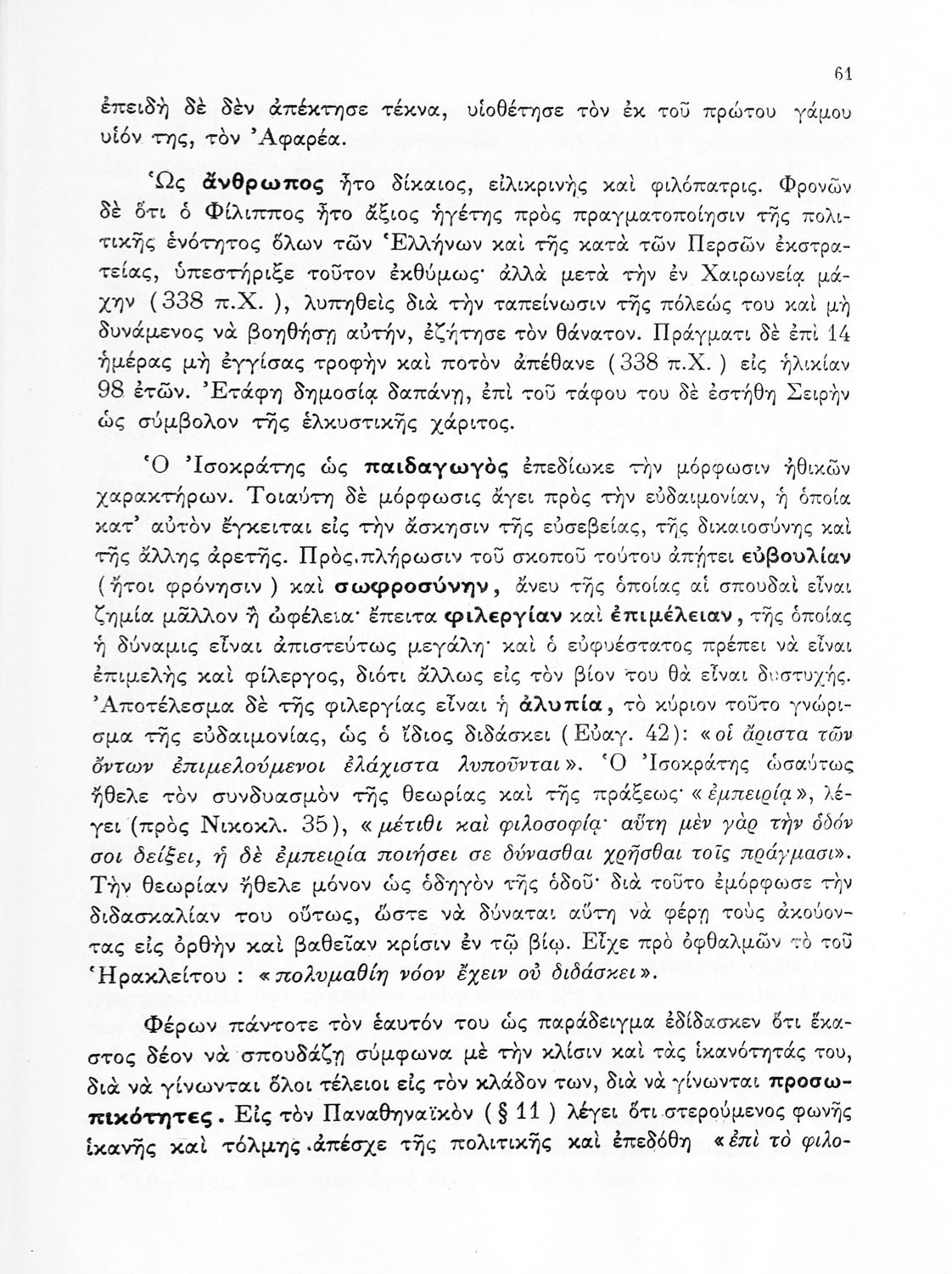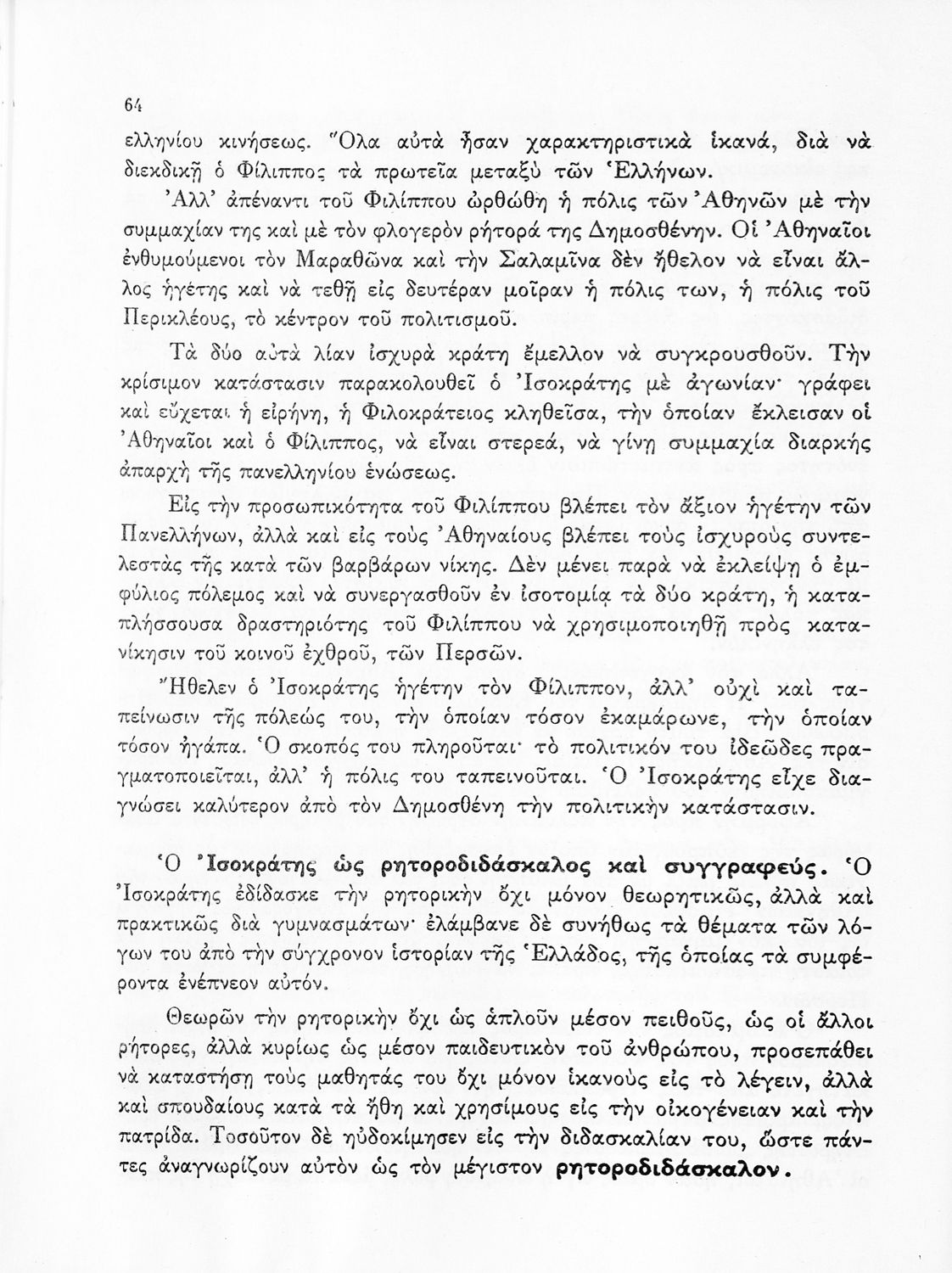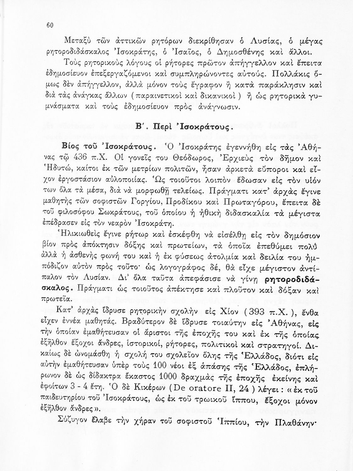 Σχολικό εγχειρίδιο Αρχαίων Ελληνικών Γ΄ Γυμνασίου που περιλαμβάνει τους Λόγους του Λυσία Περί του σηκού απολογία, Υπέρ του αδυνάτου, και Κατά των σιτοπωλών και του Ισοκράτη Προς Δημόνικον, Προς Νικοκλέα και Ευαγόρας, εισαγωγή στους Λόγους και ερμηνευτικά σχόλια.